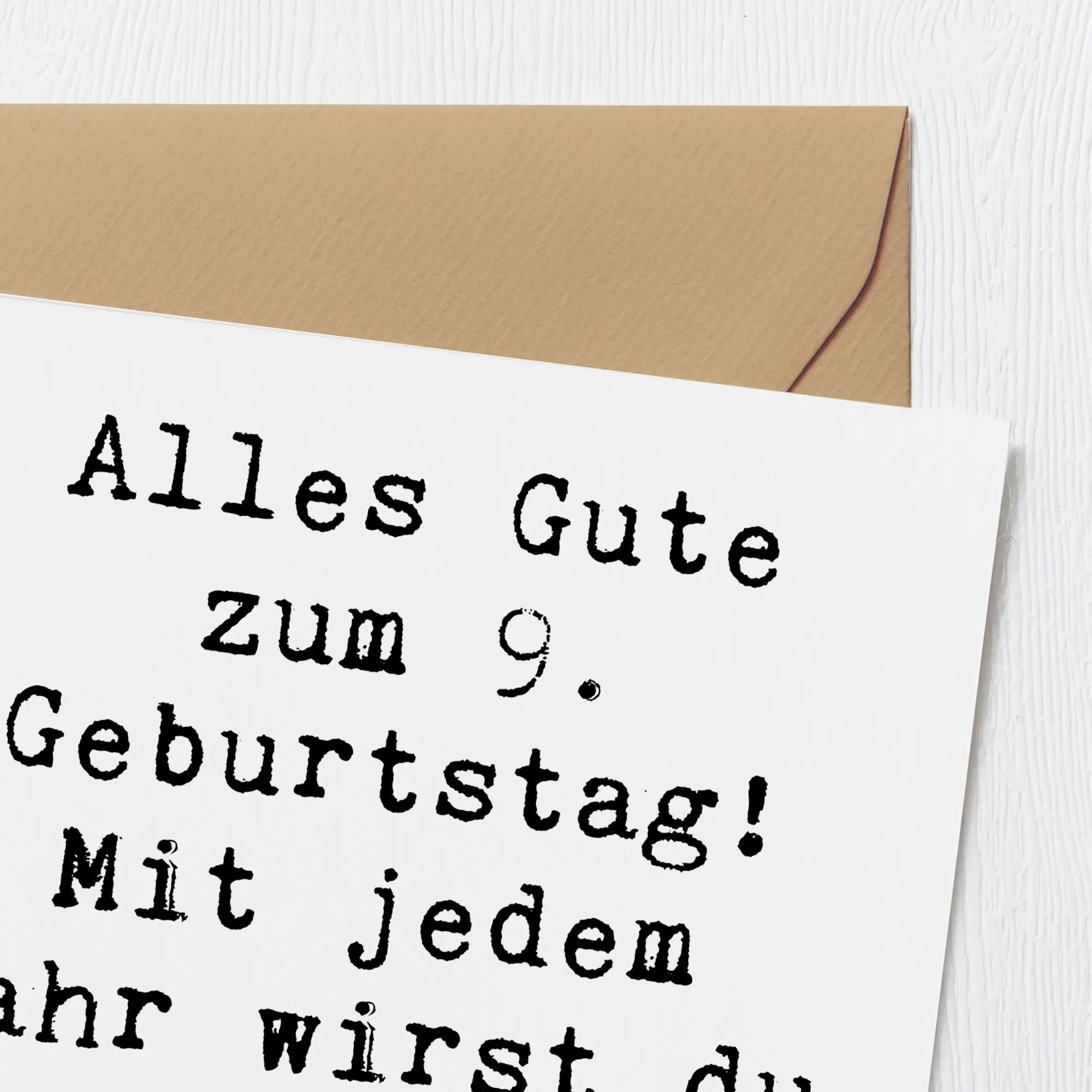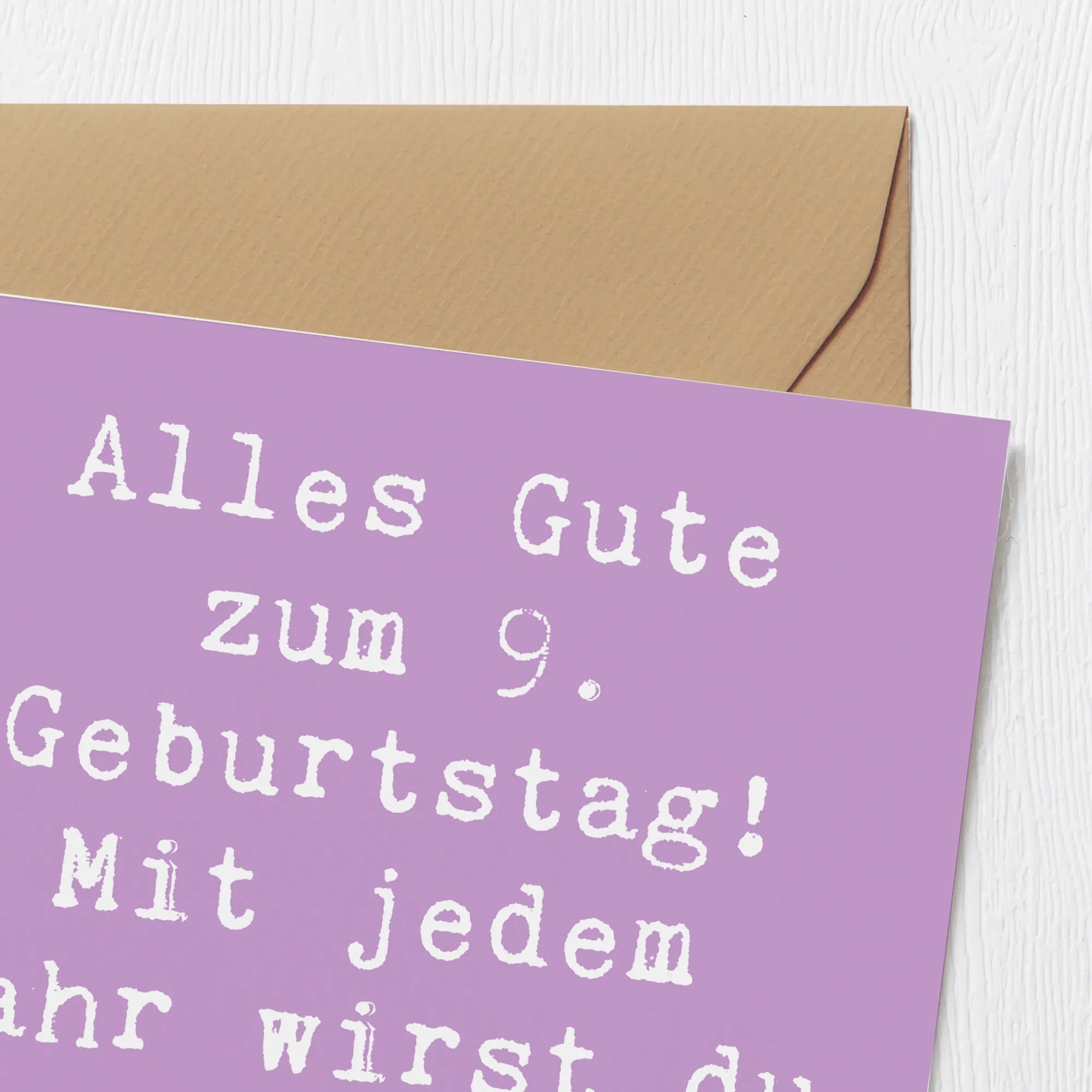 Wenn du auf der Suche nach einer einzigartigen Geburtstagskarte bist, die sowohl mit einem liebevollen Spruch veredelt ist als auch eine blanko Innenseite für individuelle Botschaften hat, dann bist du hier genau richtig! Der Slogan „Alles Gute zum 9. Geburtstag! Mit jedem Jahr wirst du klüger und strahlender!“ bringt jedem Kind ein Lächeln ins Gesicht und sorgt für unvergessliche Erinnerungen.
