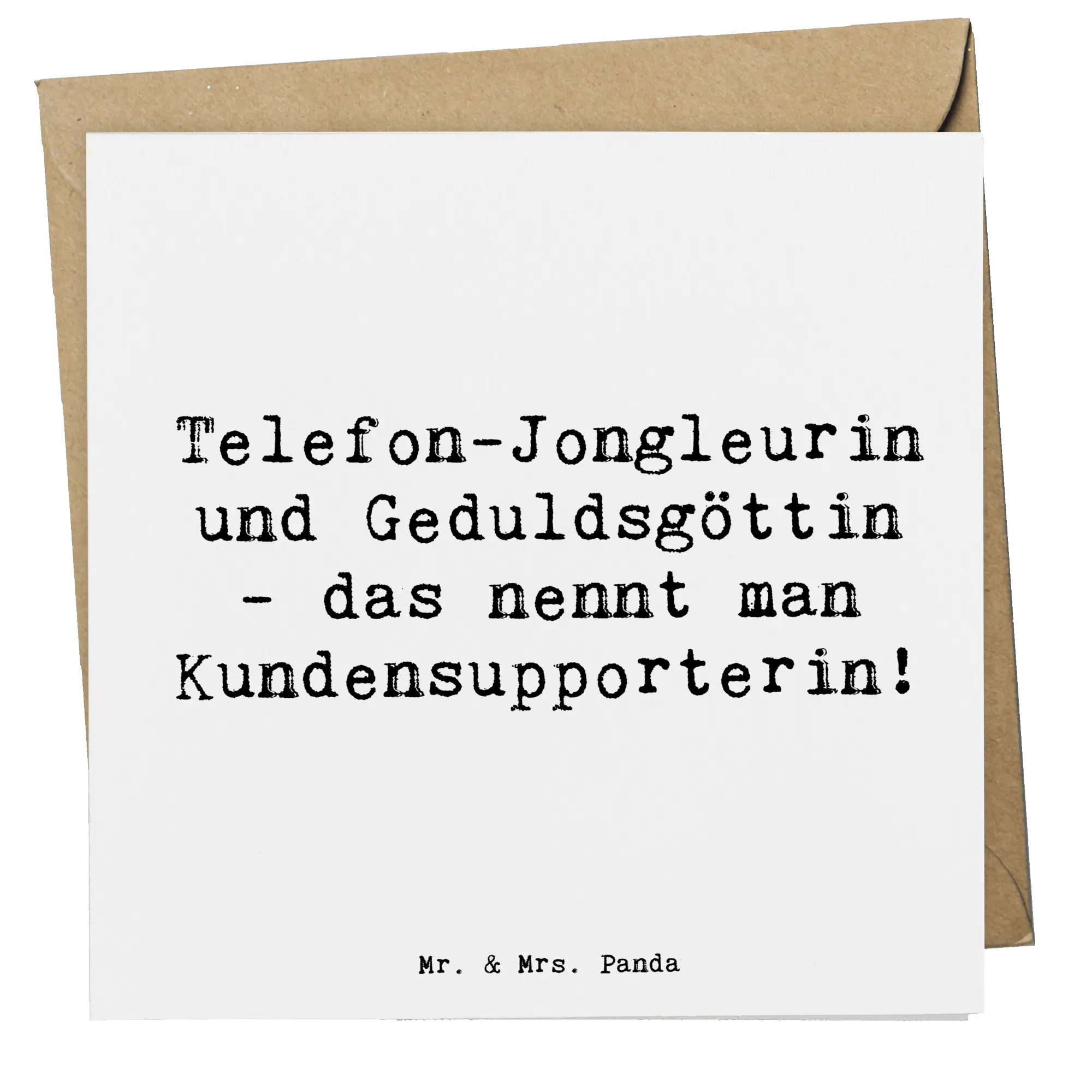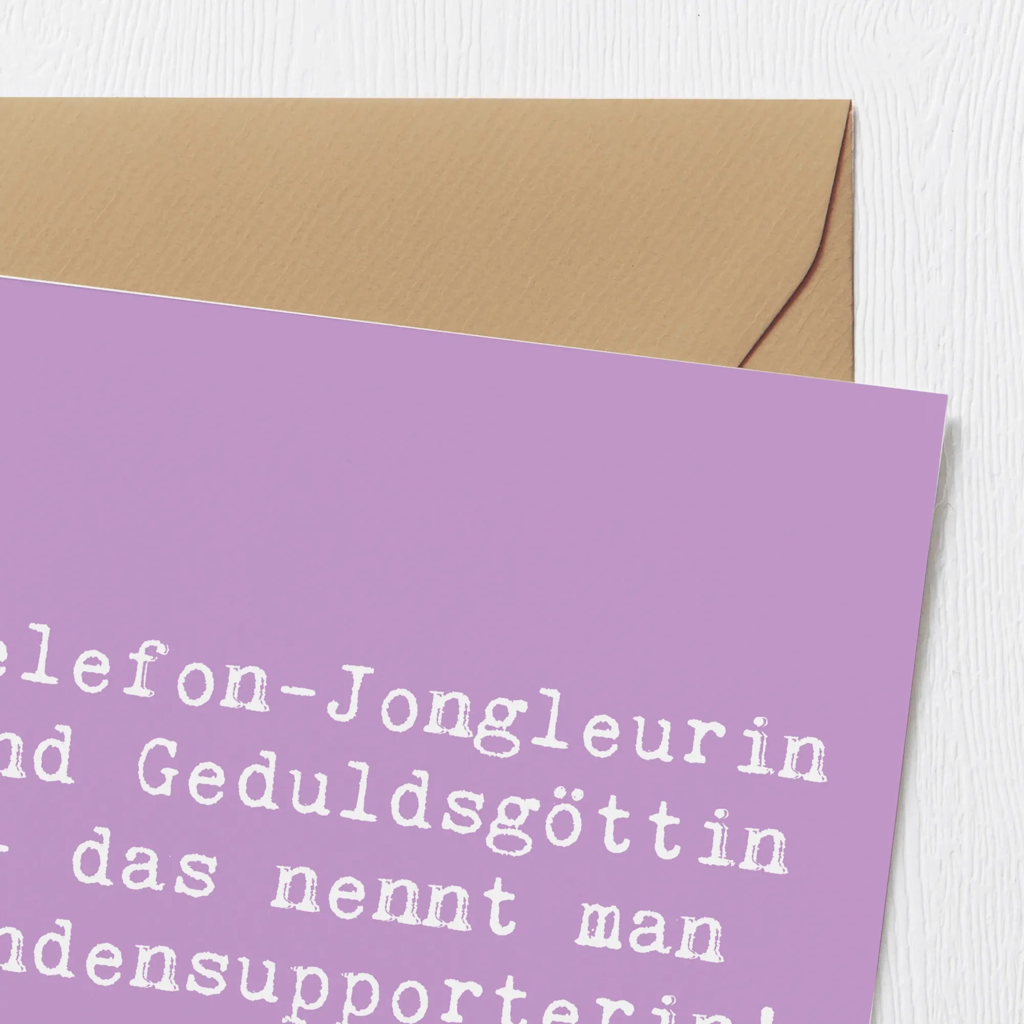 Die Karte ist nicht nur schön anzusehen, sondern auch hochwertig verarbeitet. Sie besteht aus edlem 300 Gramm Karton, der mit einer hochglänzenden Veredelung versehen ist. Damit wird jeder Gruß zu etwas Besonderem! Auf der Vorderseite findest Du den liebevoll gestalteten Spruch ‘Telefon-Jongleurin und Geduldsgöttin - das nennt man Kundensupporterin!’, der das Engagement und die Geduld dieser heldenhaften Berufe würdigt.