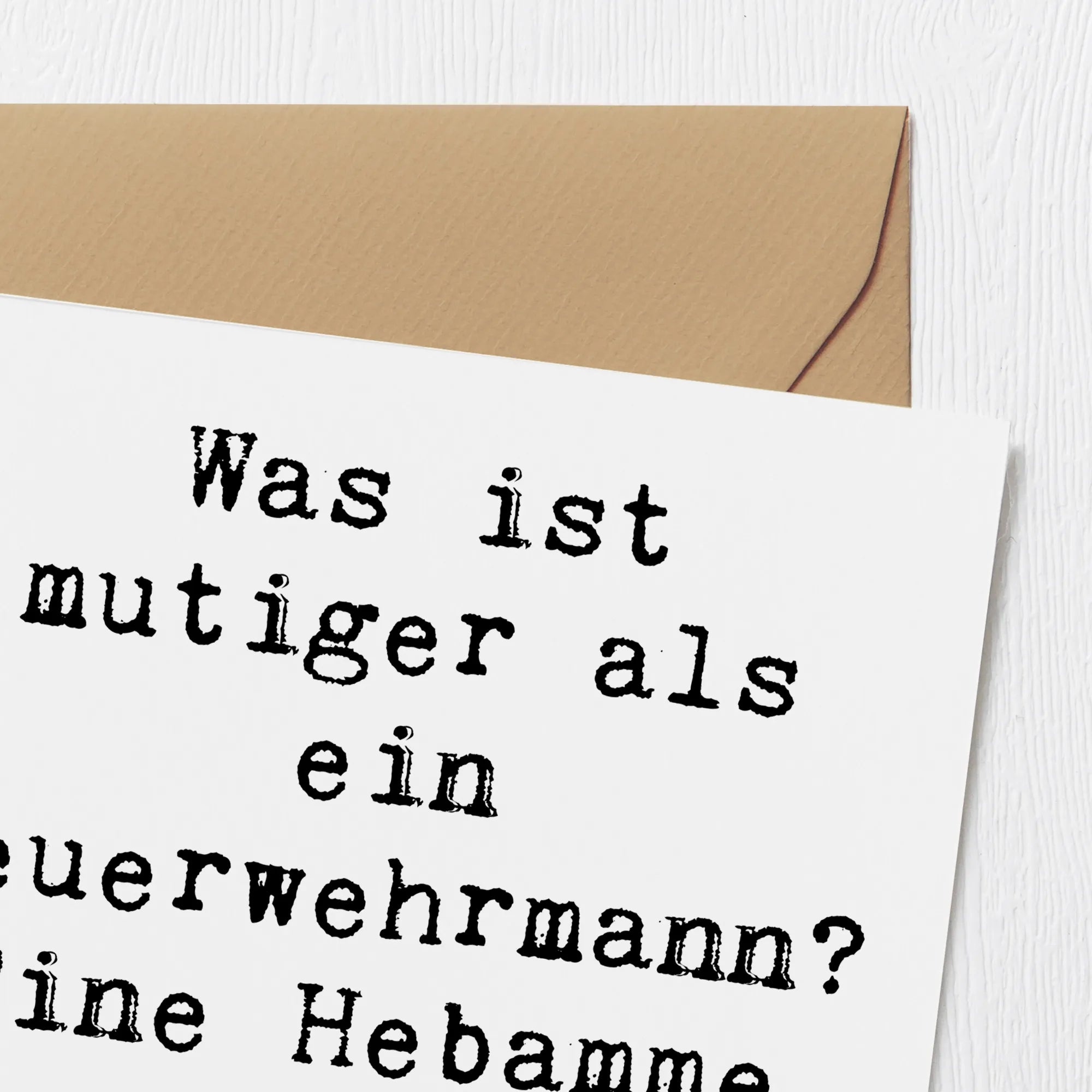 Suchst du nach dem perfekten Geschenk für eine mutige Hebamme? Unsere Deluxe Karte mit dem witzigen Spruch "Was ist mutiger als ein Feuerwehrmann? Eine Hebamme um 3 Uhr morgens!" ist die ideale Wahl! Diese exquisite Klappkarte aus hochwertigem Karton (300 Gramm) kombiniert Humor und Wertschätzung auf wunderbare Art und Weise und ist ein absoluter Hingucker in jeder Grußkarten-Sammlung.