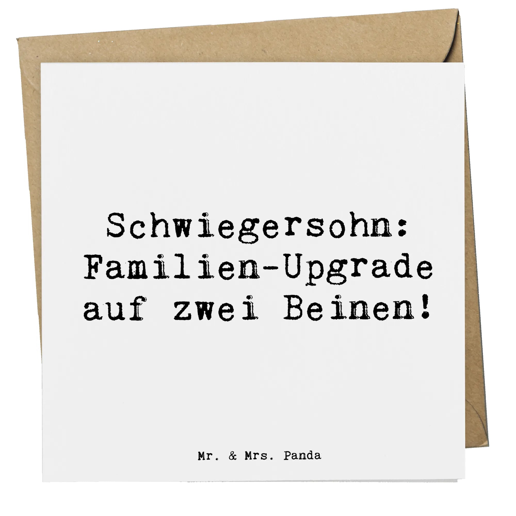 \nMit einem passenden, edlen Umschlag wird diese Karte zum idealen Geschenk, das sich nicht nur für Schwiegersöhne, sondern für alle bedeutenden Verwandten eignet. Daher ist sie ein Teil der Familie & Verwandte Kollektion von Mr. & Mrs. Panda, die es sich zur Aufgabe gemacht hat, die Liebe zur Familie in jedem Moment zu feiern. Wenn Du also auf der Suche nach einer besonderen Art bist, um Danke zu sagen oder einfach um Deine Zuneigung zu zeigen, dann ist diese Deluxe Karte genau das Richtige für Dich.