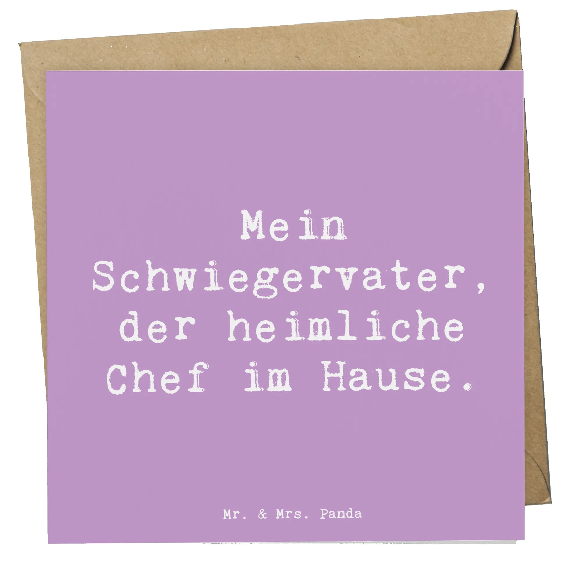 Die Deluxe Karte "Mein Schwiegervater, der heimliche Chef im Hause" aus der Familie & Verwandte Kollektion von Mr. & Mrs. Panda ist das perfekte Geschenk für jeden Schwiegervater. Sie bringt nicht nur einen liebevollen Spruch zum Ausdruck, sondern erinnert auch an die besondere Beziehung zwischen Schwiegervater und Schwiegerkind.