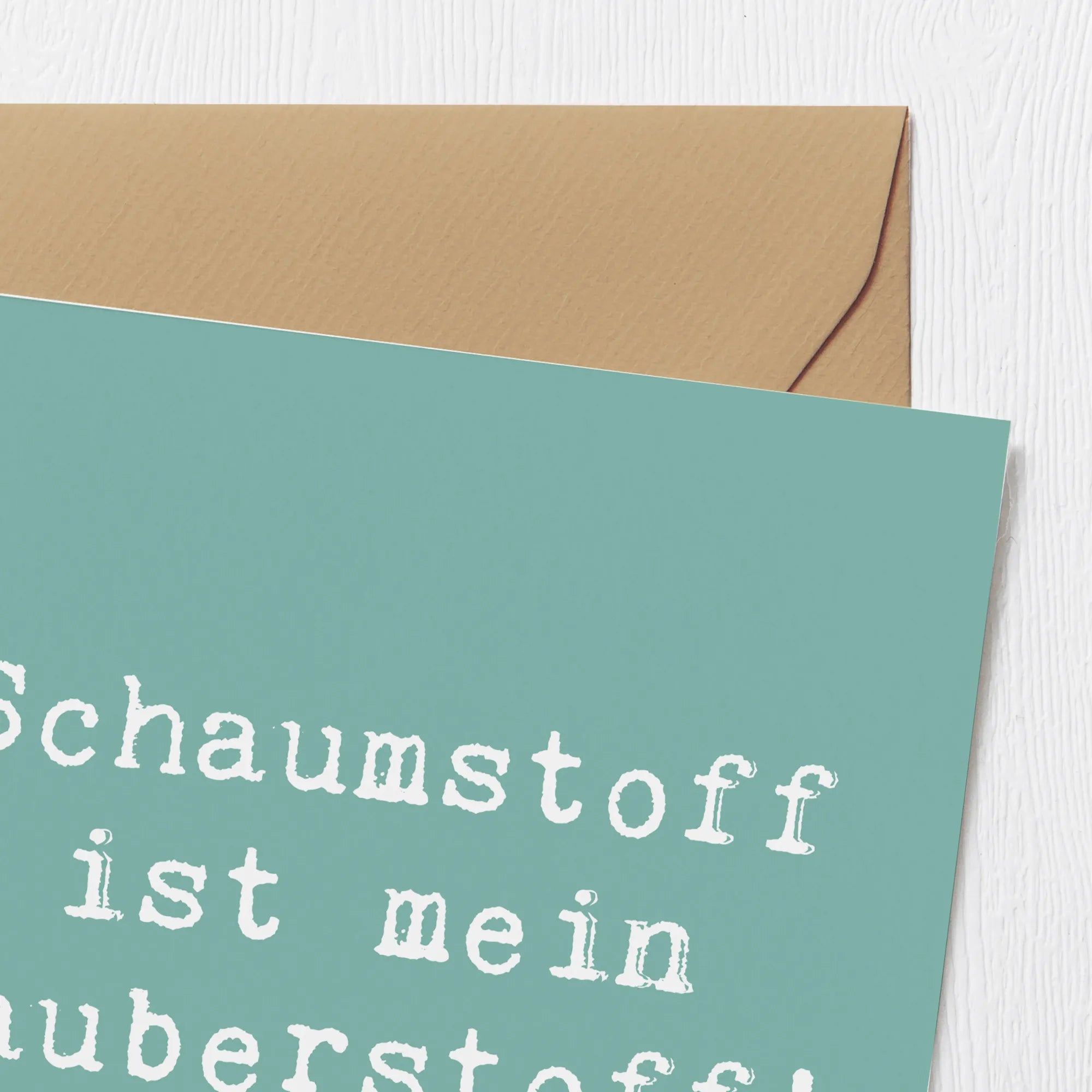 Die Deluxe Karte Polsterin aus der Kollektion Berufe von Mr. & Mrs. Panda ist der perfekte Gruß für alle, die das Handwerk der Polsterung lieben. Mit ihrem liebevoll gestalteten Design und dem spritzigen Slogan "Schaumstoff ist mein Zauberstoff!" spricht diese Karte vor allem diejenigen an, die mit viel Herzblut Polsterarbeiten erledigen.