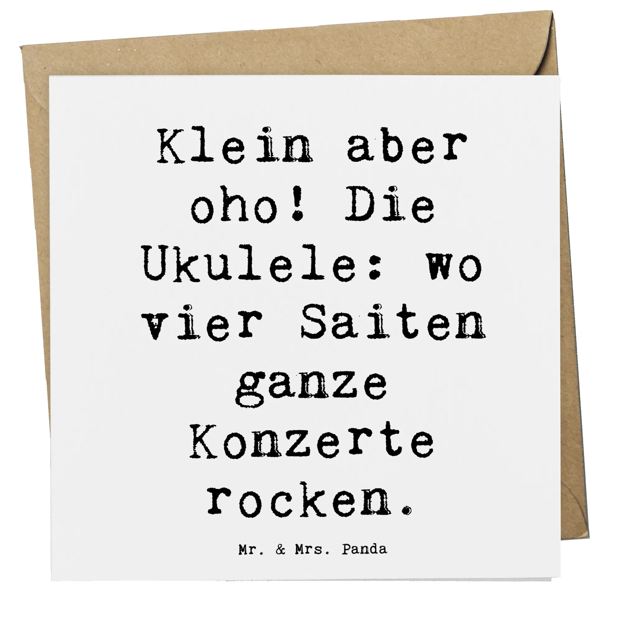 Die Deluxe Karte mit der fröhlichen Ukulele von Mr. & Mrs. Panda ist der perfekte Gruß für Musikliebhaber und kreative Menschen. Diese hochwertige Klappkarte aus edlem 300 Gramm Karton überzeugt durch ihr liebevolles Design und den inspirierenden Spruch: 'Klein aber oho! Die Ukulele: wo vier Saiten ganze Konzerte rocken.' Mit einer Größe von 140 mm x 140 mm bietet sie genügend Platz für individuelle Nachrichten und Glückwünsche.