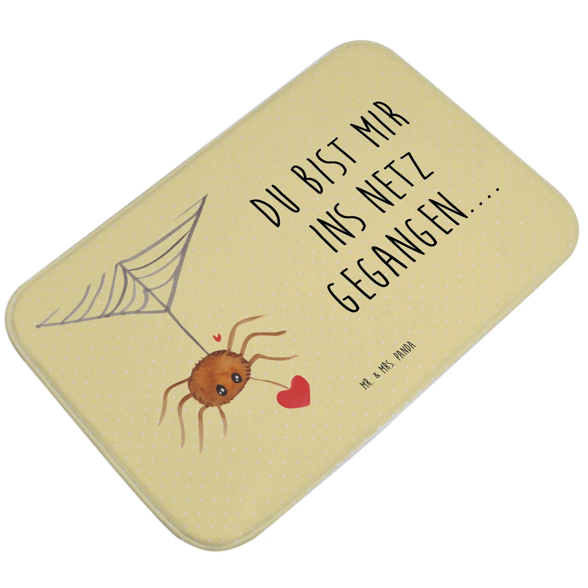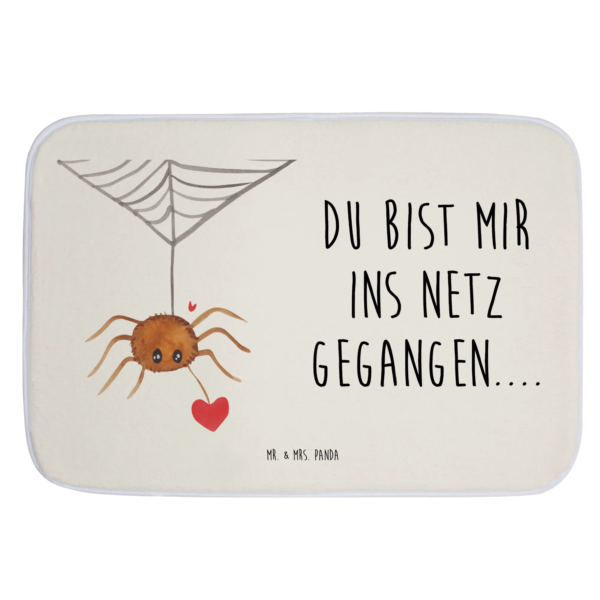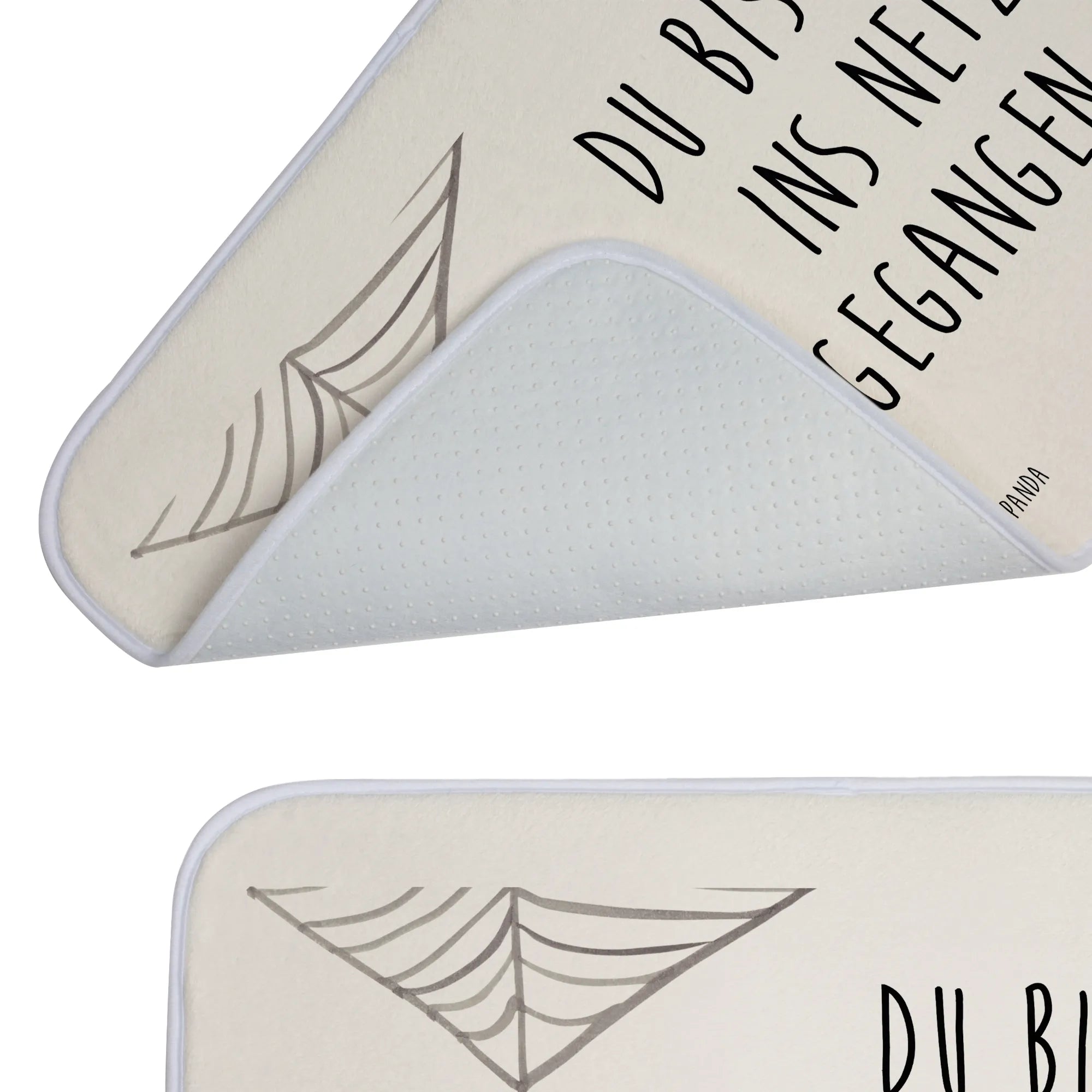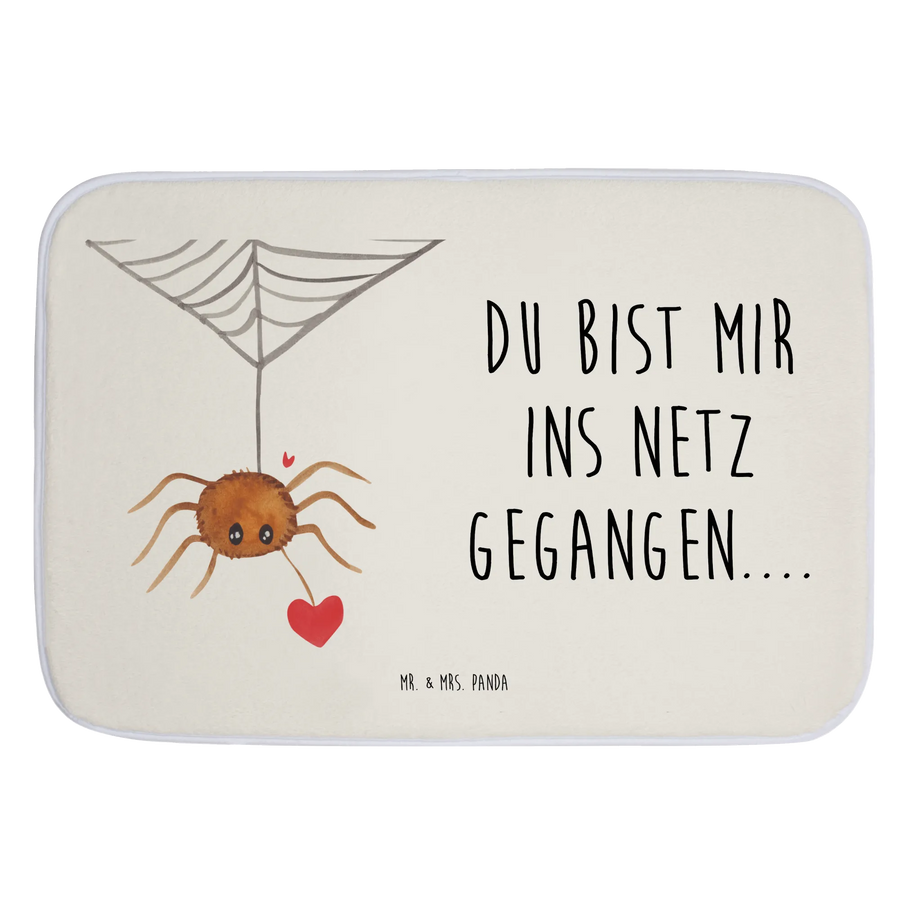 Bist Du auf der Suche nach dem perfekten Geschenk für einen besonderen Menschen oder möchtest Du einfach nur ein wenig Liebe in Dein Badezimmer bringen? Dann ist der Badvorleger "Spinne Agathe Liebe" von Mr. & Mrs. Panda genau das Richtige für Dich! Mit einem motivierenden Slogan "Du bist mir ins Netz gegangen...." verbreitet dieser Badvorleger sofort gute Laune, sobald man das Badezimmer betritt. Die niedliche Spinne Agathe, die kunstvoll von Mrs. Panda gestaltet wurde, bringt mit ihrem charmanten Ausdruck und einem Herz neben ihr, die bedeutungsvollsten Facetten der Liebe direkt zu Dir nach Hause.