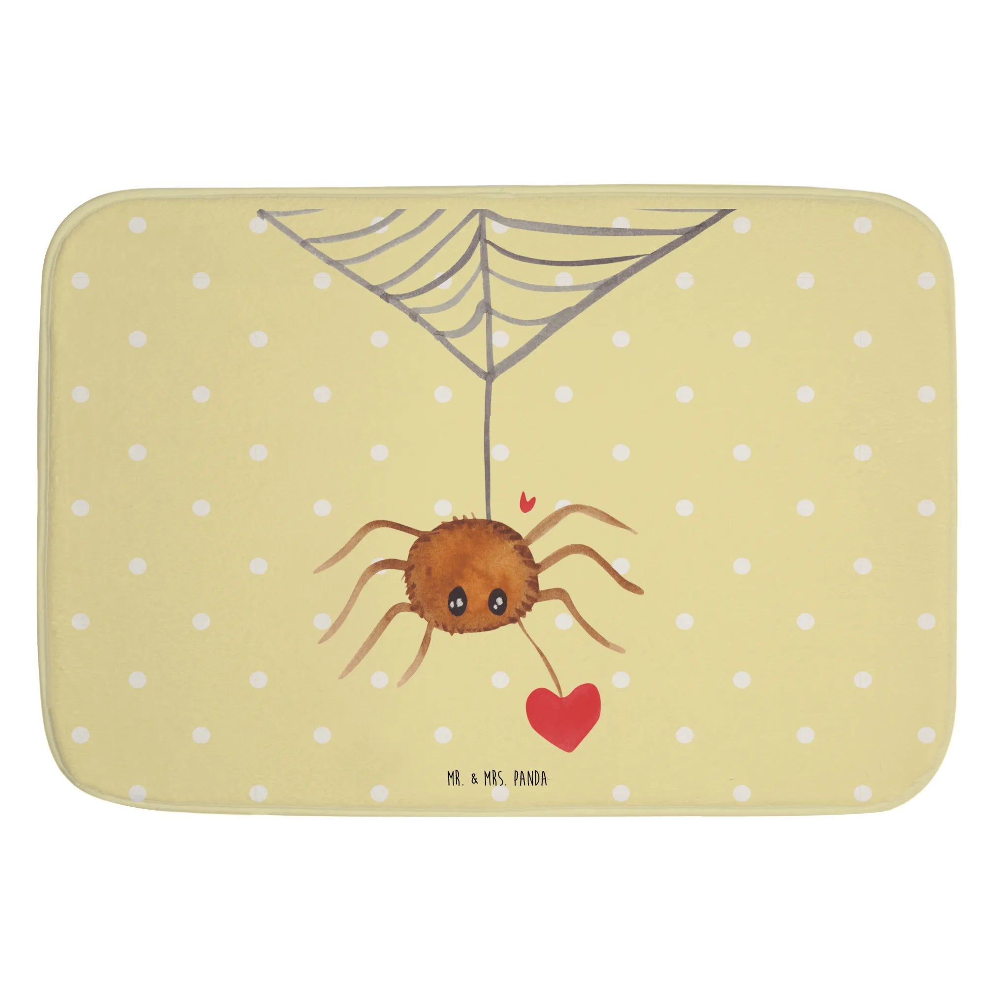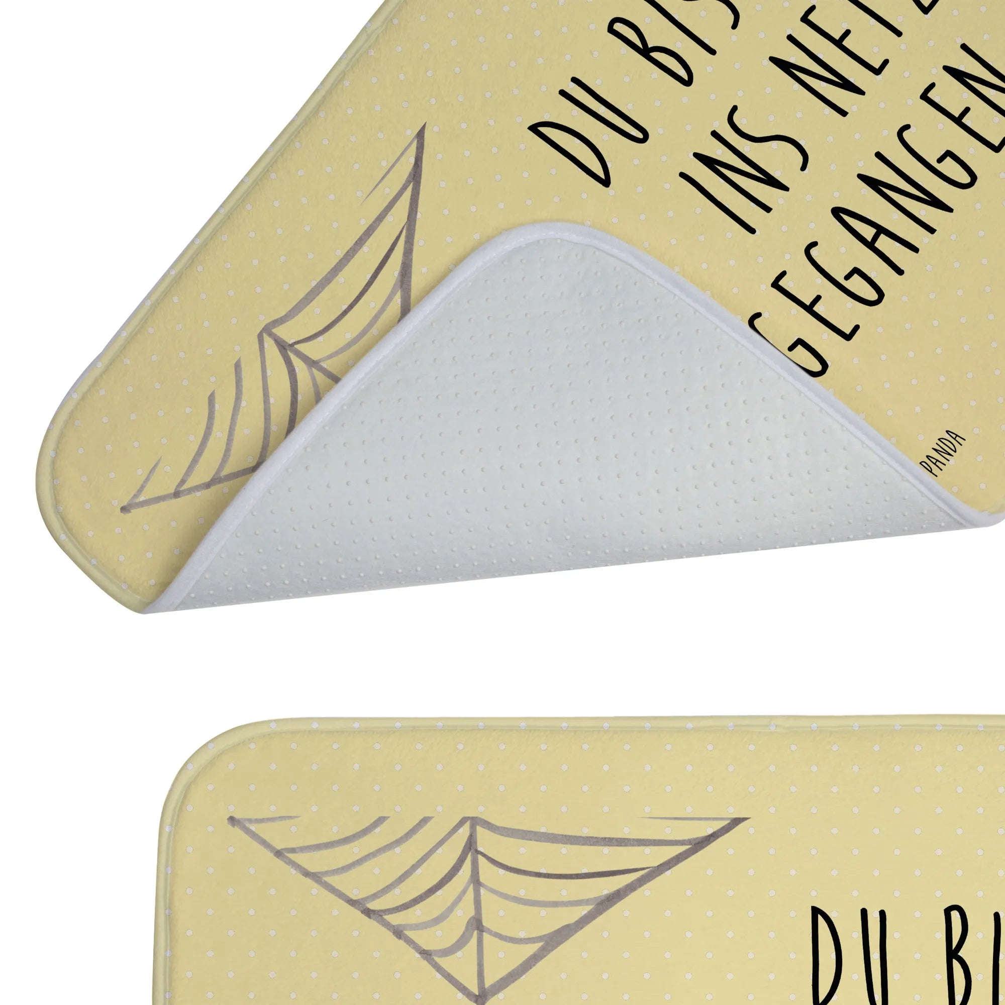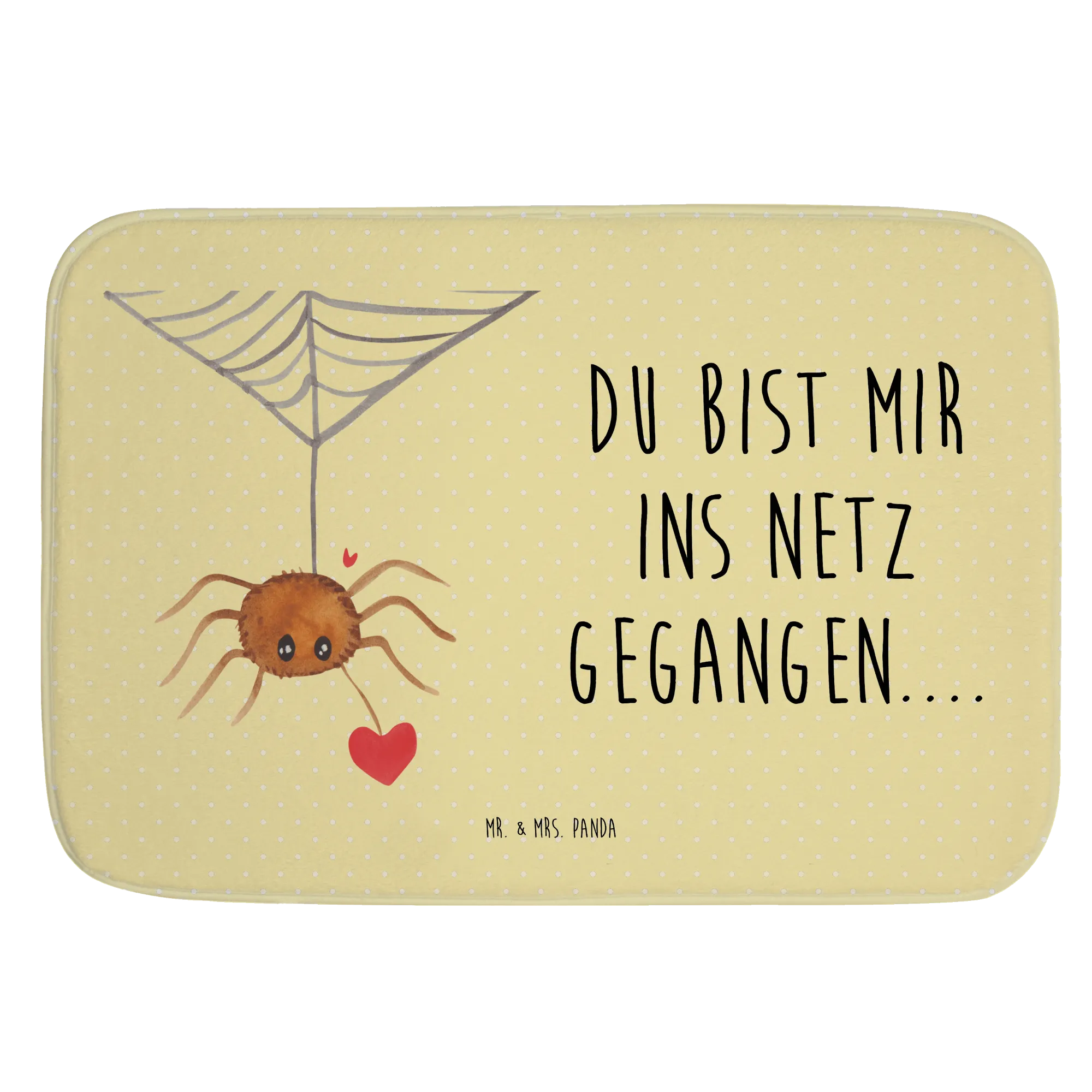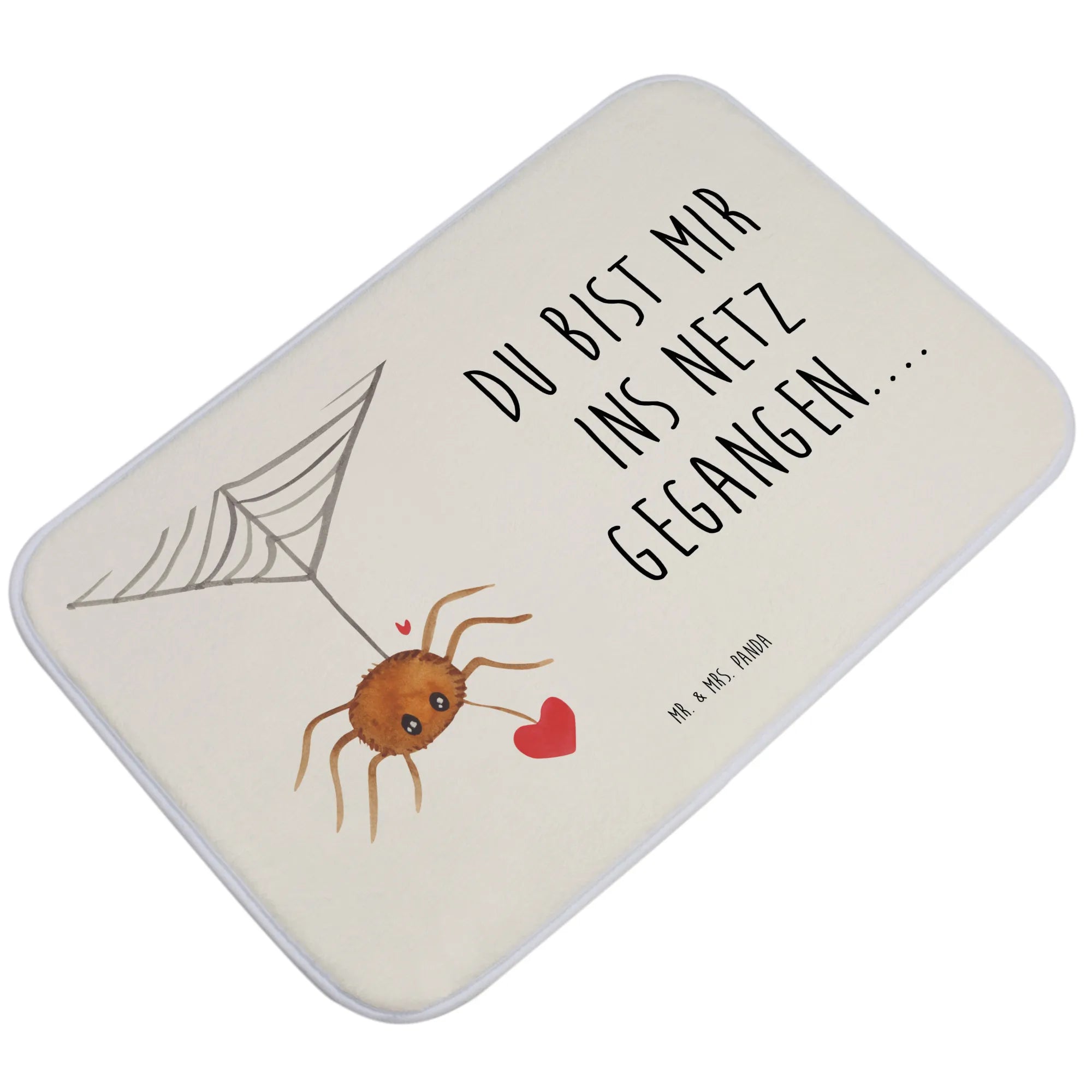 Bist Du auf der Suche nach dem perfekten Geschenk für einen besonderen Menschen oder möchtest Du einfach nur ein wenig Liebe in Dein Badezimmer bringen? Dann ist der Badvorleger "Spinne Agathe Liebe" von Mr. & Mrs. Panda genau das Richtige für Dich! Mit einem motivierenden Slogan "Du bist mir ins Netz gegangen...." verbreitet dieser Badvorleger sofort gute Laune, sobald man das Badezimmer betritt. Die niedliche Spinne Agathe, die kunstvoll von Mrs. Panda gestaltet wurde, bringt mit ihrem charmanten Ausdruck und einem Herz neben ihr, die bedeutungsvollsten Facetten der Liebe direkt zu Dir nach Hause.