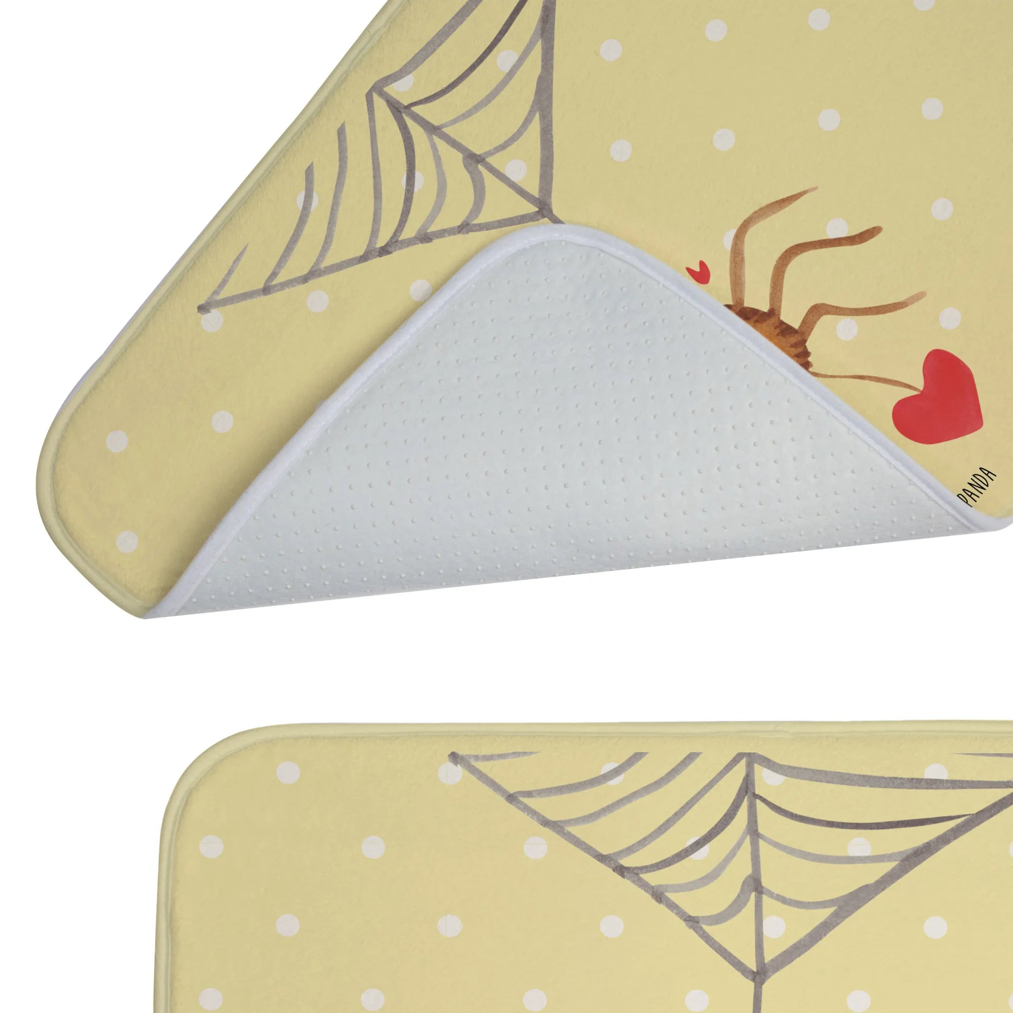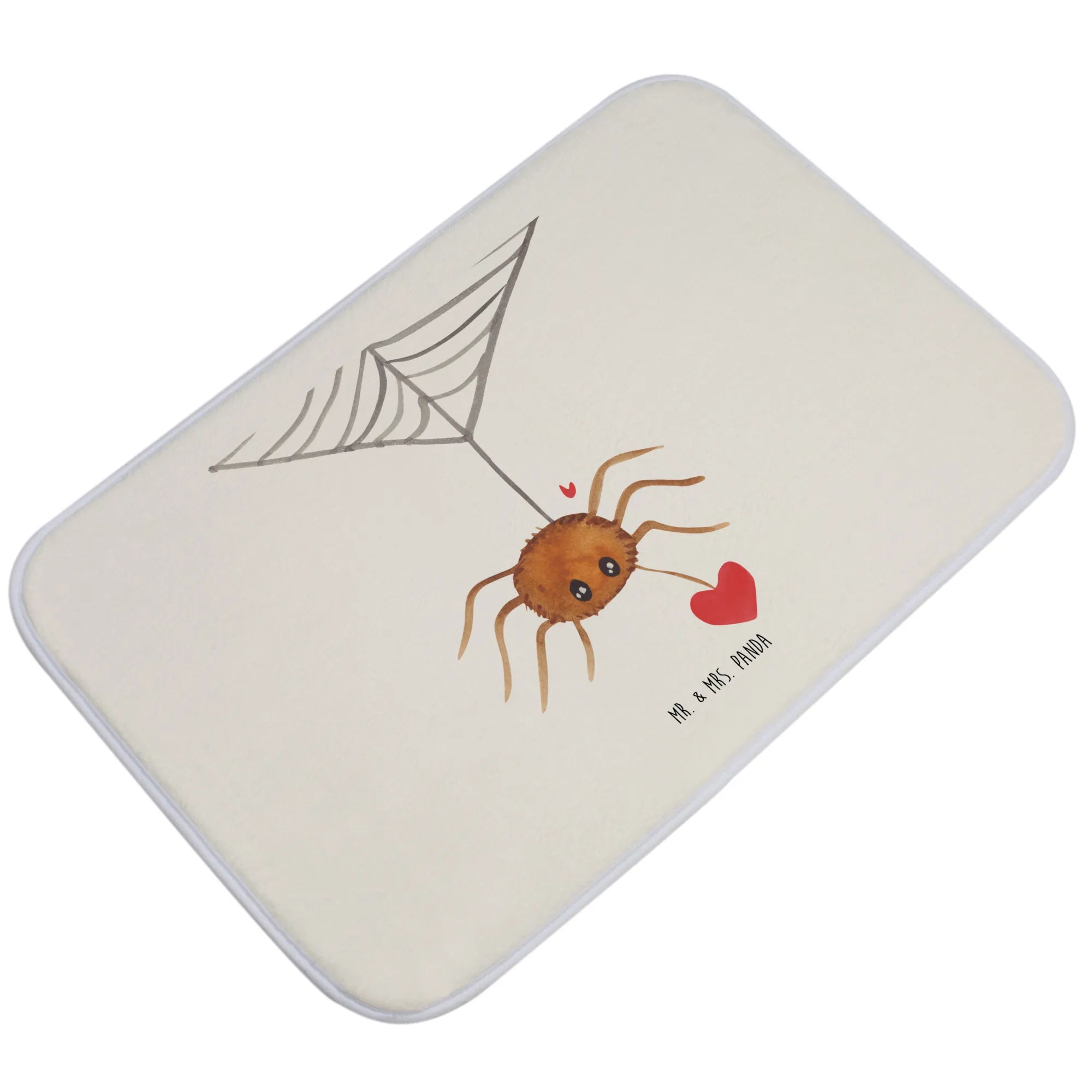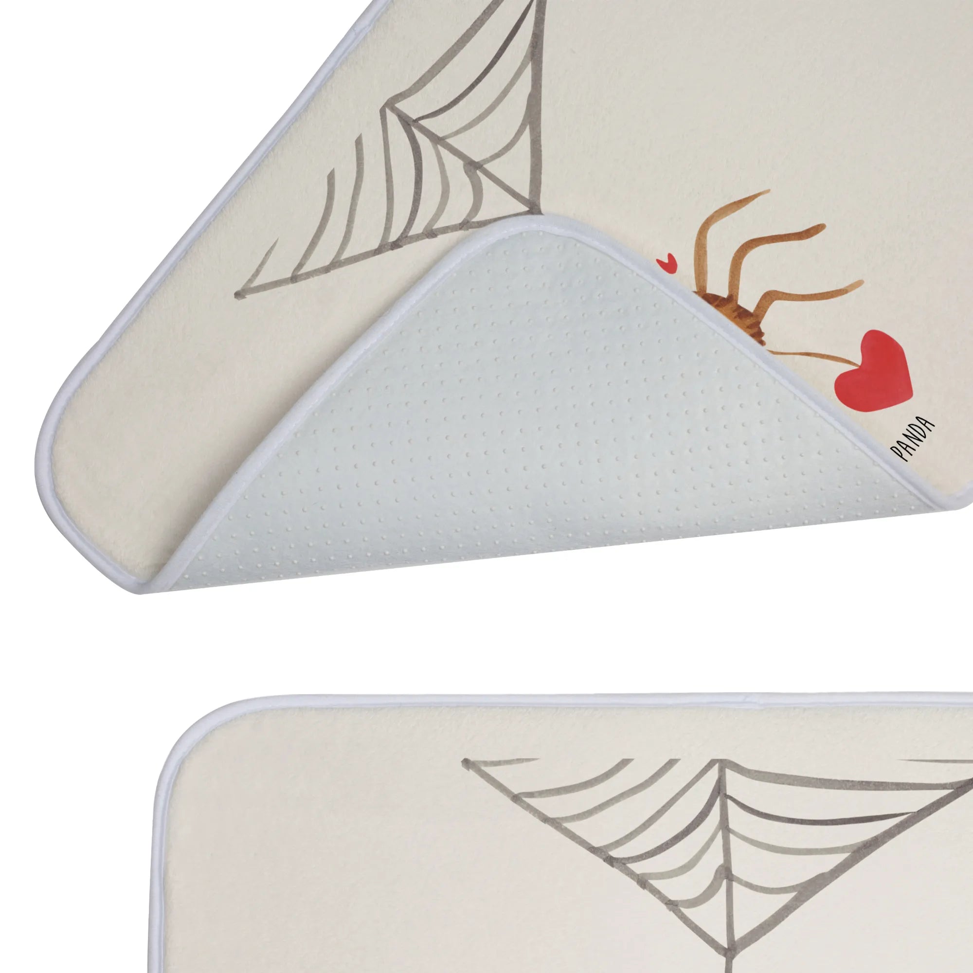 Der Badvorleger Spinne Agathe Liebe von Mr. & Mrs. Panda ist das perfekte Geschenk für all diejenigen, die ihre Liebe auf originelle Weise ausdrücken möchten. Mit einem charmanten und niedlichen Motiv, das die süße Spinne Agathe zeigt, die mit einem Herz in ihrem Netz behutsam umgeht, bringt dieser Badvorleger nicht nur Farbe, sondern auch Freude in dein Badezimmer.