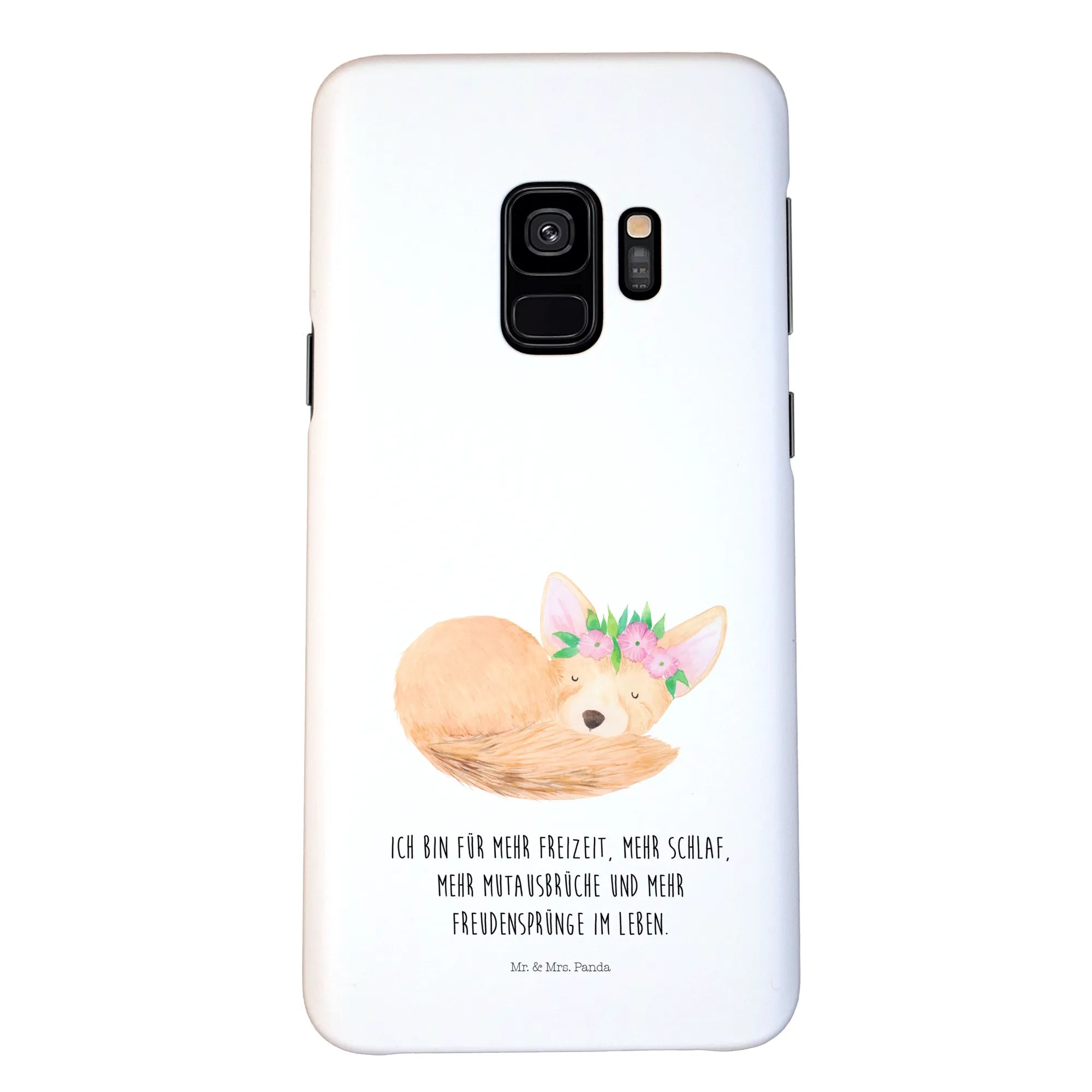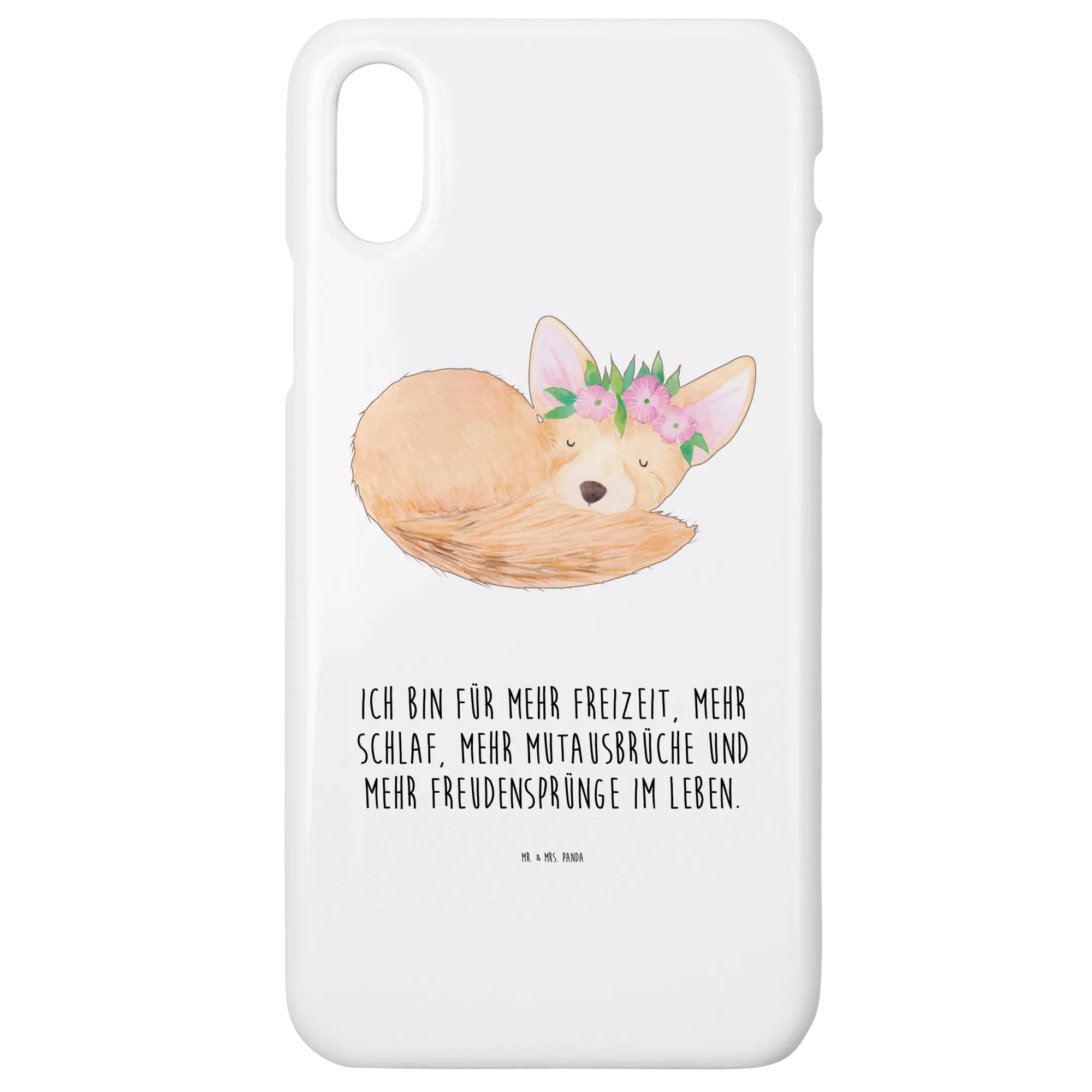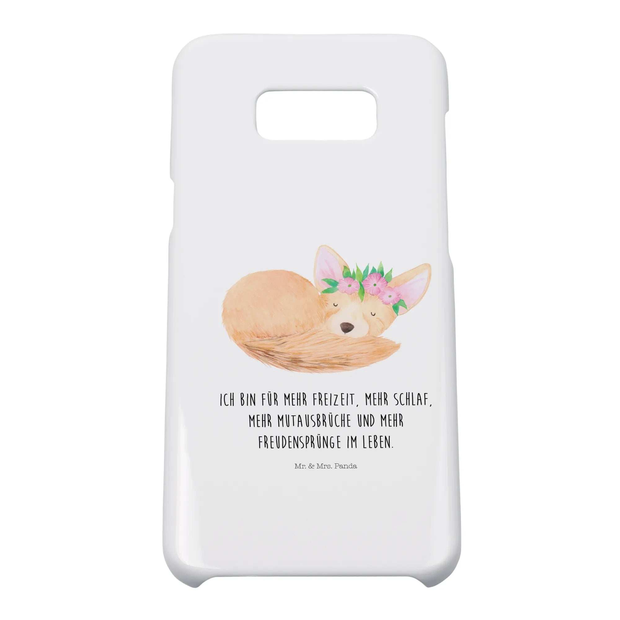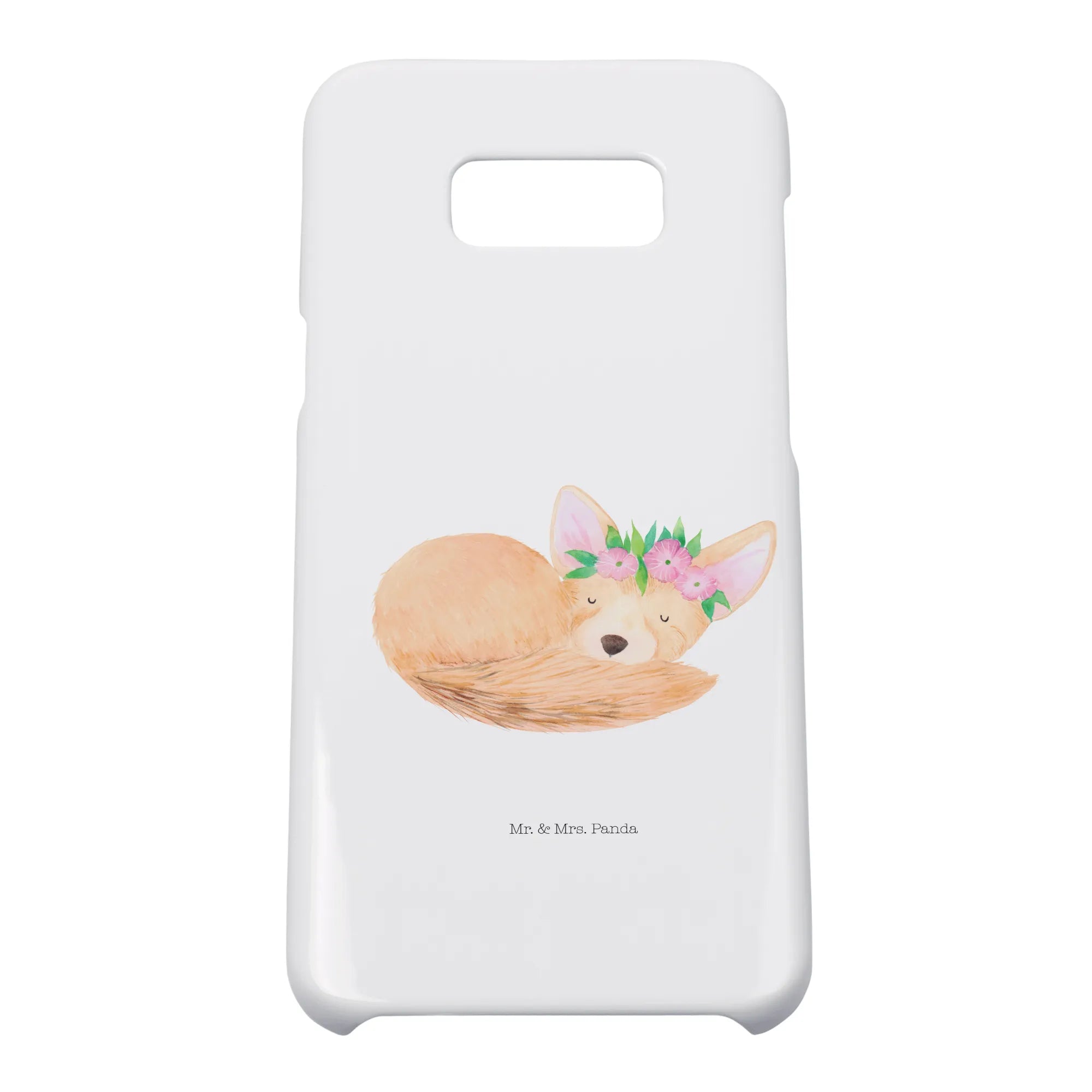 Entdecke unser liebstes Stück aus der Afrika Kollektion: Ein schlafender Wüstenfuchs, zart umrahmt von einem Blumenkranz, handgezeichnet in Aquarell von Mrs. Panda. Dieses liebevolle Motiv auf hellem, weißem Hintergrund bringt dir ein Lächeln in den Alltag und verleiht deinem Smartphone einen einzigartigen, fröhlichen Look. 🦊🌸