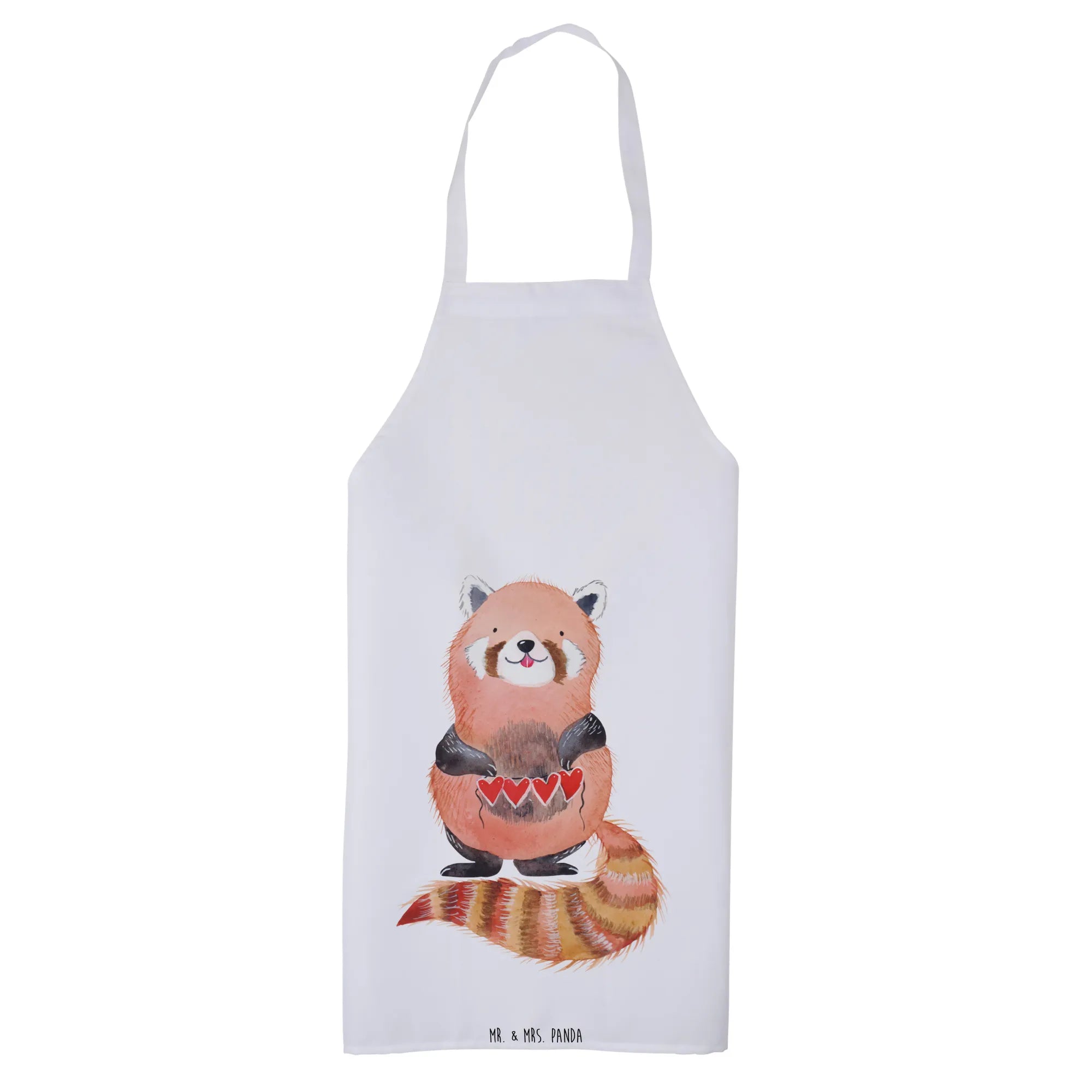 Fartuch kuchenny Czerwony Panda - z napisem - Biały