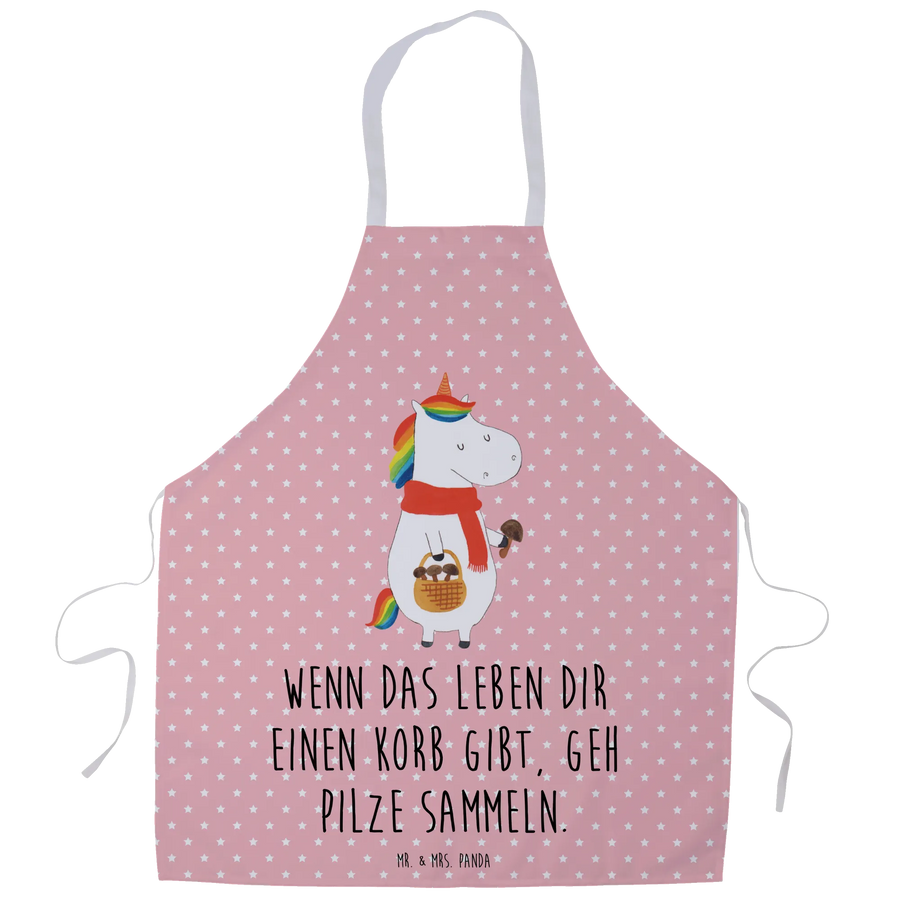 Fartuch kuchenny Jednorożec grzyb - z napisem - Pastelowy czerwony