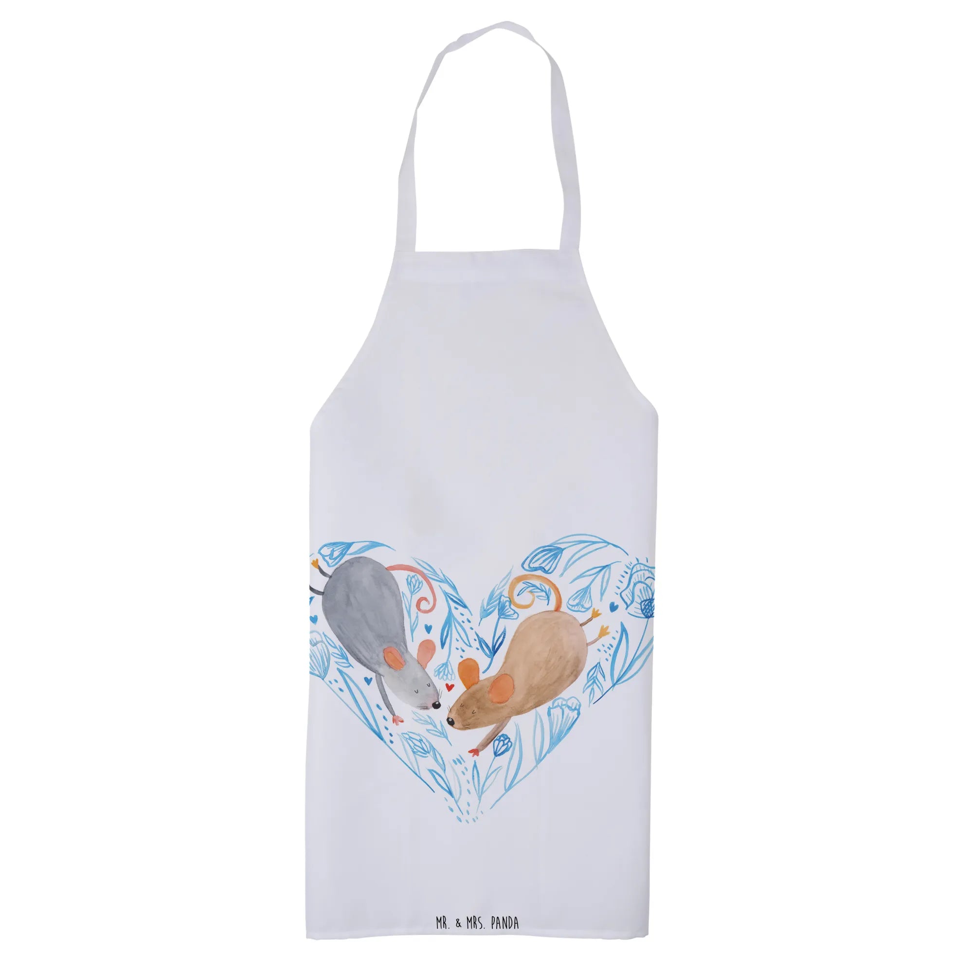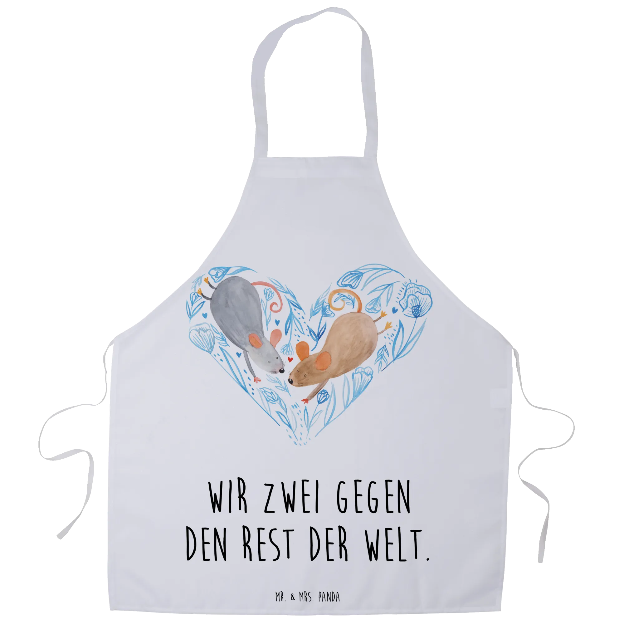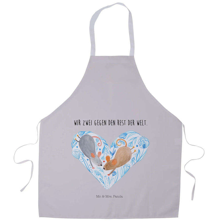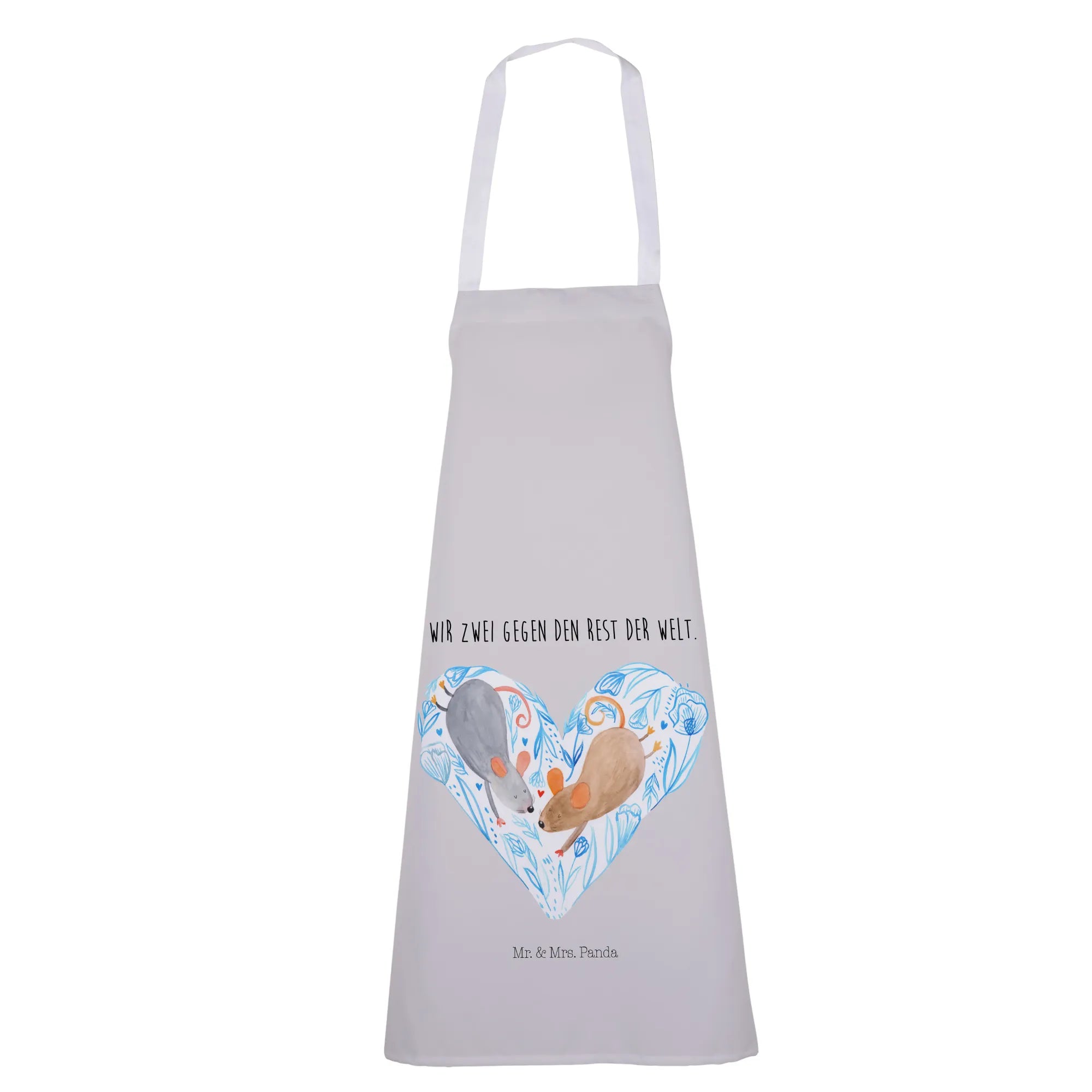 Fartuch kuchenny Myszy serce - z napisem - Szary Pastel