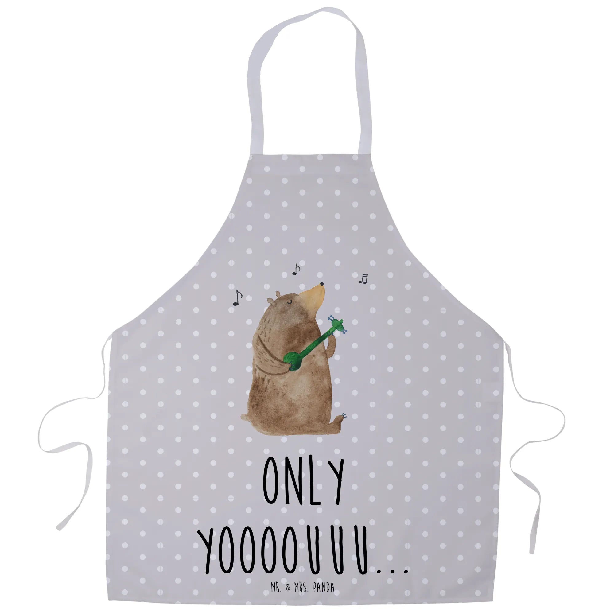 Fartuch kuchenny niedźwiedź Gitara - z napisem - Pastelowy szary