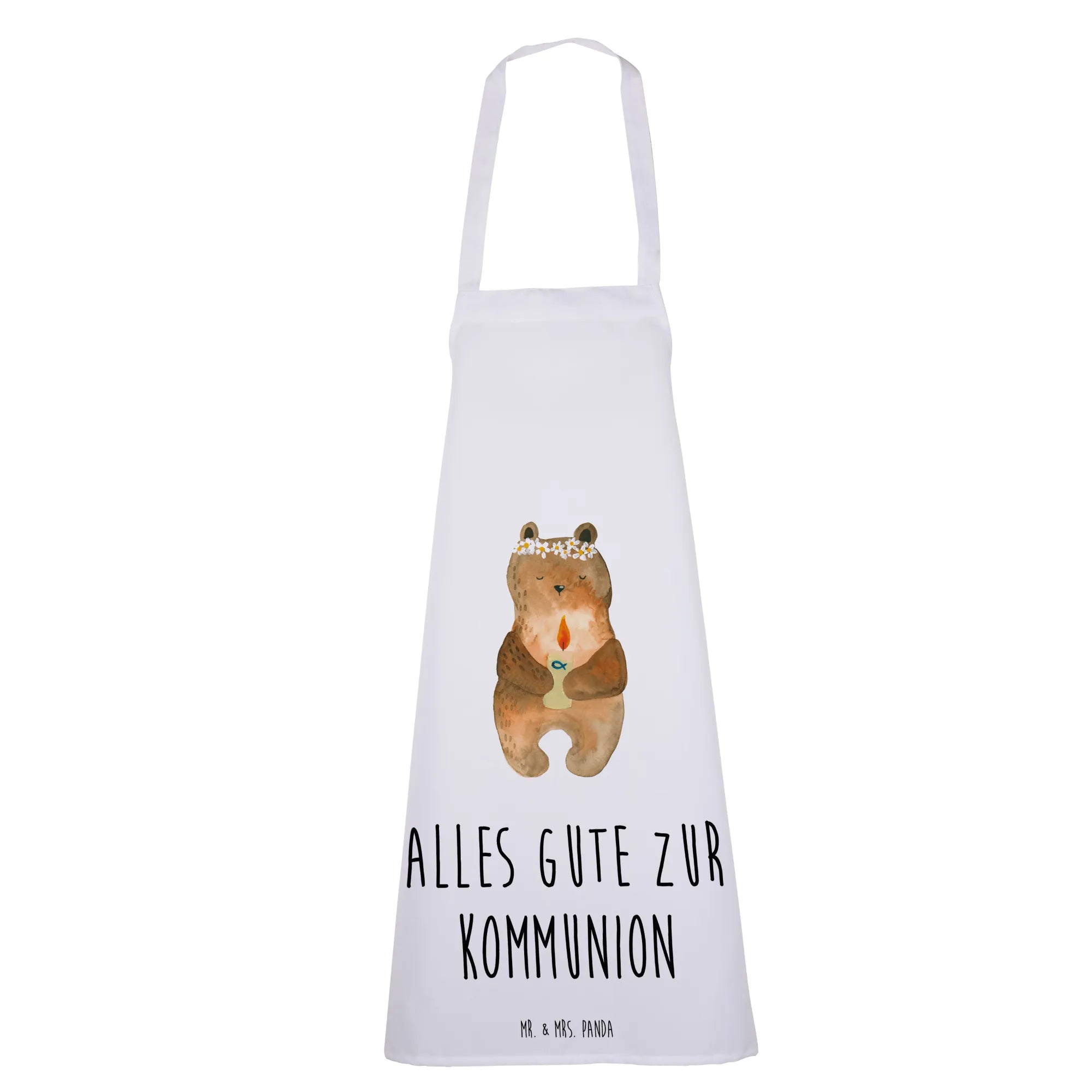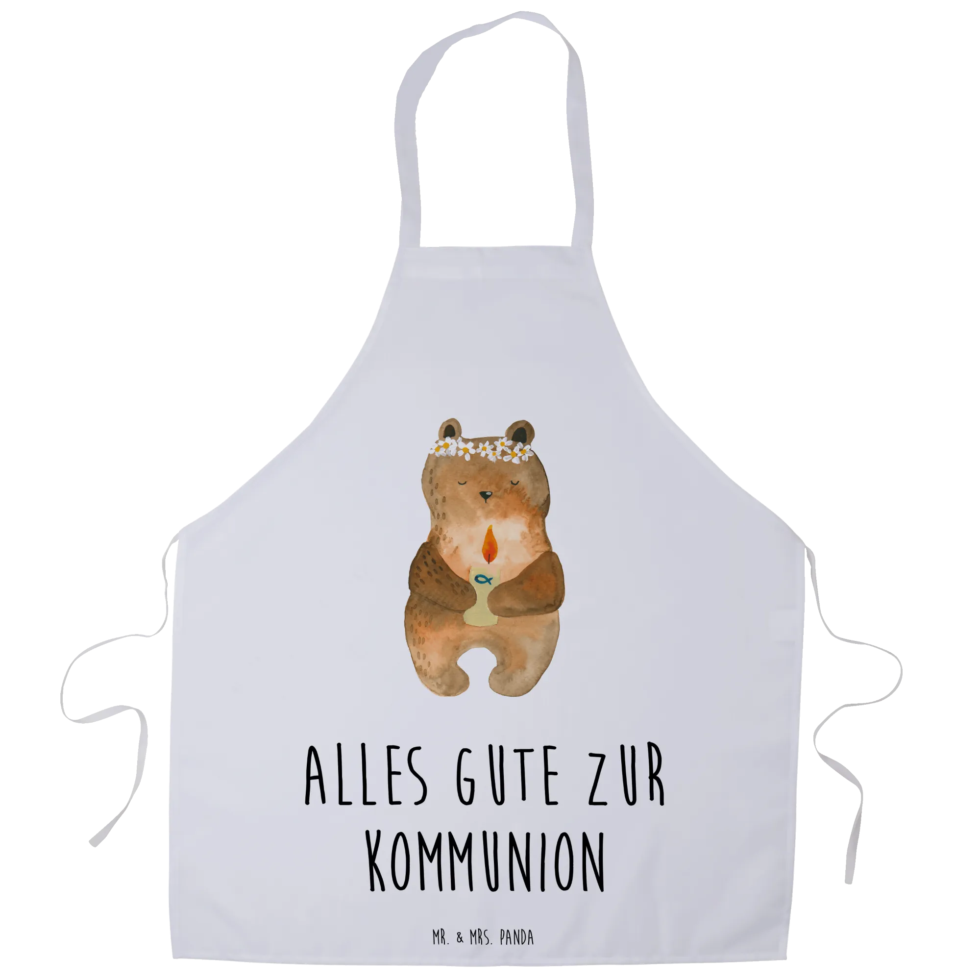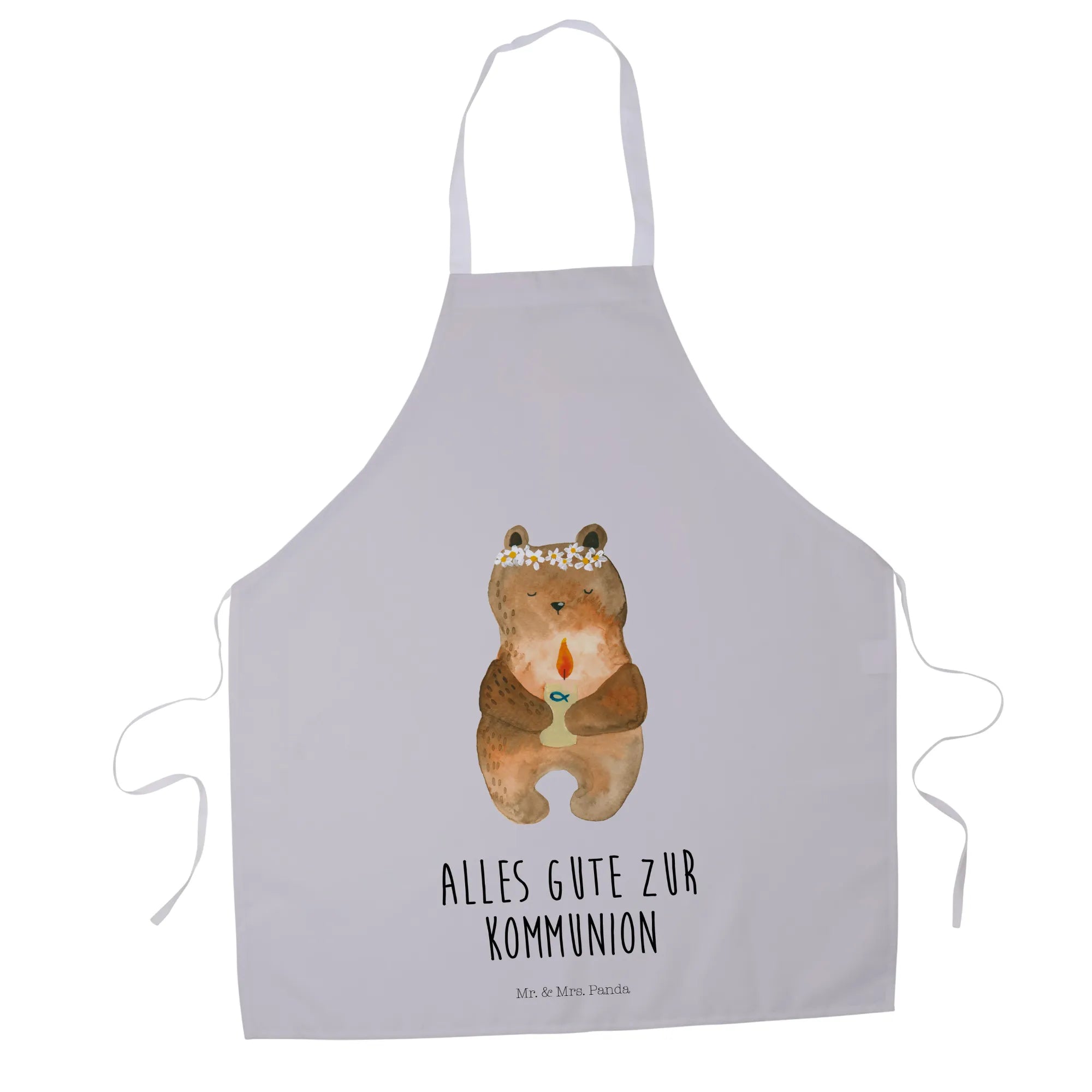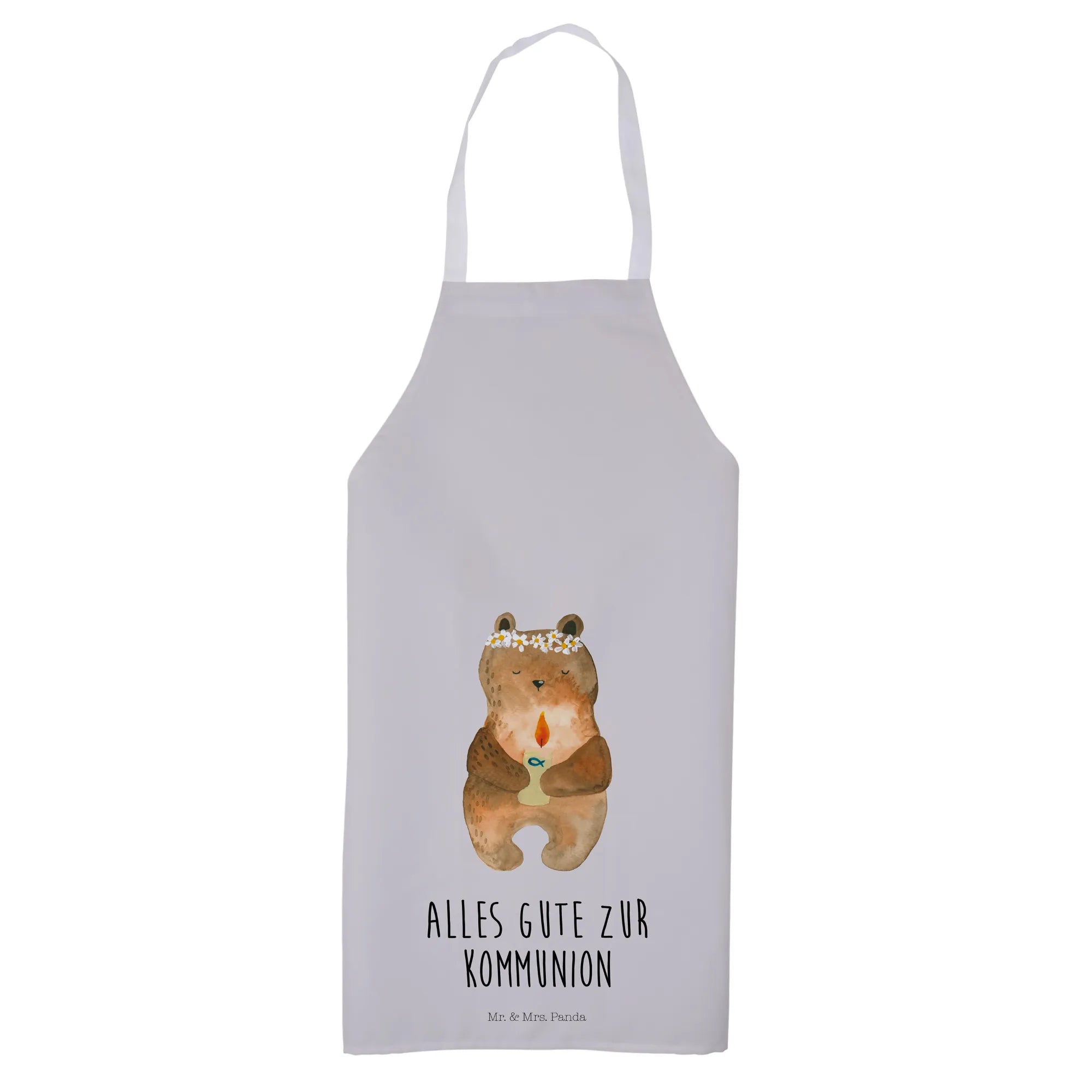 Fartuch kuchenny Niedźwiedź Komunia - z napisem - Pastelowy szary