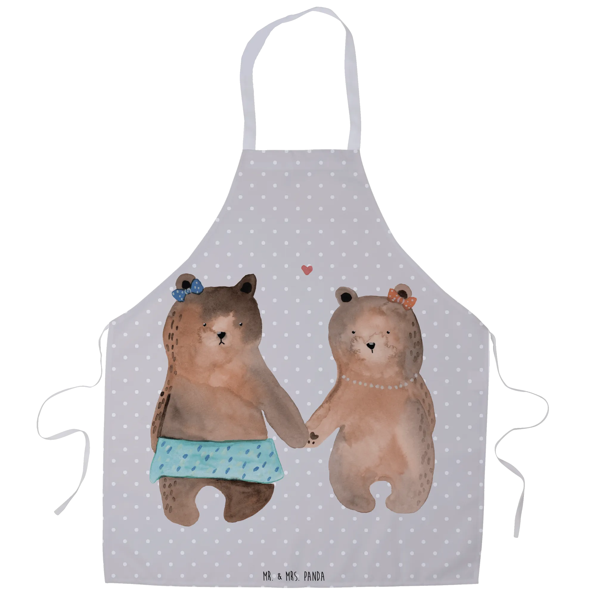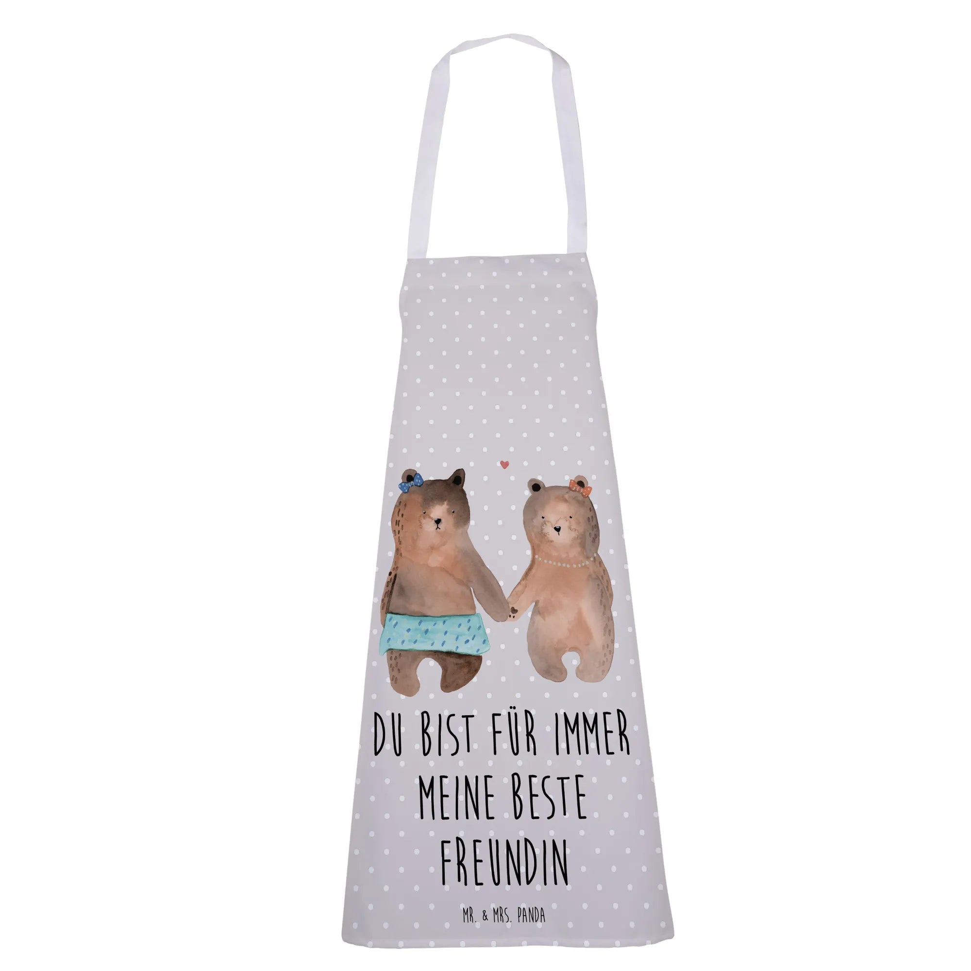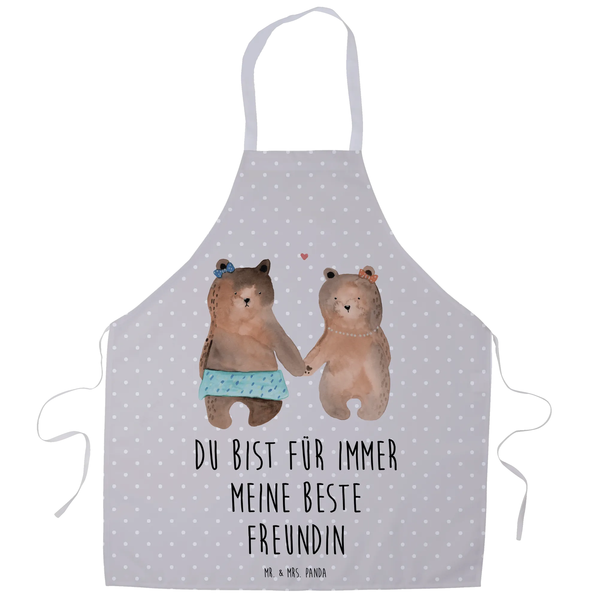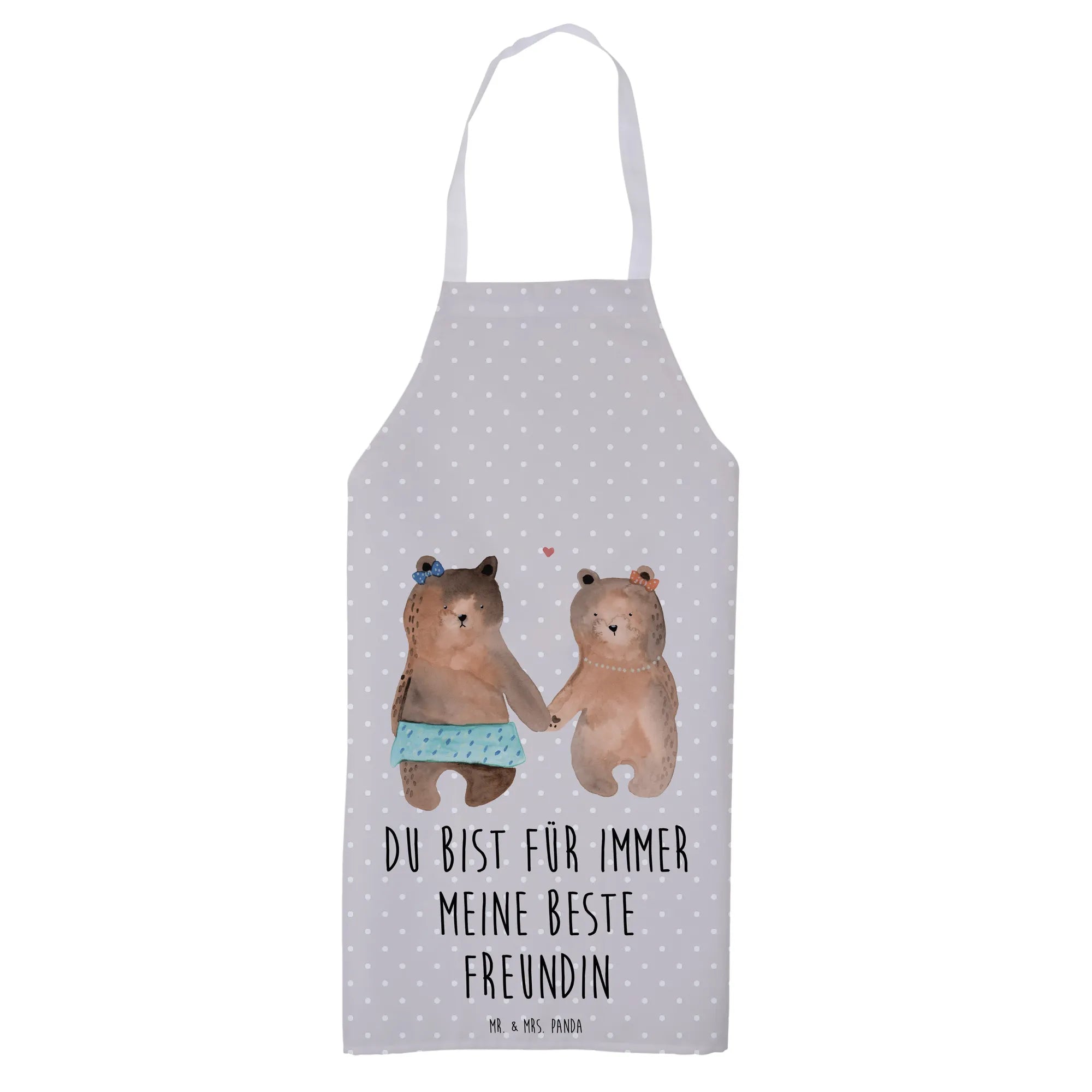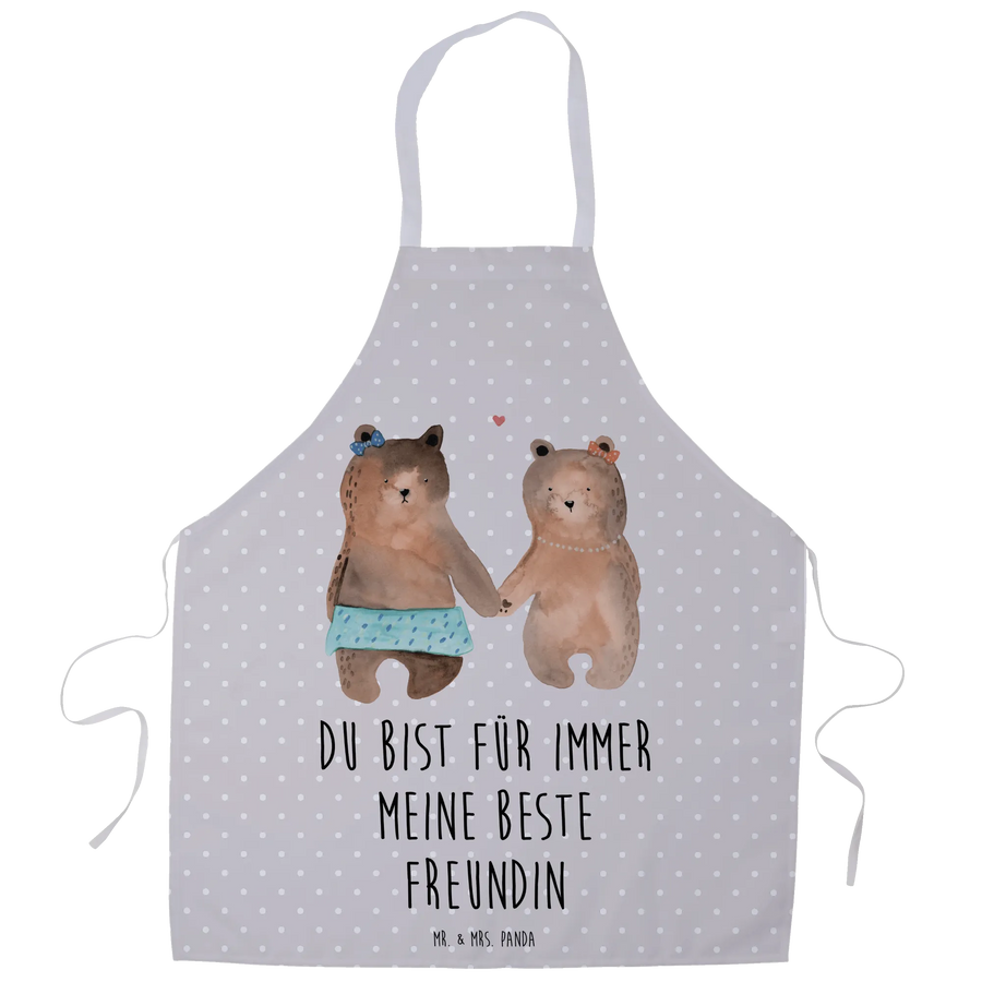 Fartuch kuchenny Niedźwiedź przyjaciółka - z napisem - Szary Pastel