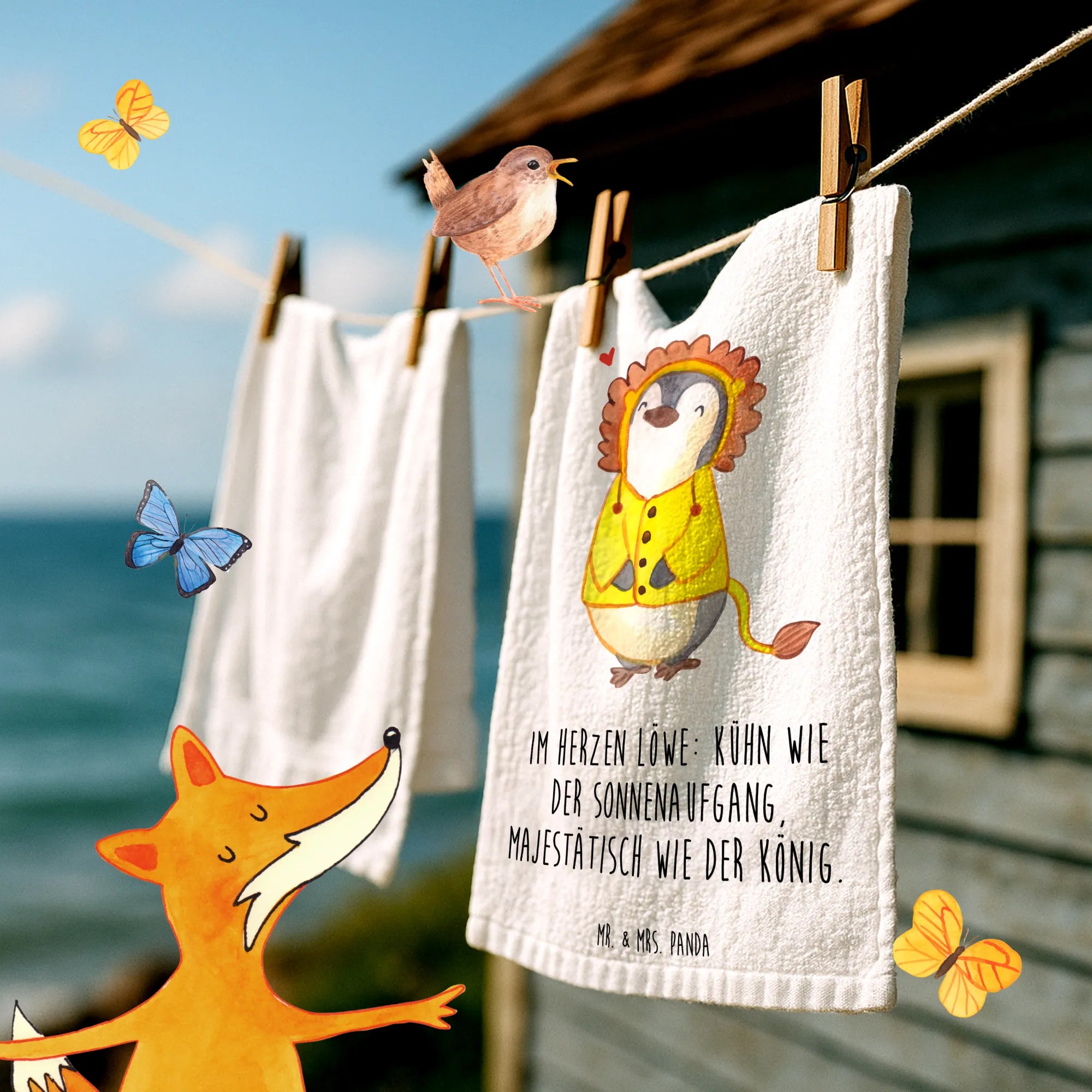 Das Gästetuch Löwe Astrologie von Mr. & Mrs. Panda ist das perfekte Geschenk für alle Löwe-Geborenen und Astrologie-Liebhaber. Mit einem strahlend bunten Design und einem bezaubernden Motiv, das einen fröhlichen Pinguin zeigt, der sich als majestätischer Löwe verkleidet hat, bringt es sofort gute Laune und eine Portion Lebensfreude in jedes Badezimmer.