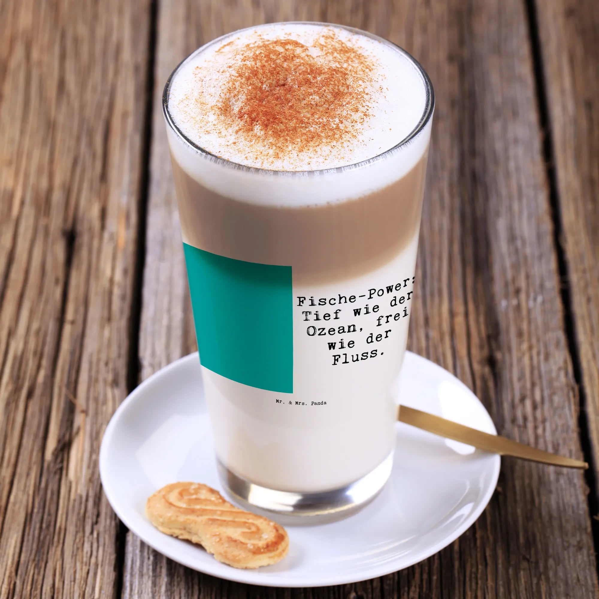 Das edle Cappuccino Glas "Fische Astrologie" von Mr. & Mrs. Panda ist nicht nur ein Trinkgefäß, sondern auch ein wahres Kunstwerk. Mit einem entzückenden Design, das ein fröhliches Kaninchen in einem Fischkostüm zeigt, zaubert das Glas jedem ein Lächeln ins Gesicht. Der Slogan "Fische-Power: Tief wie der Ozean, frei wie der Fluss" erinnert an die tiefgründigen und freien Eigenschaften des Sternzeichens Fische.