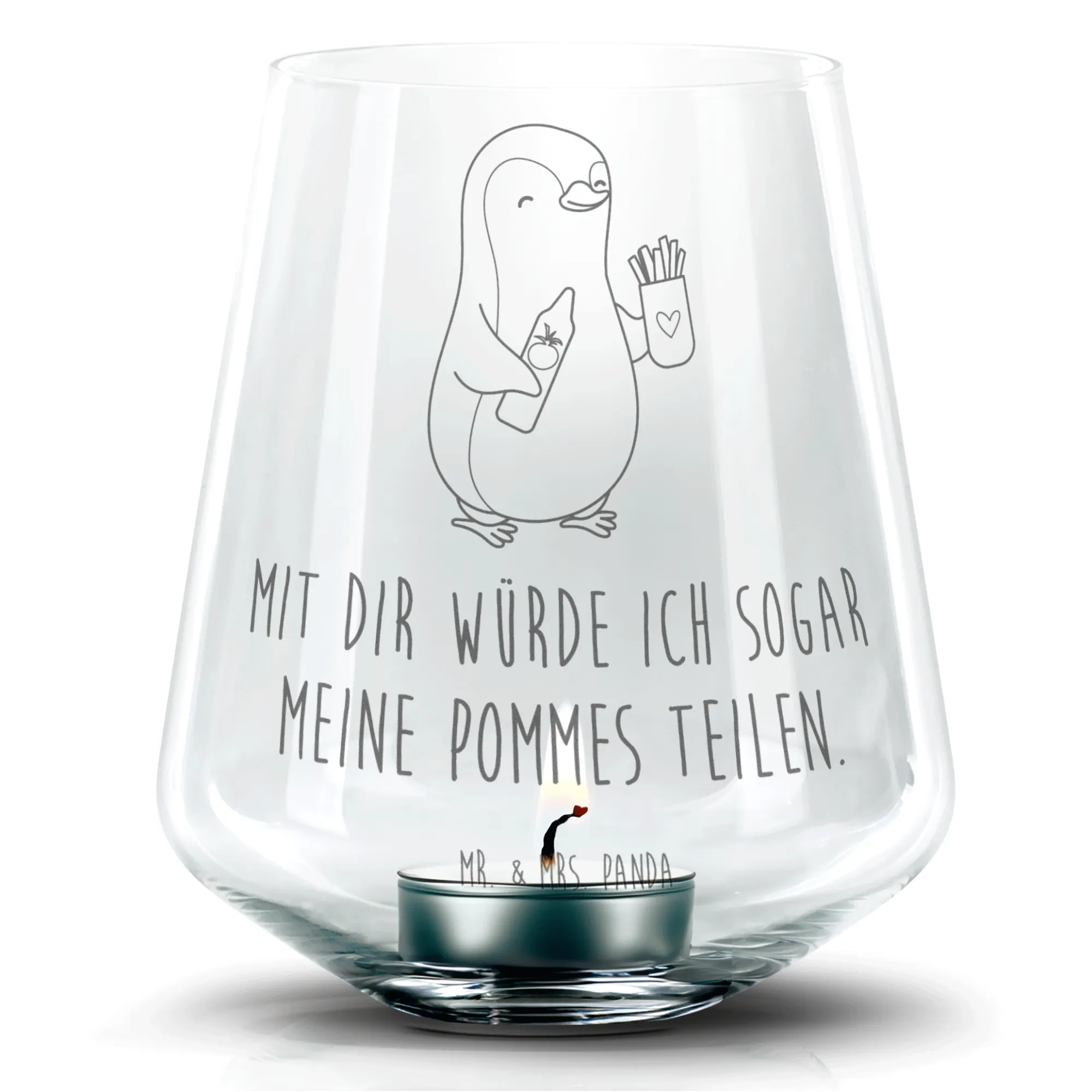 Graviertes Windlicht Pinguin Pommes - mit Spruch