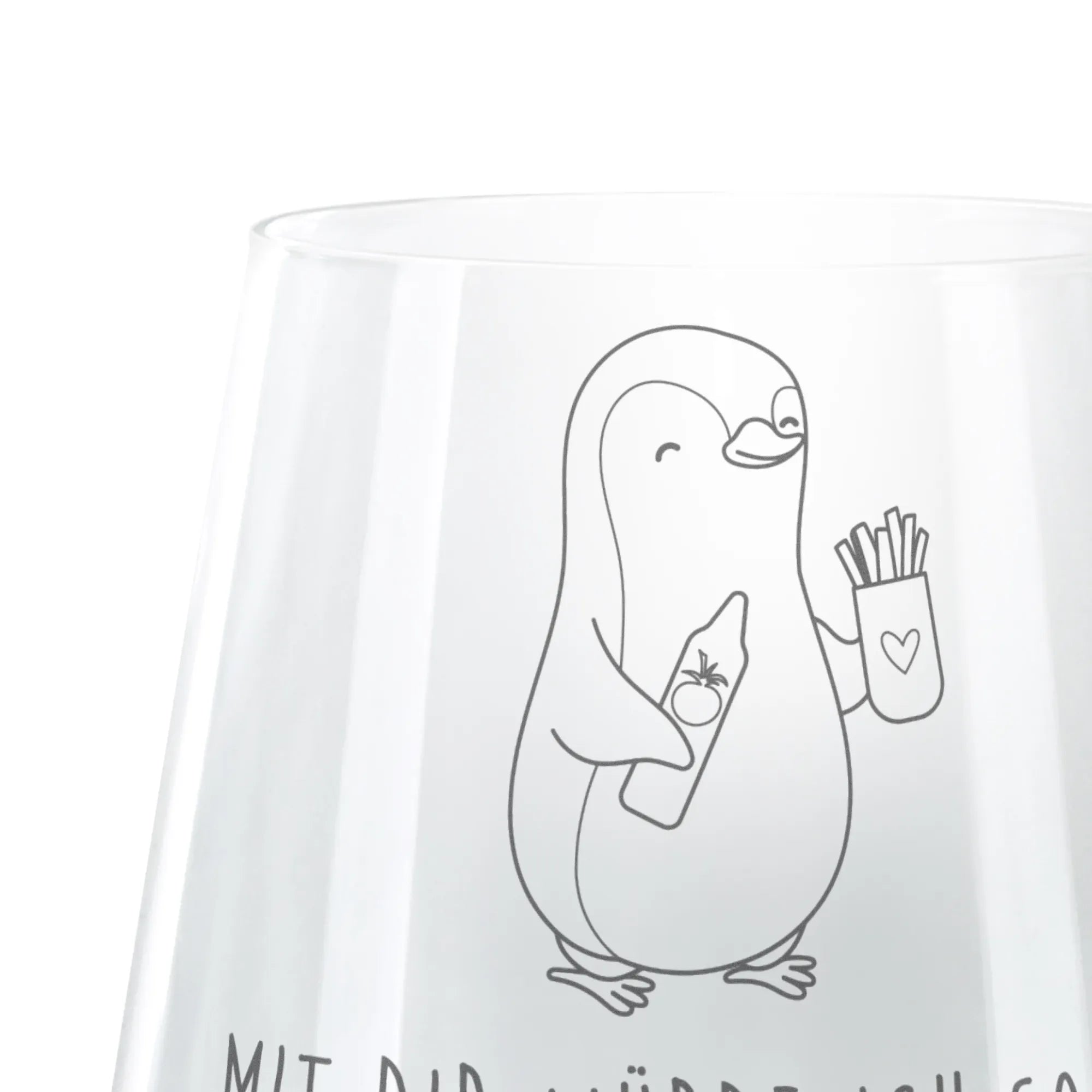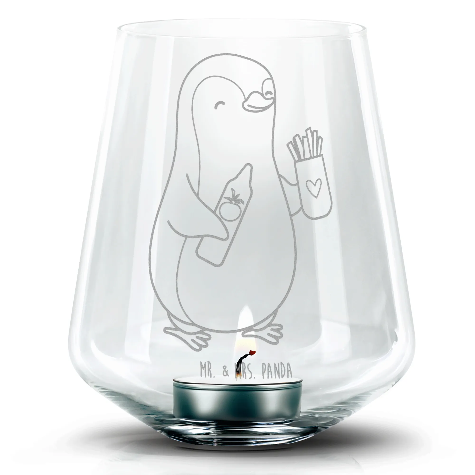 Der süße Pinguin, der mit einer Portion Pommes Frites und einem Ketchup-Fläschchen in der Hand begeistert, verkörpert die fröhliche Verbindung zwischen Dir und Deiner Liebe. Die hochwertige Lasergravur sorgt für einen mattierenden Effekt, der das Motiv zusätzlich zum Strahlen bringt. Aus robustem Glas gefertigt und mit einem eleganten Design passt dieses Teelichtglas perfekt in jedes Zuhause.