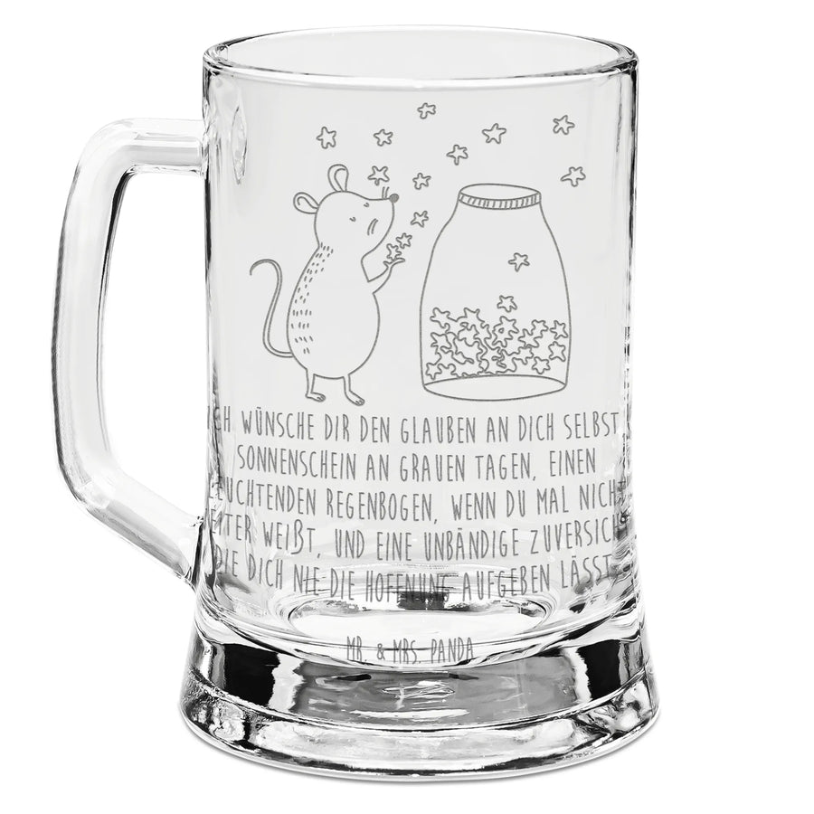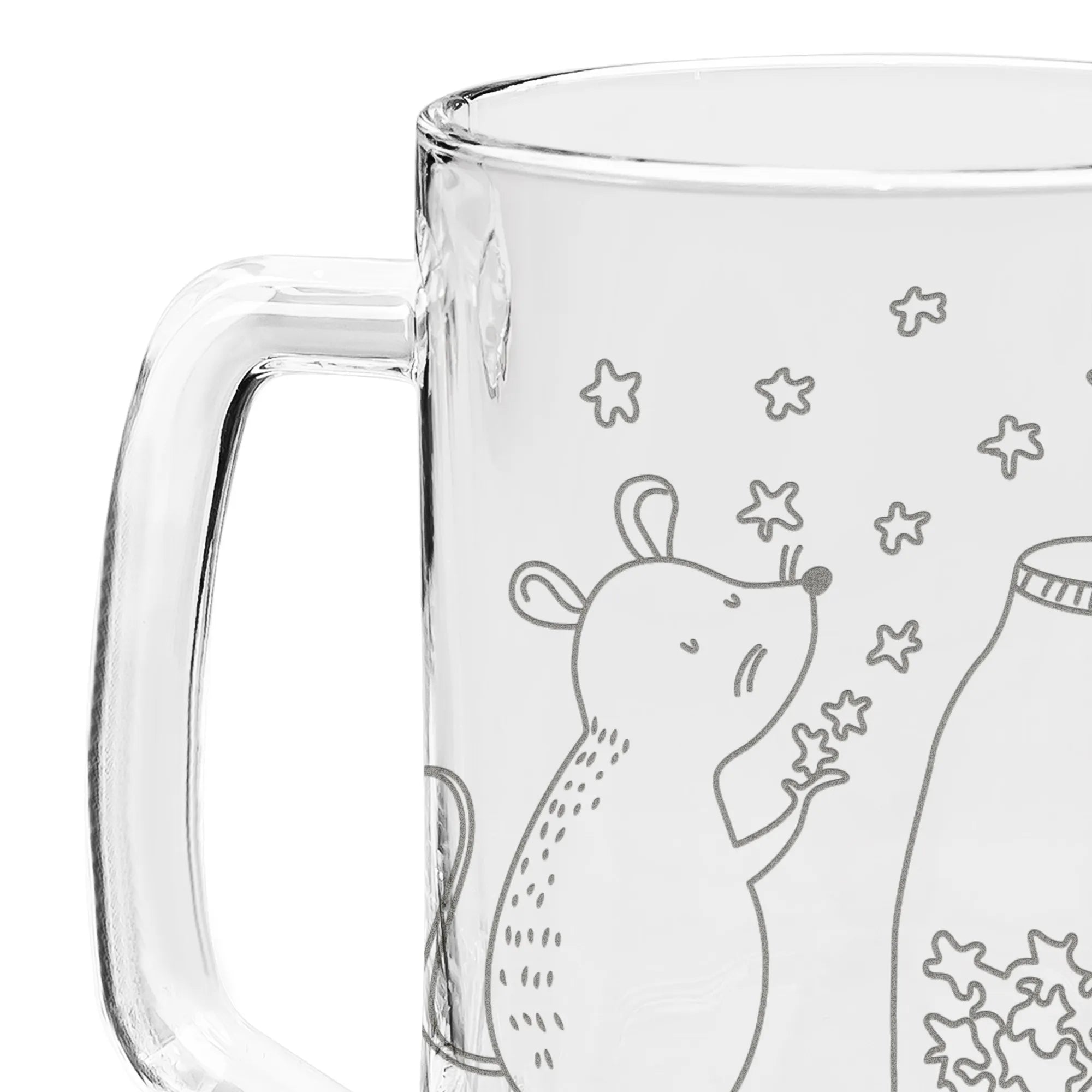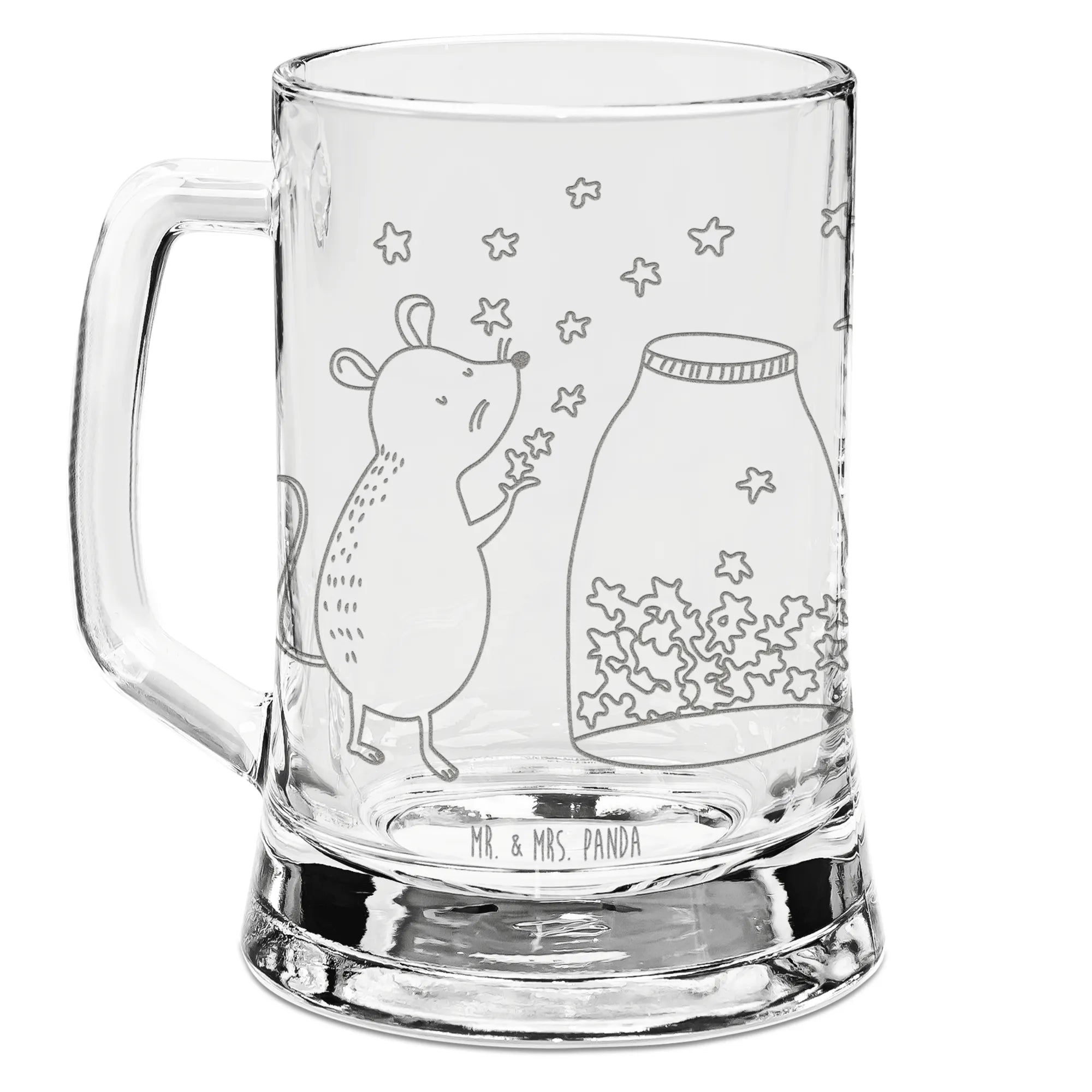 Der wunderschöne Gravur Bierkrug mit dem bezaubernden Motiv Maus Sterne aus der Small World Kollektion von Mr. & Mrs. Panda ist das perfekte Geschenk für jeden Anlass. Ob zum Geburtstag, Vatertag, als Taufschenkung oder zur Geburt eines Kindes – dieser Bierkrug bringt jedem, der gerne Bier trinkt, Freude und ein Lächeln ins Gesicht. Die süße Maus, die vor einem funkelnden Glas voller Sterne sitzt, lädt ein, gemeinsam in die Weiten des Universums abzutauchen und Träume wahr werden zu lassen.