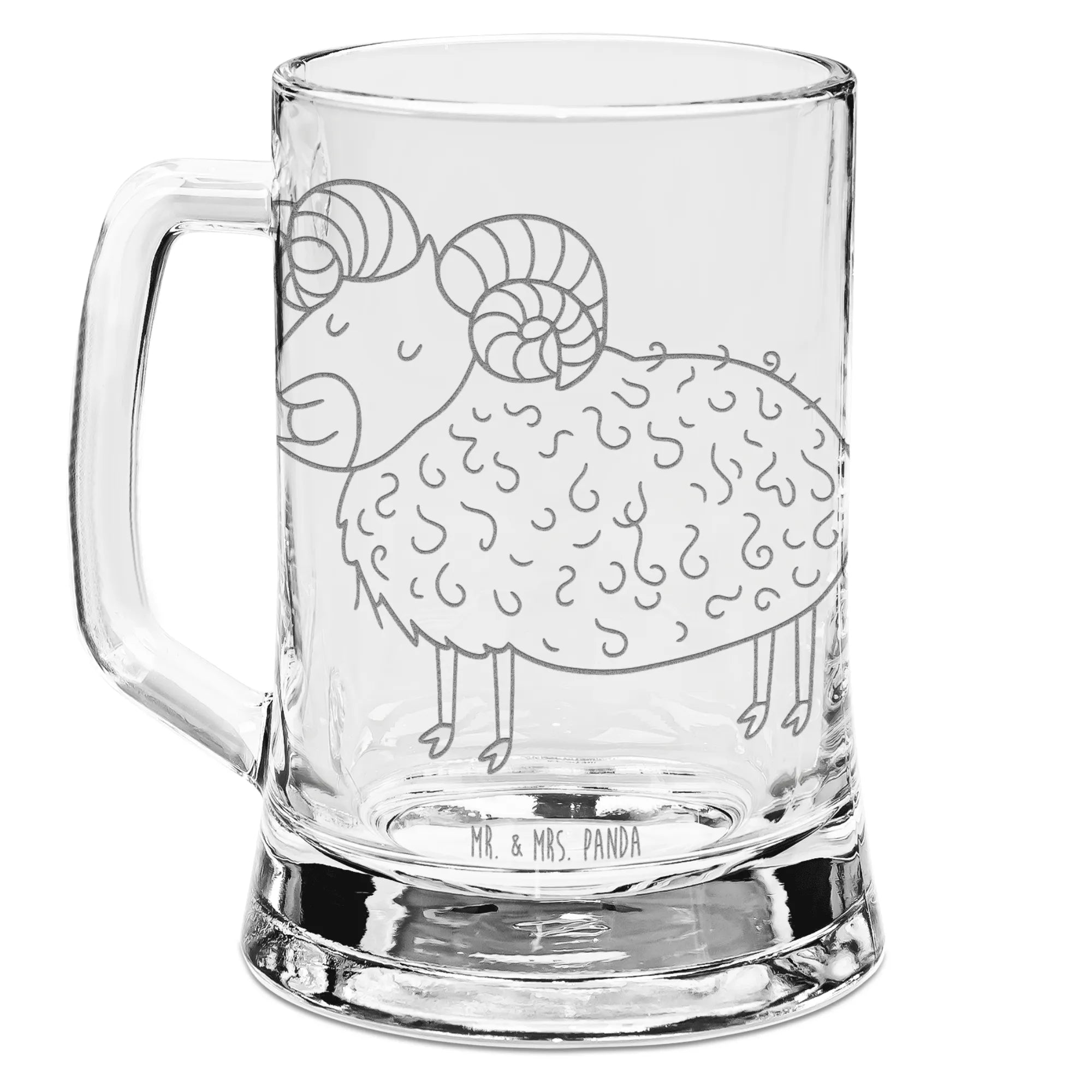 Grawerowany Kufel Piwa znak zodiaku Baran - mit Spruch