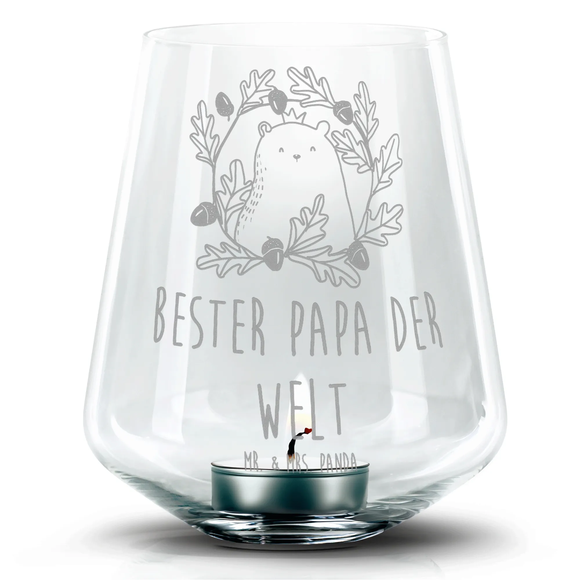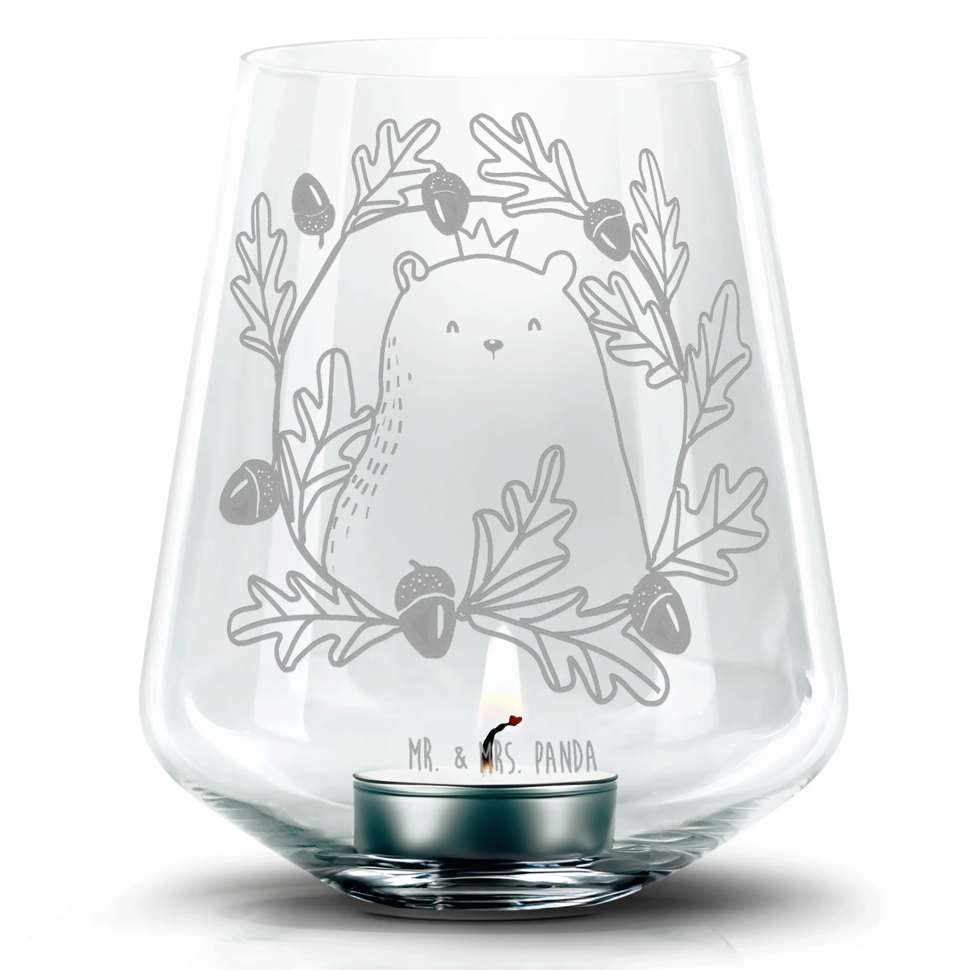 Grawerowany lampion Niedźwiedź król - z napisem