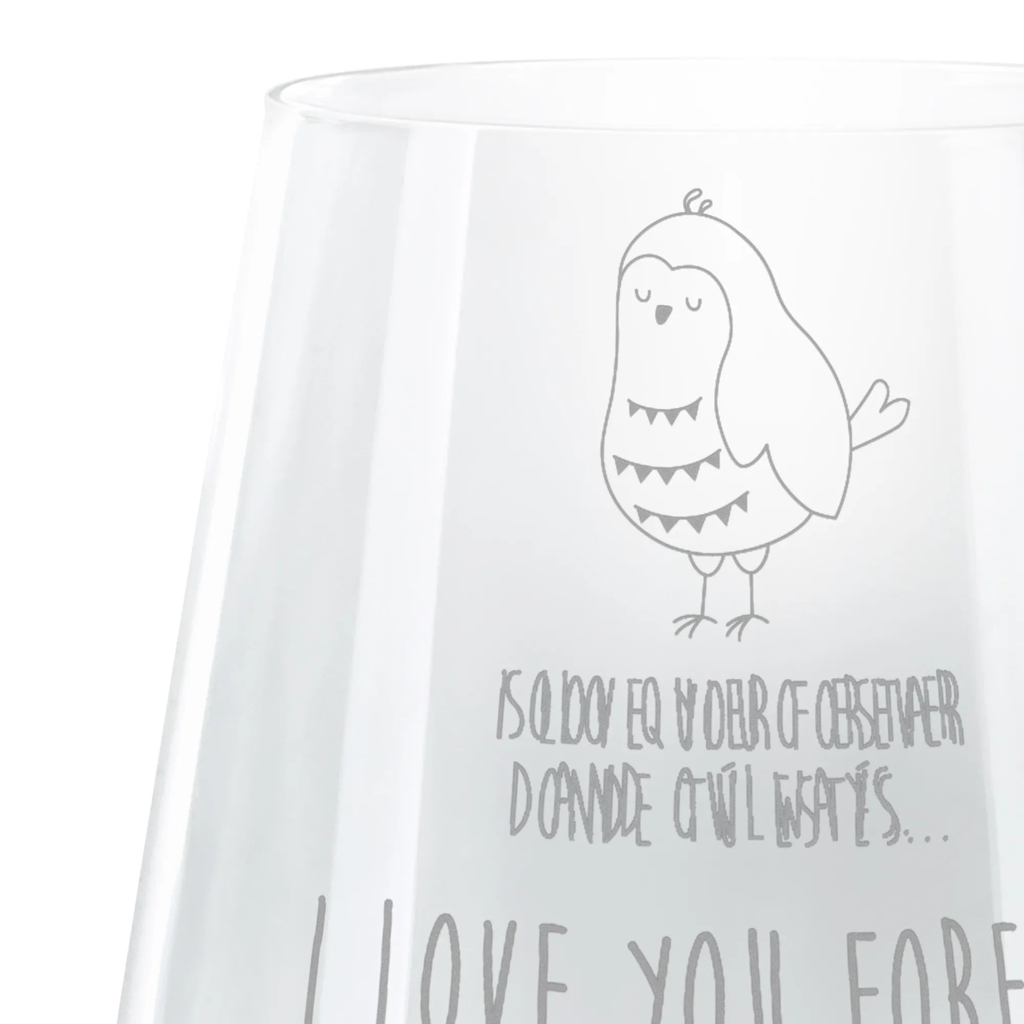 Grawerowany lampion sowa zadowolona - z napisem