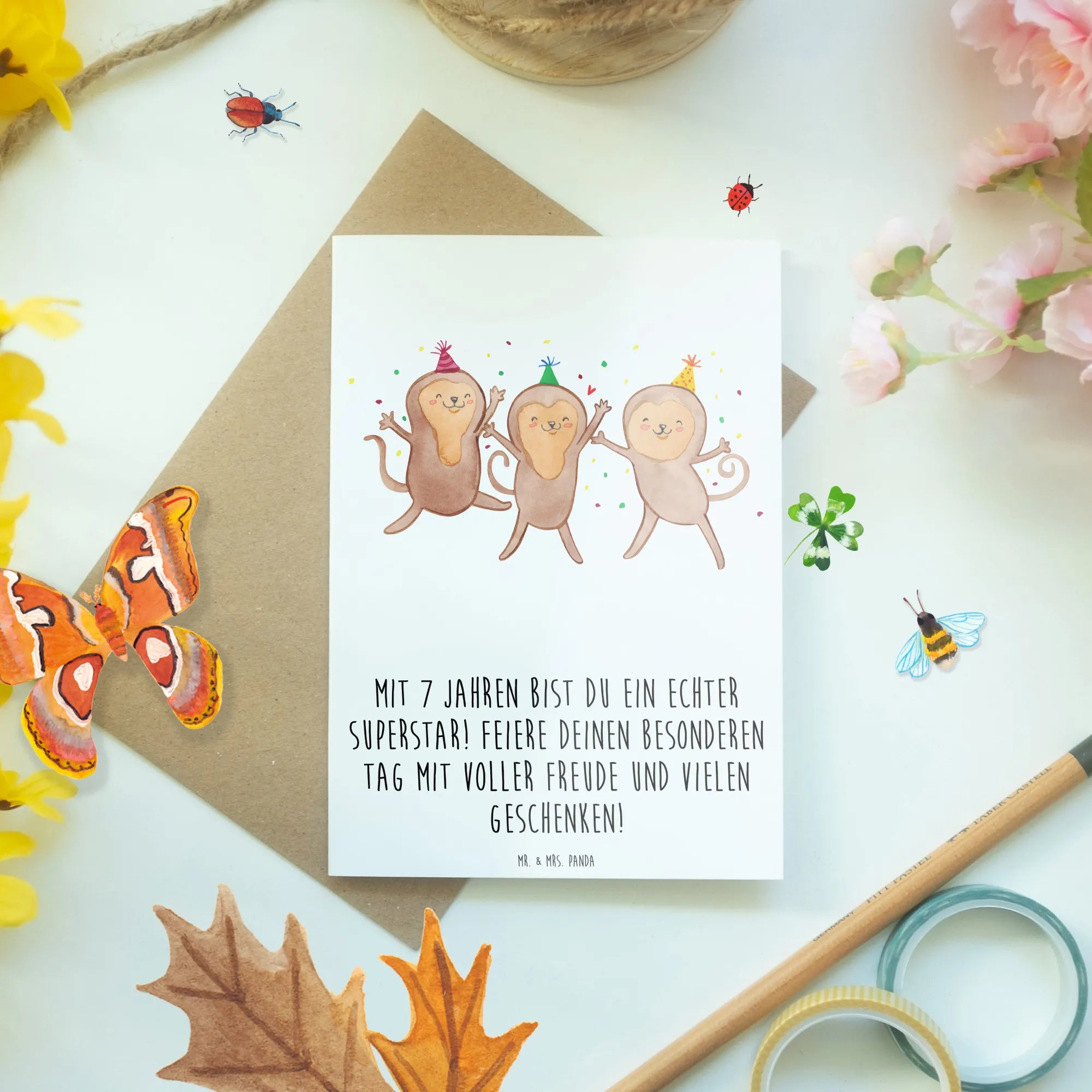 Die wunderschöne Grußkarte zum 7. Geburtstag aus der liebevollen Mr. & Mrs. Panda Kollektion "Geburtstag Alter" ist das perfekte Geschenk, um einem kleinen Superstar zu gratulieren! Mit dem liebevollen Slogan "Mit 7 Jahren bist du ein echter Superstar! Feiere deinen besonderen Tag mit voller Freude und vielen Geschenken!" bringt diese Karte ein strahlendes Lächeln auf die Gesichter der Geburtstagskinder.