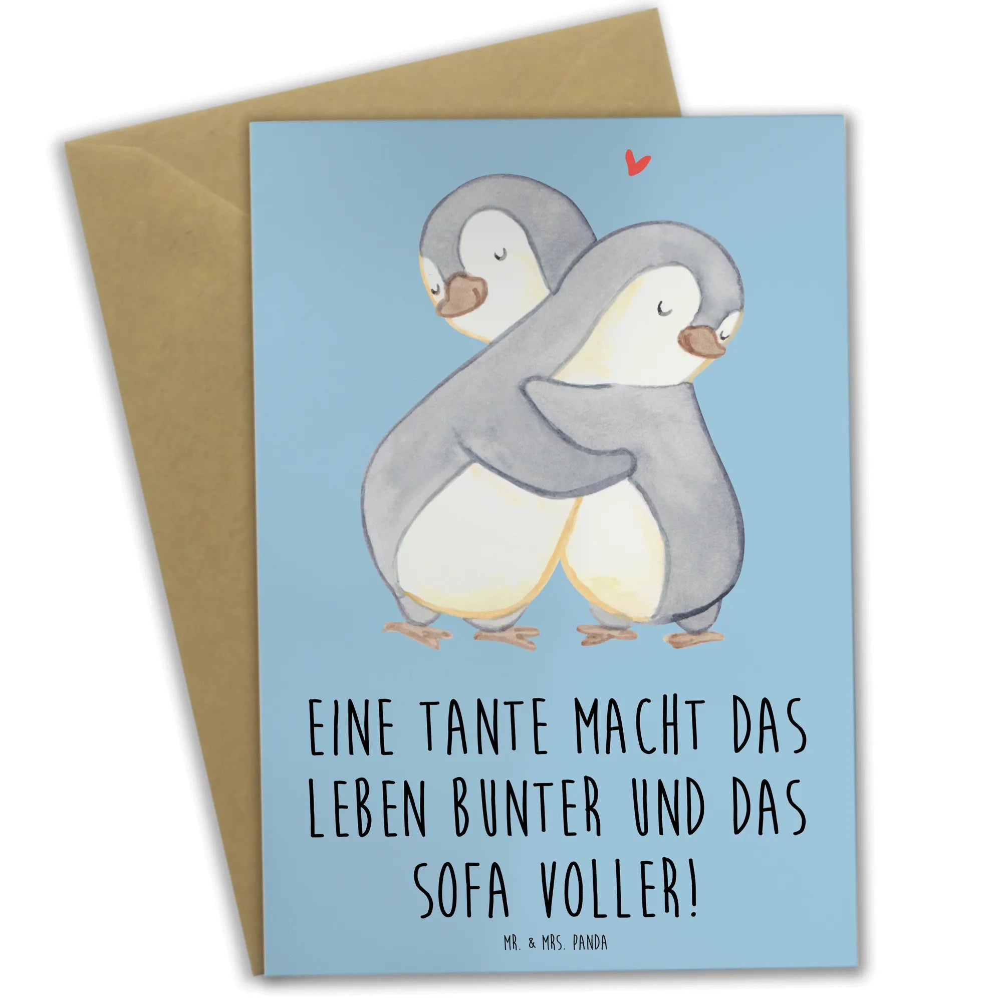 Diese einzigartige Grußkarte von Mr. & Mrs. Panda zeigt das liebevolle Motiv einer Tante und wird deine Verwandten begeistern! Tanten sind oft mehr als nur Verwandte – sie sind Vertraute, Freundinnen und eine Quelle der Inspiration im Leben.