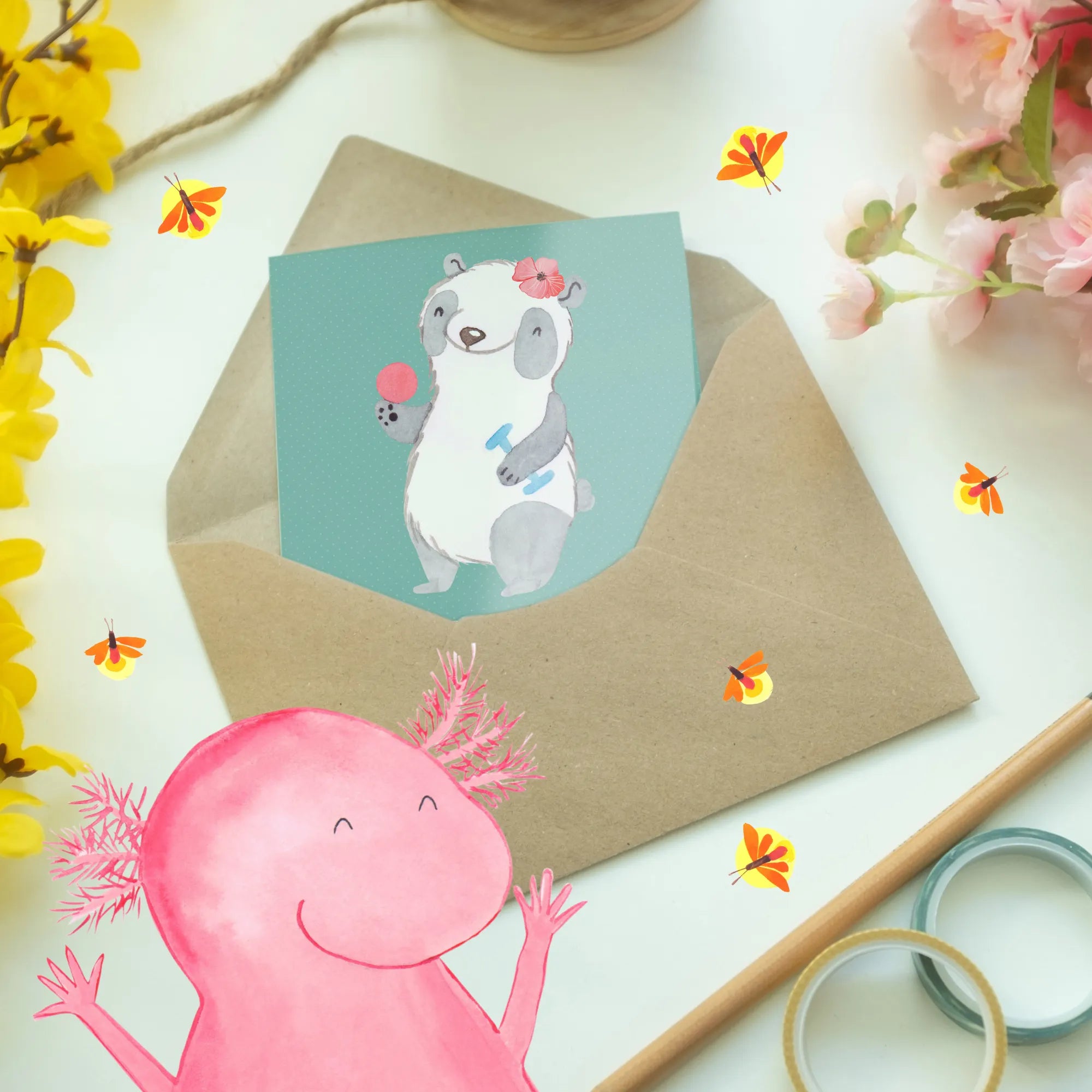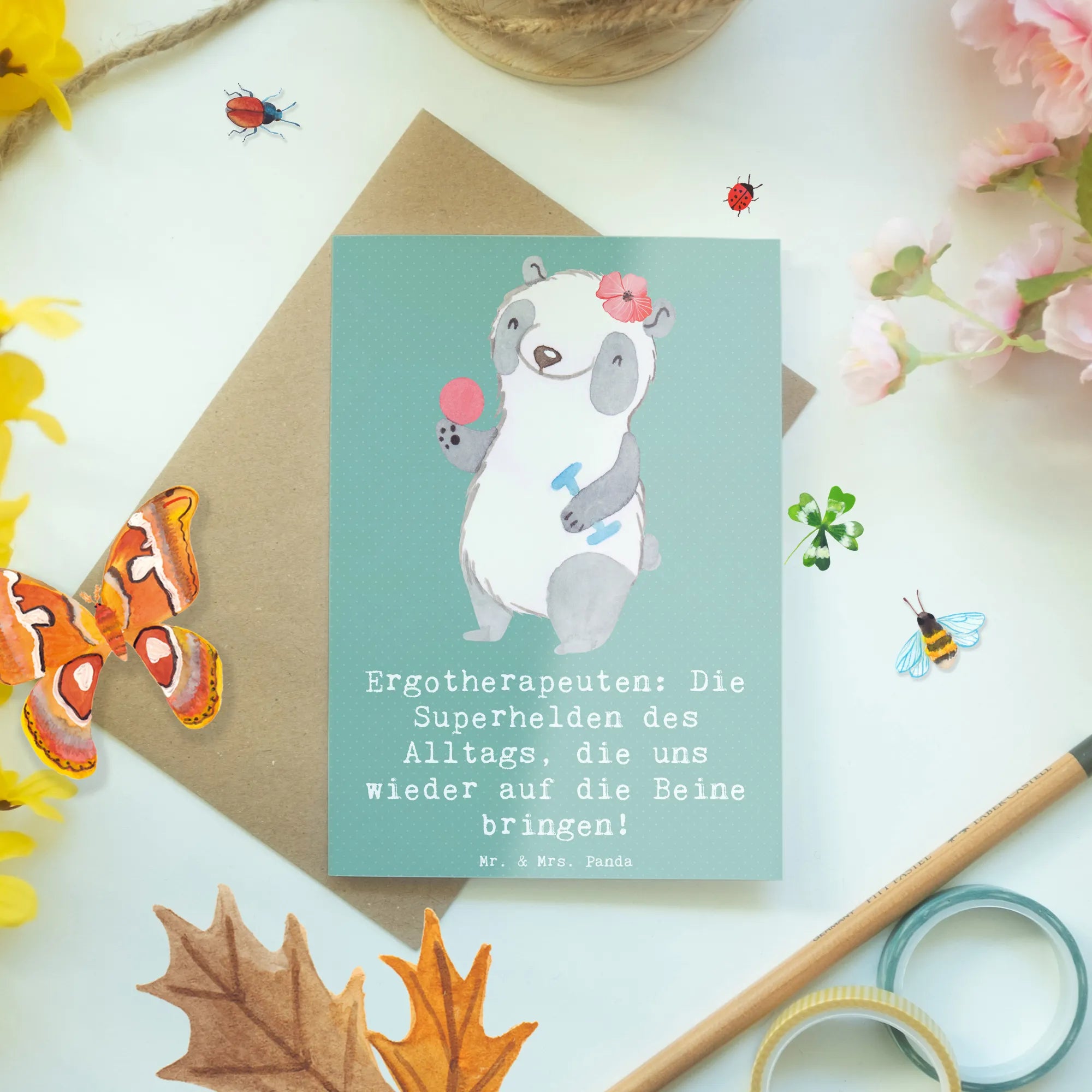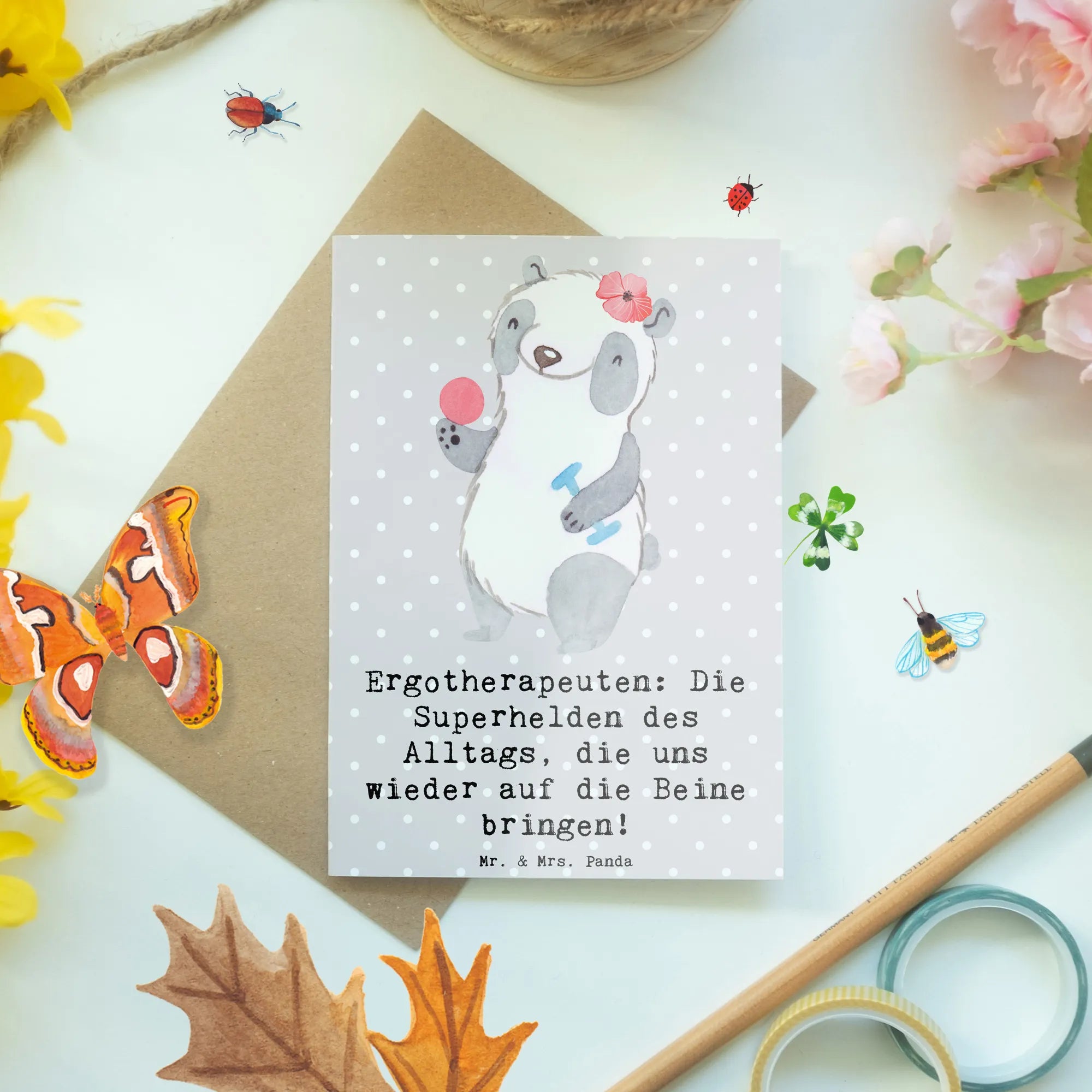 Ob zum Geburtstag, zum Berufsabschluss oder einfach als nette Geste zwischendurch - diese Grußkarte ist ein echter Alleskönner in der Welt der Dankeskarten und Glückwunschkarten! Lass dich inspirieren und verschenke Herzen mit der einzigartigen Grußkarte Ergotherapeutin von Mr. & Mrs. Panda!