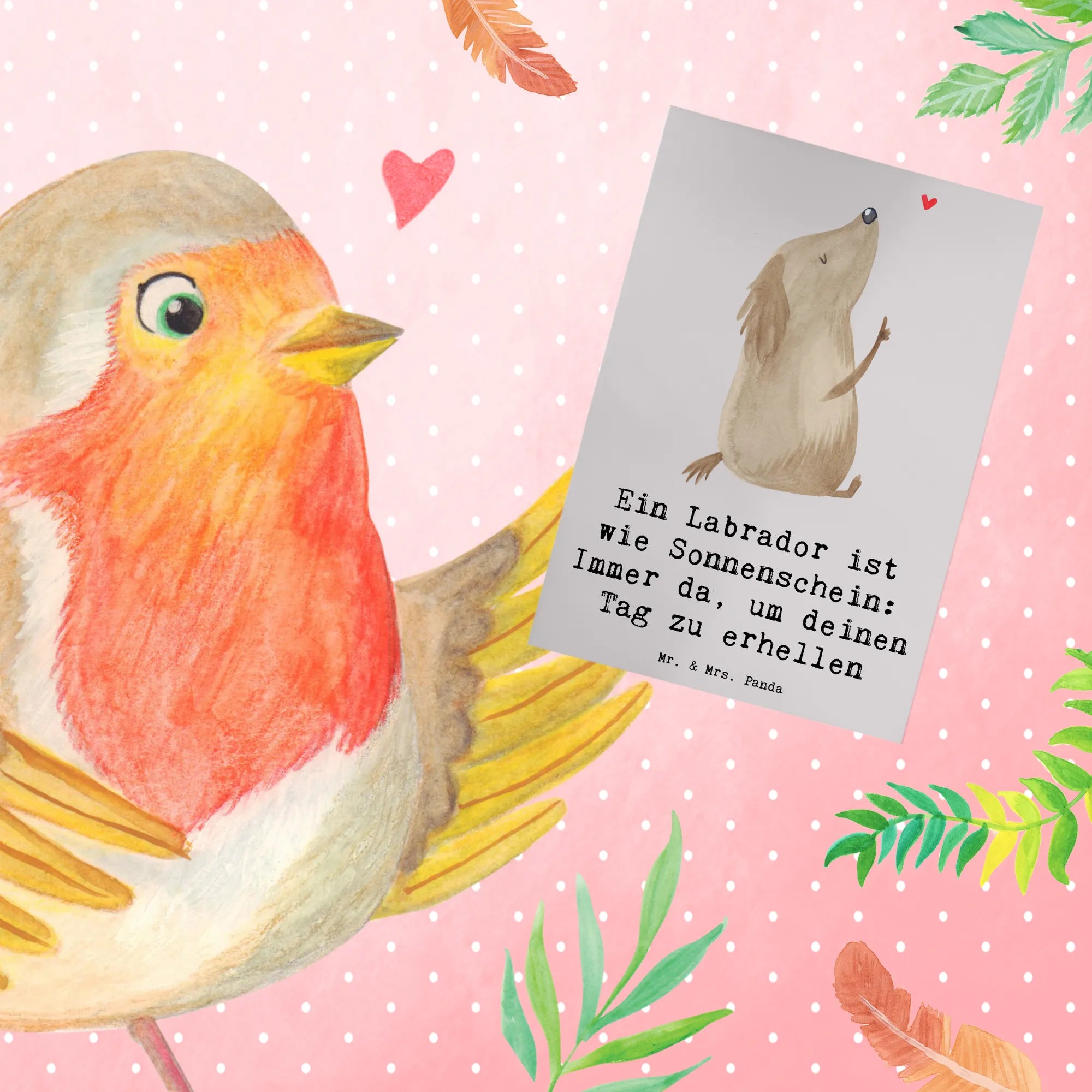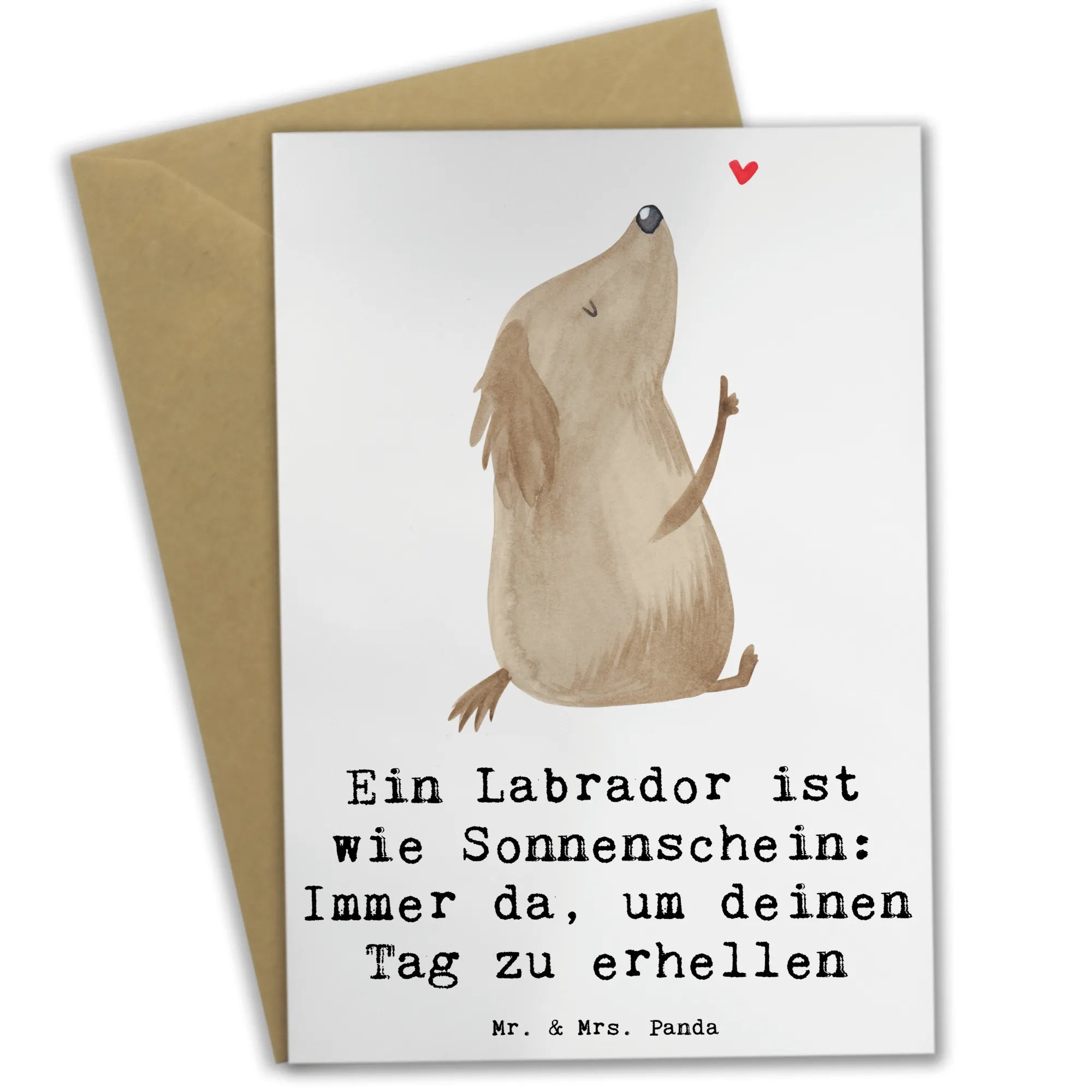 Die Grußkarte mit dem bezaubernden Labrador-Motiv aus der Hunderassen-Kollektion von Mr. & Mrs. Panda ist das perfekte Geschenk für Hundefans! Ob zur Hochzeit, zum Geburtstag oder einfach nur so: Diese Karte zaubert immer ein Lächeln ins Gesicht! Der Labrador ist dafür bekannt, immer Freude zu bringen, genau wie diese Karte. Mit dem liebevollen Spruch "Ein Labrador ist wie Sonnenschein: Immer da, um deinen Tag zu erhellen" wird sie zu einem emotionalen Highlight deines Geschenks.