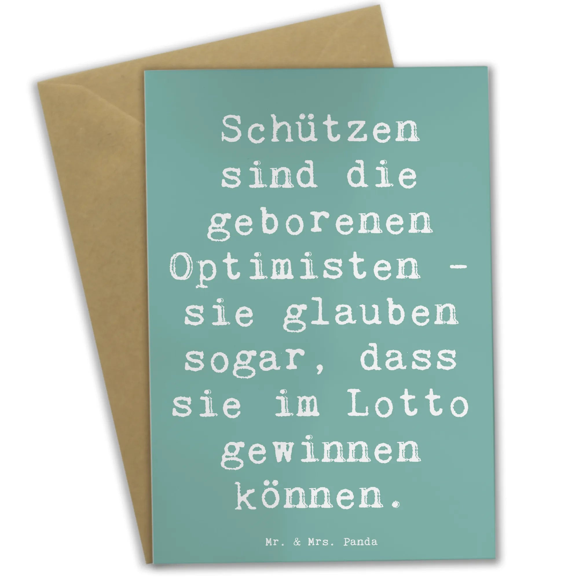 Ideal für Menschen, die unter dem Sternzeichen Schütze geboren sind oder einfach nur einen optimistischen Geist in ihrem Leben haben wollen. Mit dem Spruch "Schützen sind die geborenen Optimisten - sie glauben sogar, dass sie im Lotto gewinnen können" wird die positive Ausstrahlung des Schütze-Zeichens perfekt eingefangen. Egal, ob du zu Geburtstagen, Hochzeiten oder anderen festlichen Anlässen Freude bereiten möchtest, diese Karte ist eine wunderbare Wahl!