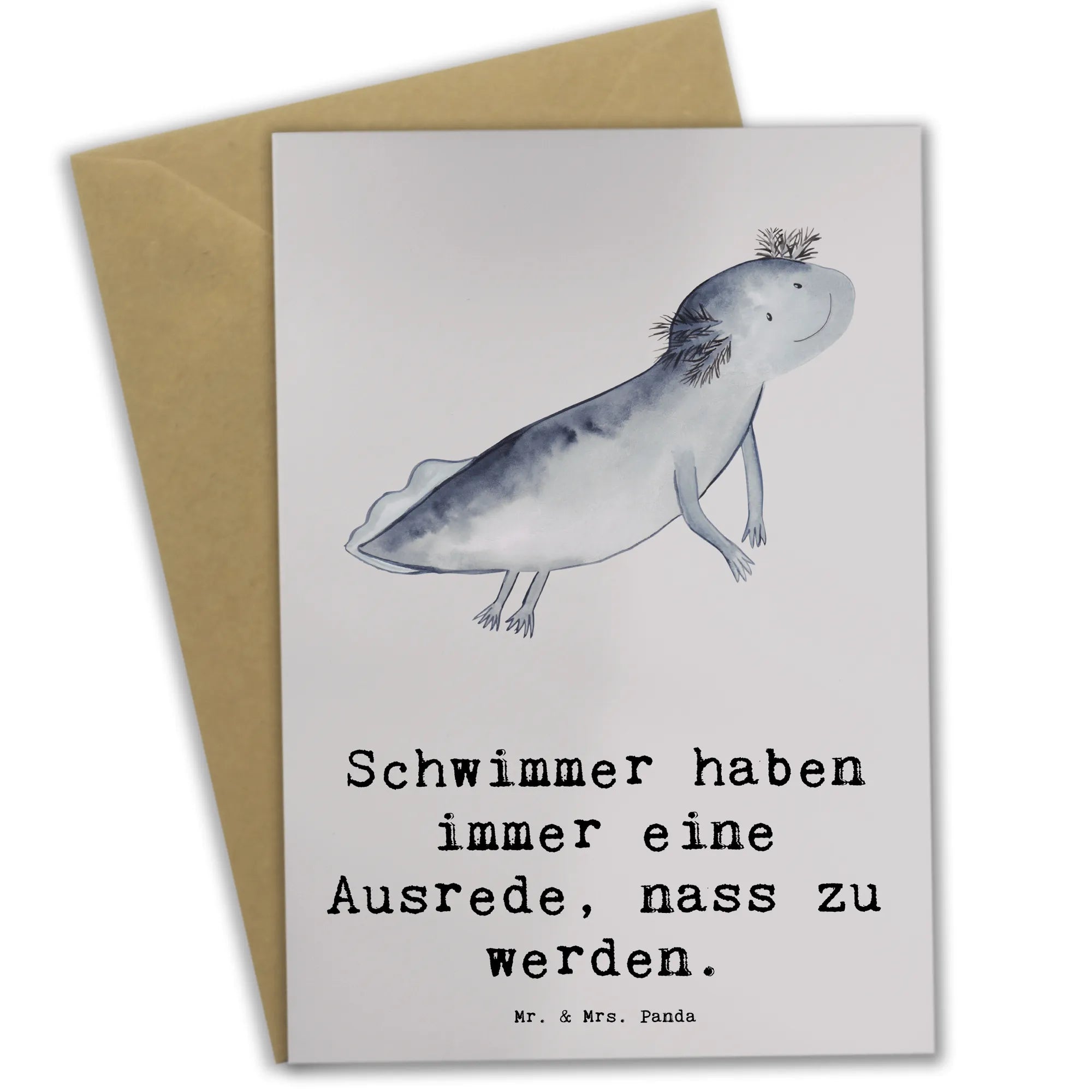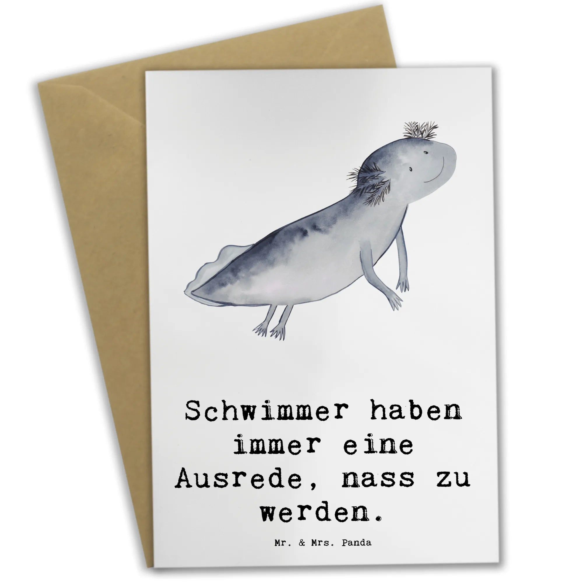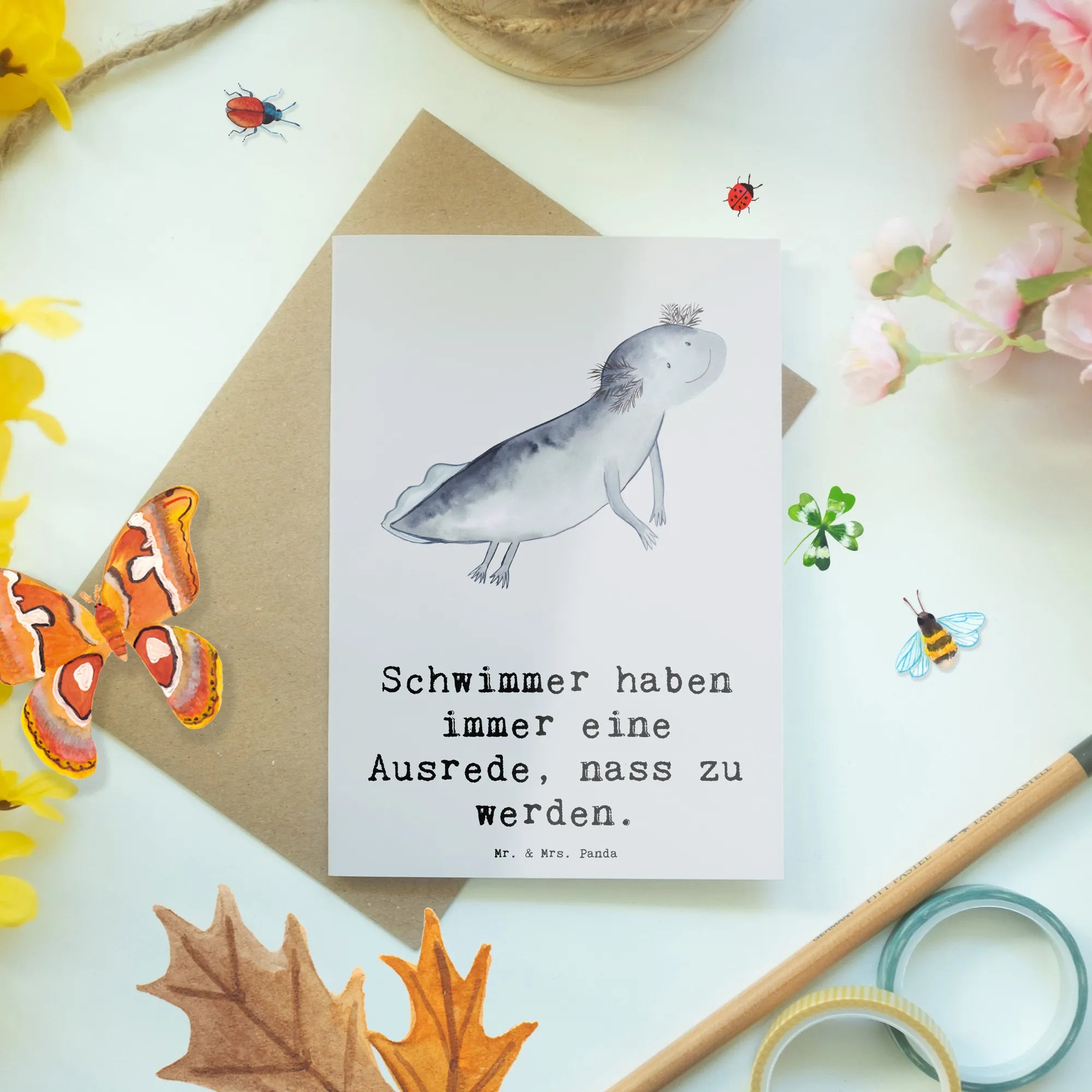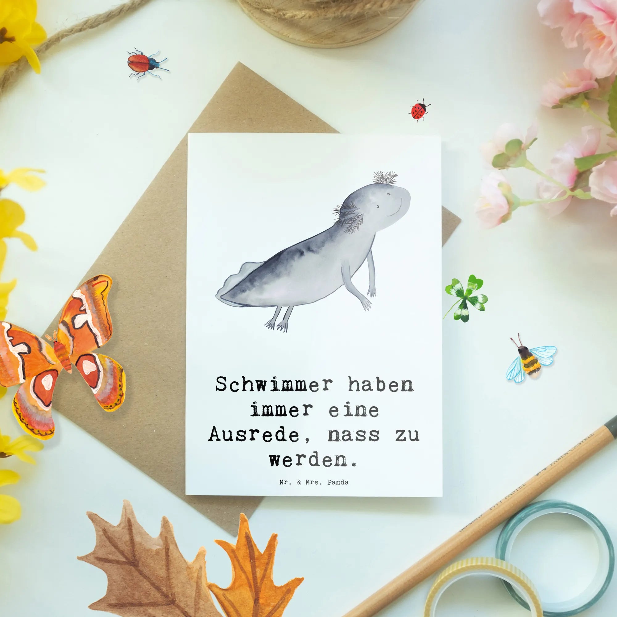 Die Grußkarte mit dem süßen Motiv "Schwimmen" von Mr. & Mrs. Panda ist das perfekte Geschenk für alle Schwimmbegeisterten! Egal, ob du einen Geburtstag, eine Hochzeit oder einfach nur einen besonderen Gruß verschicken möchtest, diese Karte passt immer.