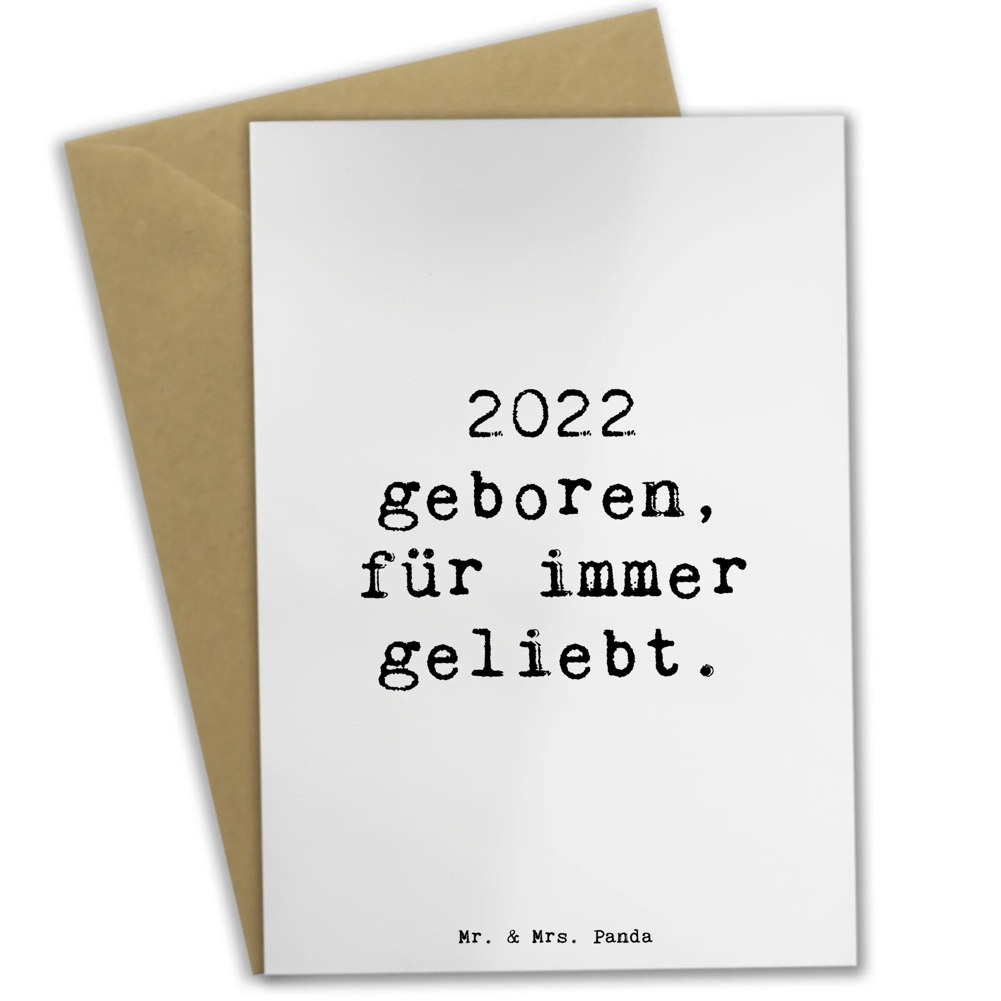 Entdecke die zauberhafte Grußkarte aus der Sammlung Geburtstag Geburtsjahr von Mr. & Mrs. Panda! Diese wunderschöne Karte ist nicht nur ein simples Stück Papier, sondern ein liebevoll gestaltetes Kunstwerk, das an besonderen Anlässen für Freude sorgt. Mit dem auf der Vorderseite eingedruckten Spruch '2022 geboren, für immer geliebt.' und dem verspielten Design bringt sie jedes Herz zum Lächeln.