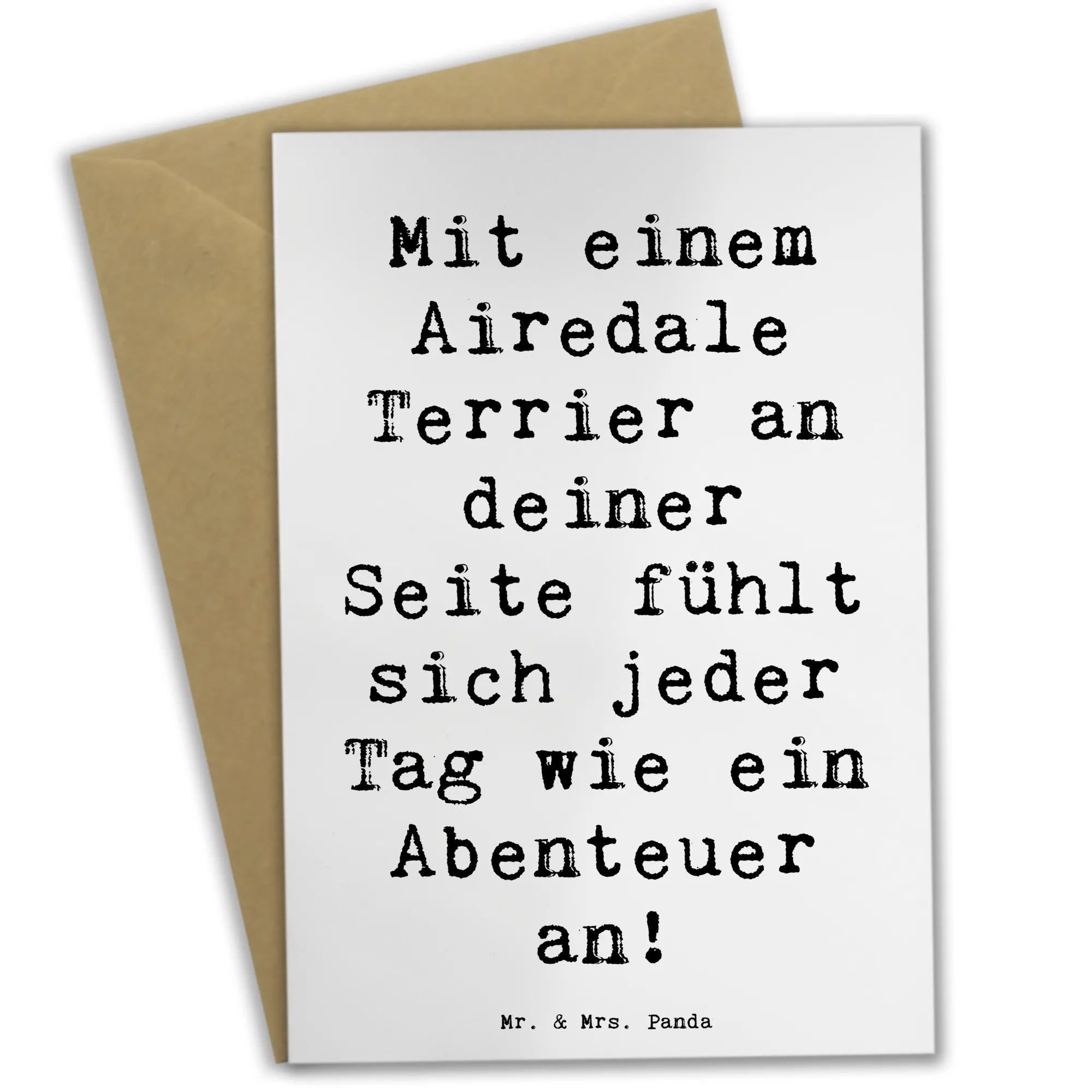 Die Grußkarte mit dem süßen Airedale Terrier Motiv von Mr. & Mrs. Panda ist das perfekte Geschenk für jeden Hundefan! Diese wunderschöne und einzigartige Grußkarte besticht nicht nur durch ihr niedliches Design, sondern auch durch ihren herzlichen Spruch: "Mit einem Airedale Terrier an deiner Seite fühlt sich jeder Tag wie ein Abenteuer an!"