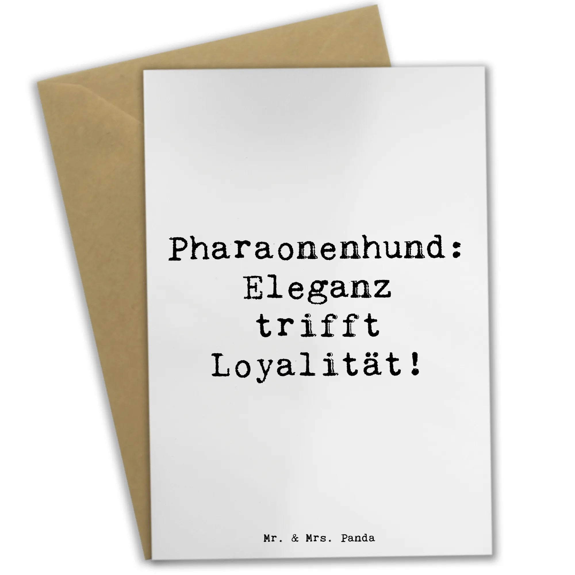 Die Grußkarte mit dem Motiv "Pharaonenhund: Eleganz trifft Loyalität!" aus der liebevollen Hunderassen-Kollektion von Mr. & Mrs. Panda ist das perfekte Geschenk für Hundeliebhaber und Tierfreunde. Sie ist eine wunderschöne und einzigartige Grußkarte, die sich durch ihr edles Design aus hochwertigem 300 Gramm Karton auszeichnet.