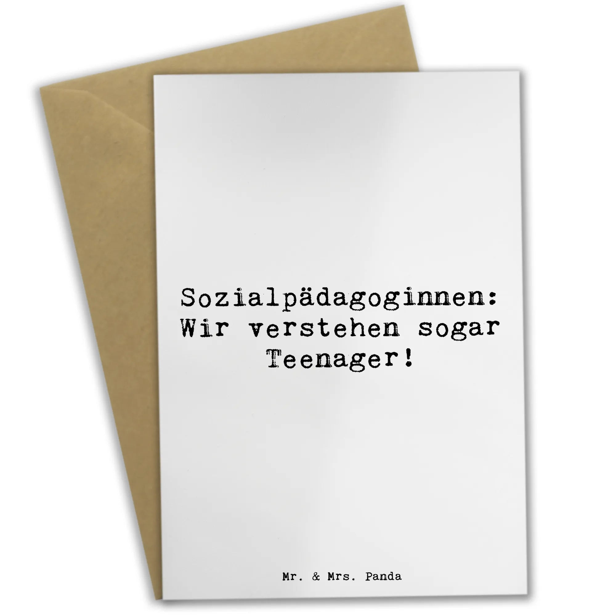 Die Grußkarte "Sozialpädagogin" aus der Kollektion Berufe von Mr. & Mrs. Panda ist das perfekte Geschenk für alle, die im sozialen Bereich arbeiten und sich für das Wohl von anderen einsetzen. Egal ob zum Geburtstag, zum Berufsabschluss oder einfach nur als herzliche Geste – diese Karte wird jeden #Sozialpädagogen# begeistern. Mit dem liebevollen Spruch "Sozialpädagoginnen: Wir verstehen sogar Teenager!" ist sie ein ganz persönliches Zeichen der Wertschätzung.