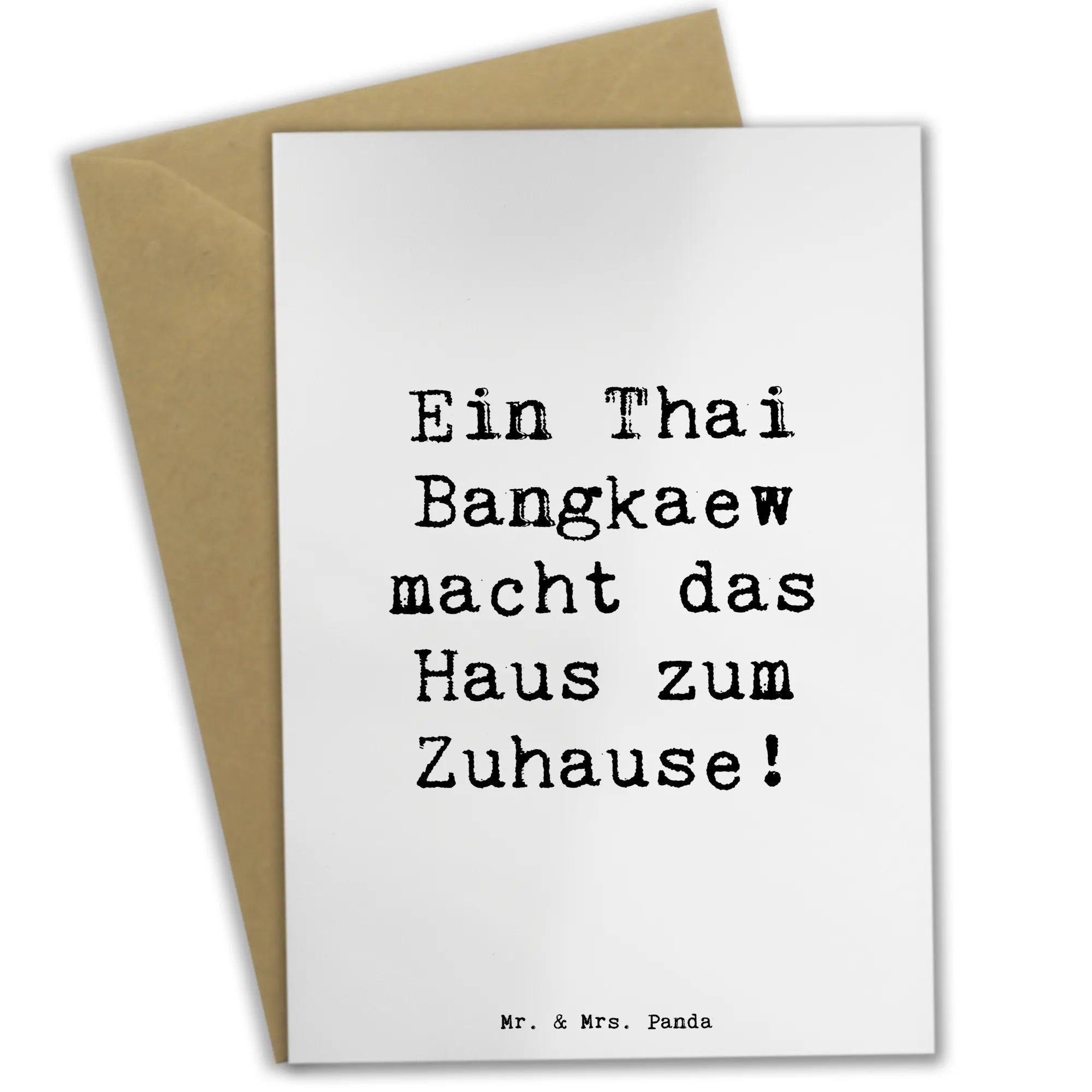 Diese wunderschöne Grußkarte von Mr. & Mrs. Panda ist das perfekte Geschenk für alle Hundefans! Das Motiv des Thai Bangkaew, einer liebevollen Hunderasse, bringt Wärme und Freude in jeden Anlass. Mit dem Spruch "Ein Thai Bangkaew macht das Haus zum Zuhause!" wird jeder, der diese Karte erhält, sofort in das Herz des Hundes und seiner loyalen Art gezogen.