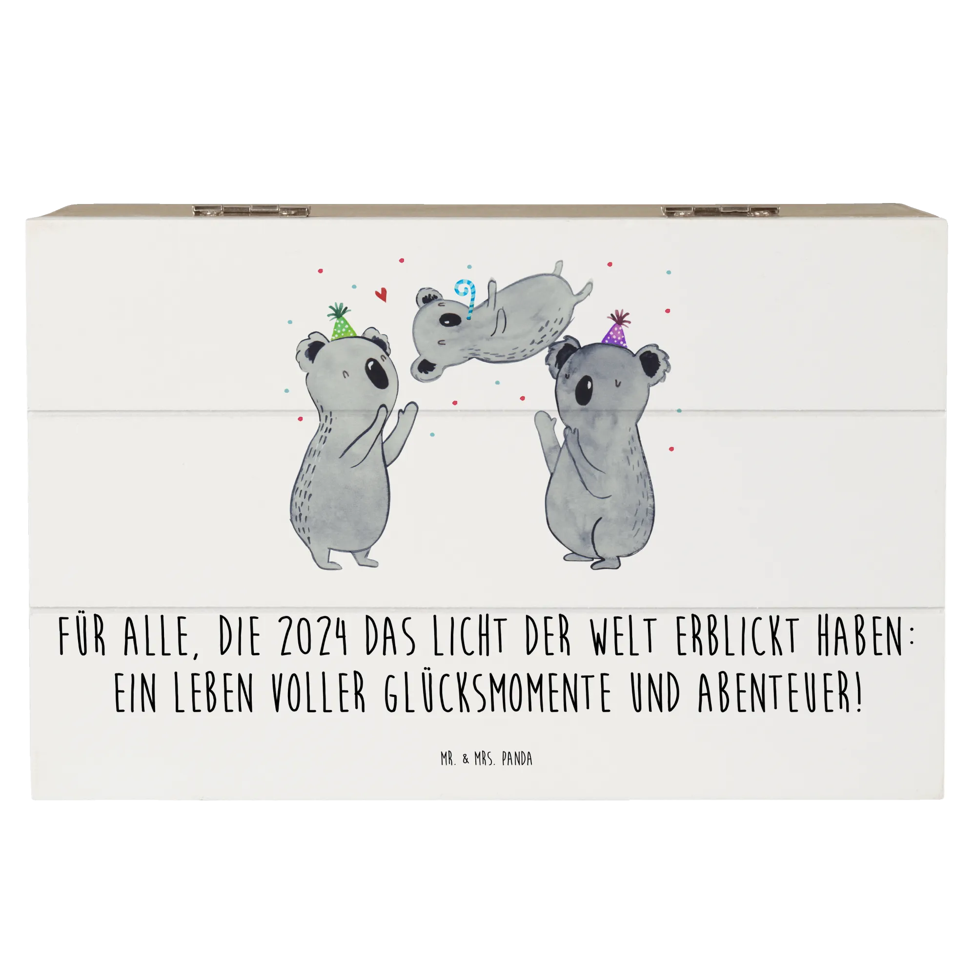 Die wunderschöne Holzkiste von Mr. & Mrs. Panda ist das perfekte Geschenk für alle, die in dem wundervollen Jahr 2024 das Licht der Welt erblicken! Mit ihrem charmanten Motiv "Für alle, die 2024 das Licht der Welt erblickt haben: Ein Leben voller Glücksmomente und Abenteuer!" ist sie ideal als Erinnerungskiste geeignet.