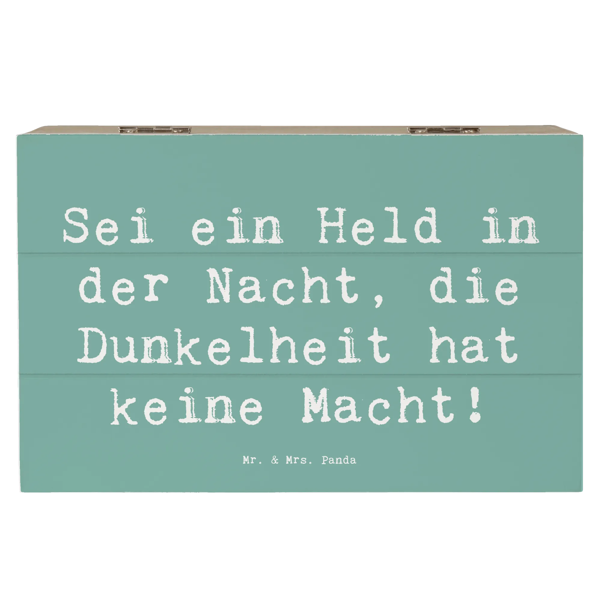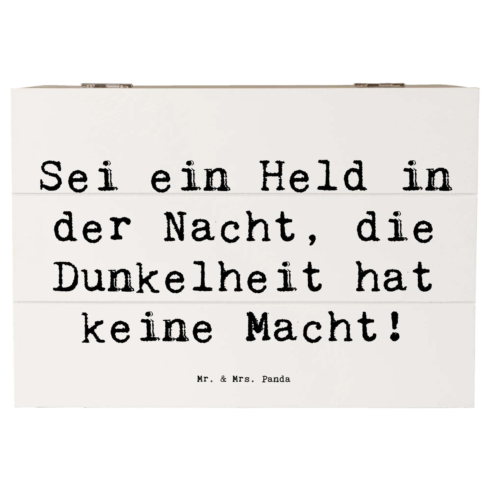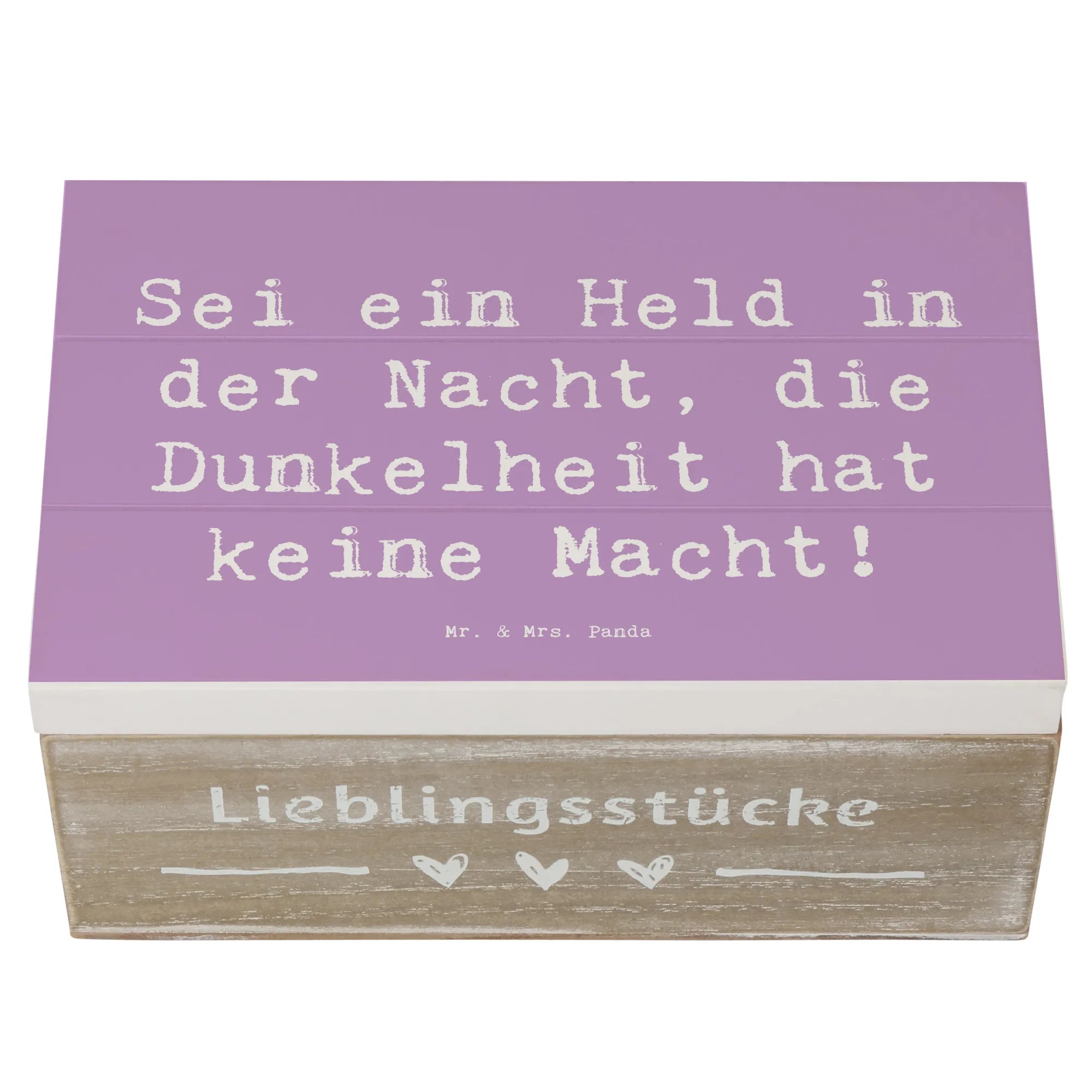 Entdecke die wunderschöne Holzkiste von Mr. & Mrs. Panda mit dem motivierenden Spruch "Sei ein Held in der Nacht, die Dunkelheit hat keine Macht!". Diese Erinnerungskiste ist der perfekte Ort, um wertvolle Schätze, Erinnerungen oder auch kleine Geschenke aufzubewahren.