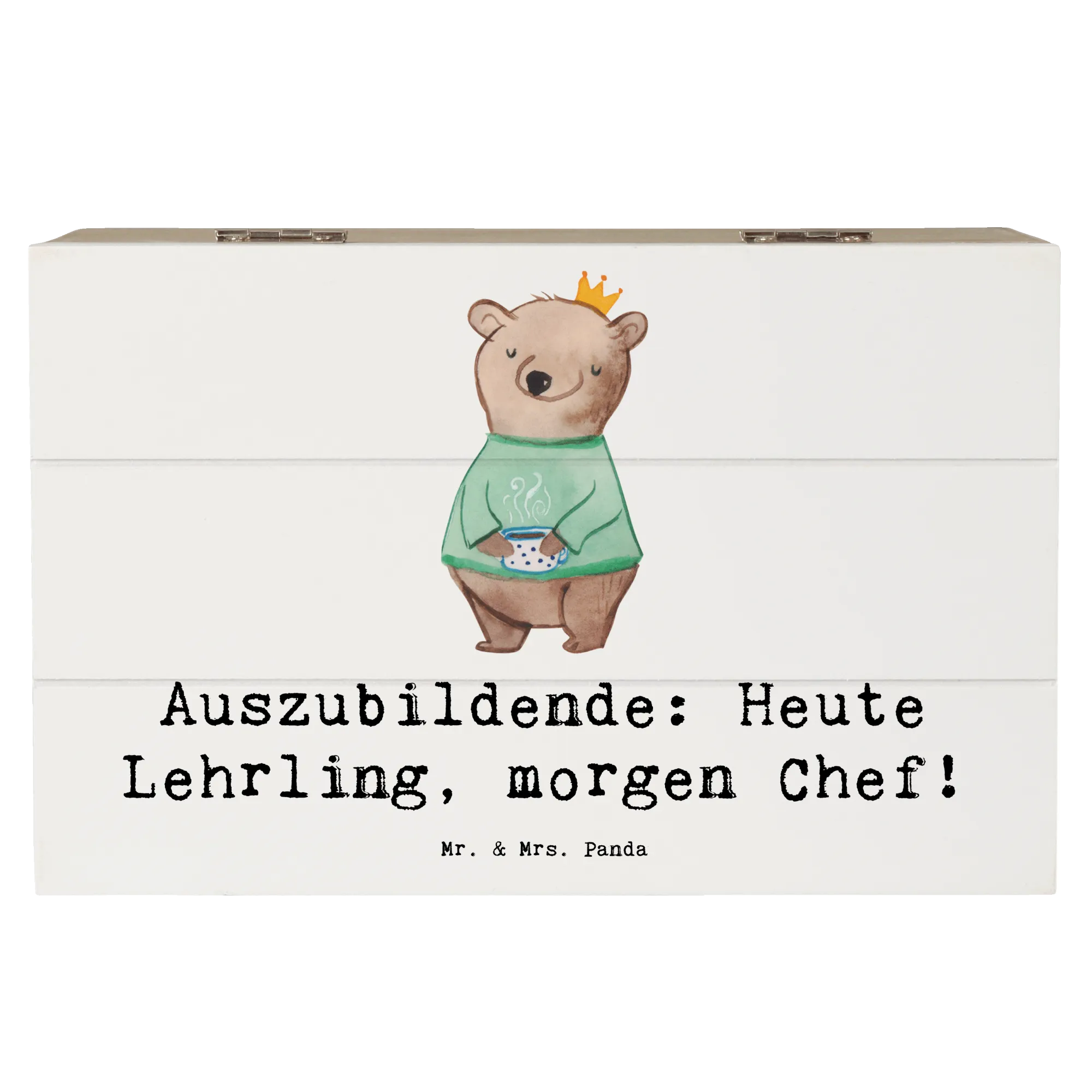 Die wunderschöne Holzkiste "Auszubildende: Heute Lehrling, morgen Chef!" von Mr. & Mrs. Panda ist das perfekte Geschenk für alle, die gerade ihre Ausbildung beginnen oder diese gerade abgeschlossen haben. Sie verkörpert nicht nur eine liebevolle Aufbewahrungslösung, sondern auch eine tolle Möglichkeit, wertvolle Erinnerungen festzuhalten.