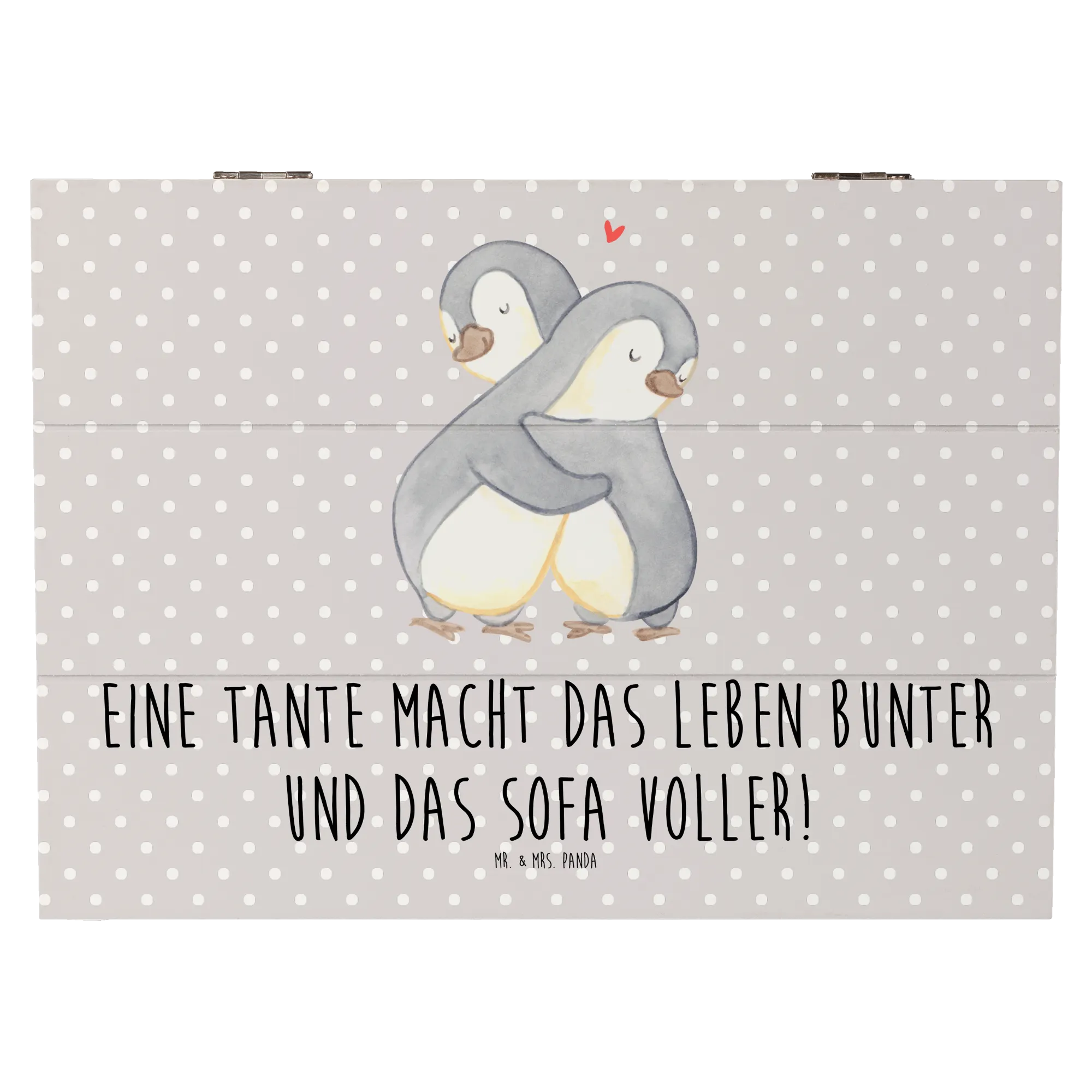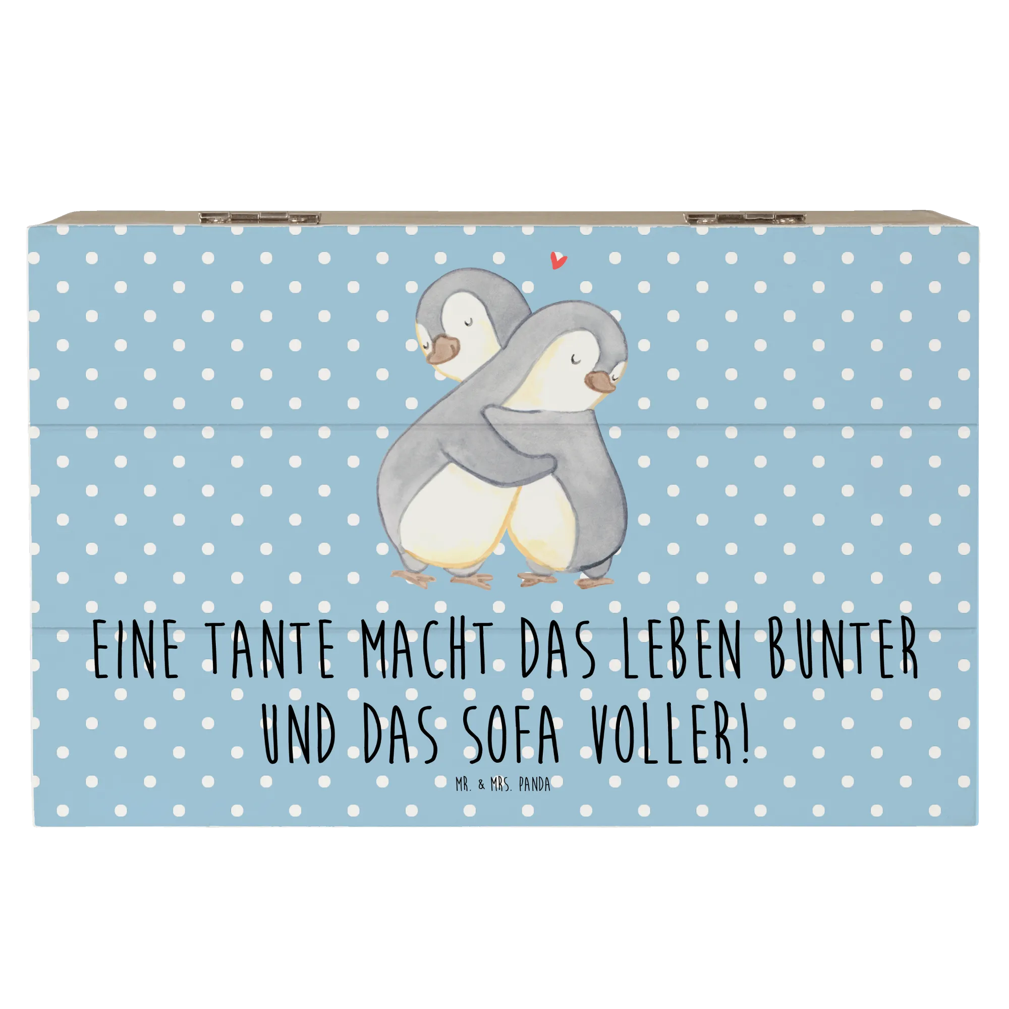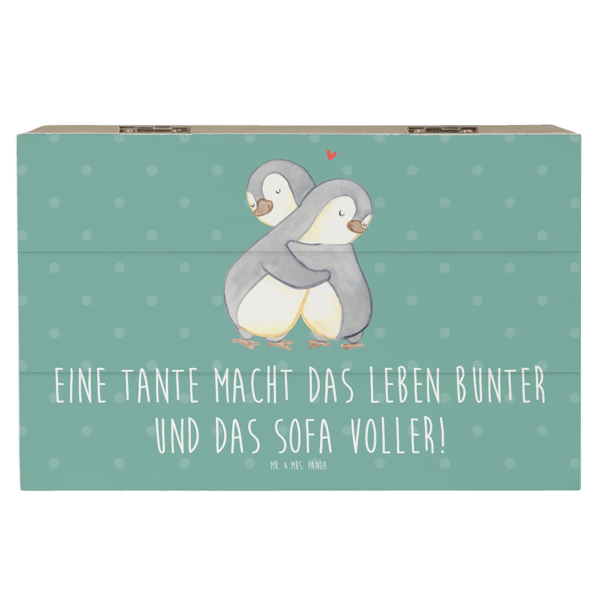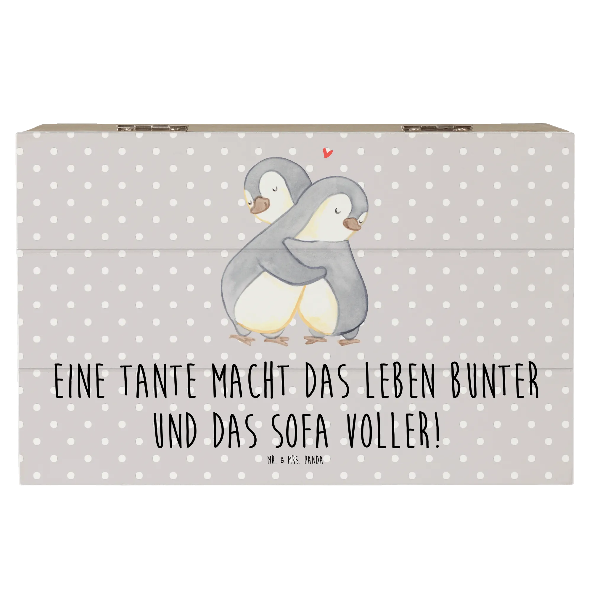Die wunderschöne Holzkiste mit dem Motiv "Tante" von Mr. & Mrs. Panda ist das ideale Geschenk für alle, die eine besondere Beziehung zu ihrer Tante haben. Tanten sind oft die Vertrauten, die uns in Kindheitstagen begleiten, die uns Geheimnisse anvertrauen und die uns auf unserem Weg unterstützen.