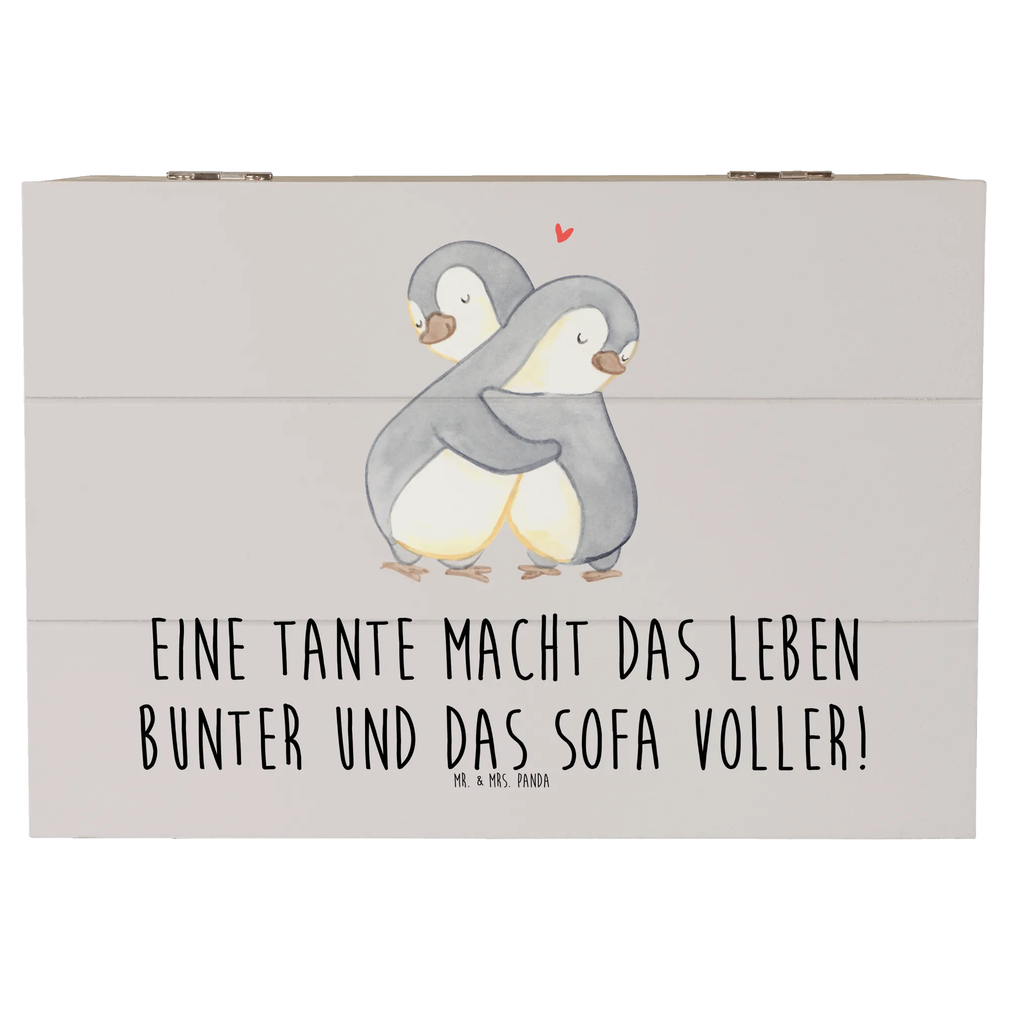 Die wunderschöne Holzkiste von Mr. & Mrs. Panda, bedruckt mit dem liebevollen Motiv "Tante", ist das perfekte Geschenk für alle, die eine besondere Beziehung zu ihrer Tante haben. Diese robuste und stilvolle Erinnerungskiste ist nicht nur ein toller Aufbewahrungsort für all deine Schätze und Erinnerungen, sondern auch eine charmante Dekokiste, die jeden Raum aufwertet. Die Beziehung zu Tanten ist oft einzigartig – sie sind Vertraute, Spielgefährtinnen und unterstützen uns in vielen Lebenslagen. Mit ihrem Slogan "Eine Tante macht das Leben bunter und das Sofa voller!" bringt die Kiste einen Hauch von Freude und Wärme in dein Zuhause.
