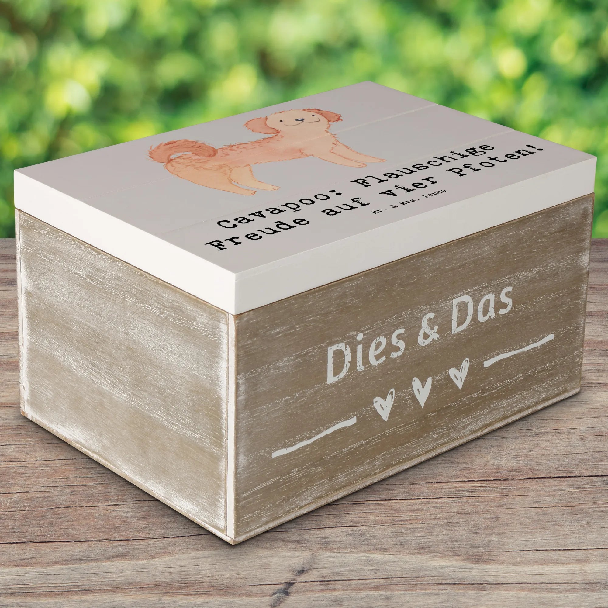 Das niedliche Motiv "Cavapoo: Flauschige Freude auf vier Pfoten!" ist ideal für alle, die das Besondere lieben. Die Hunderasse Kollektion von Mr. & Mrs. Panda umfasst liebevoll handgezeichnete Motive und Sprüche, die das Herz eines jeden Hundefans höher schlagen lassen. Diese Holzkiste eignet sich perfekt, um kleinen Hunden und deren Erinnerungen einen besonderen Platz zu bieten.