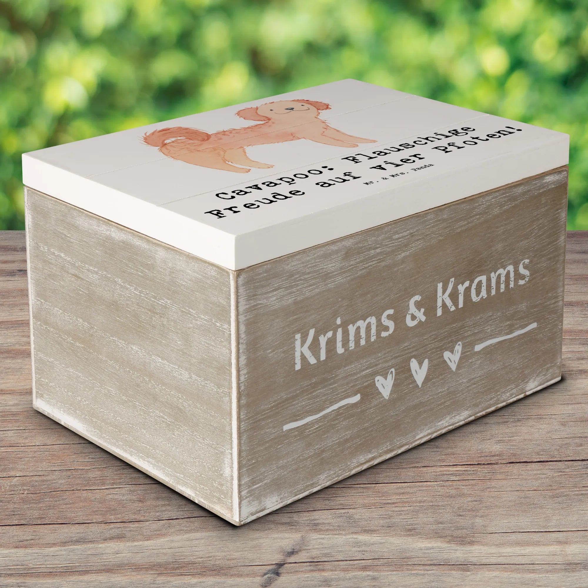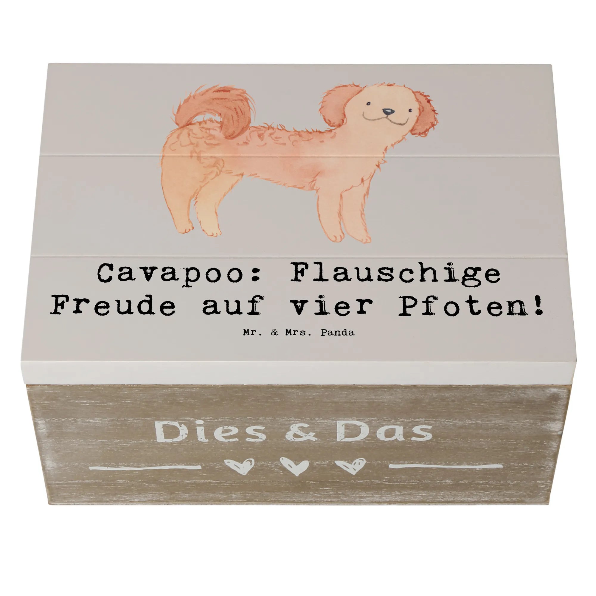 Die robuste Holzfaser sorgt dafür, dass die Kiste besonders stabil und langlebig ist, während das handgezeichnete Motiv des Cavapoos deine Augen zum Leuchten bringt. Mit dem süßen Slogan „Cavapoo: Flauschige Freude auf vier Pfoten!“ ist sie das ideale Geschenk für Hundefans und alle, die das Besondere schätzen.