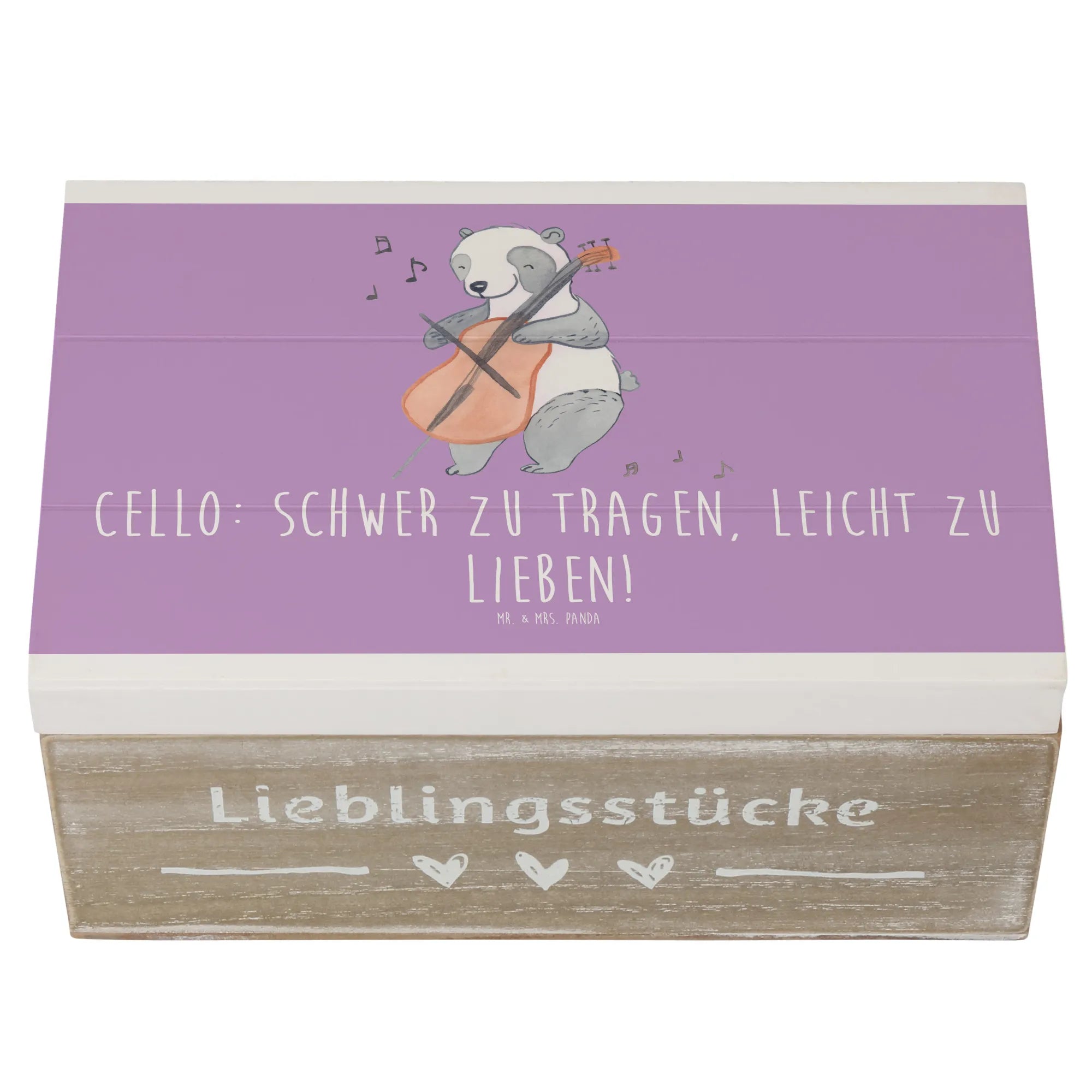 Wer hätte gedacht, dass eine Kiste so schön sein kann? Und das Cello-Motiv mit dem charmanten Spruch "Cello: Schwer zu tragen, leicht zu lieben!" bringt sicher ein Lächeln auf die Gesichter der Beschenkten.