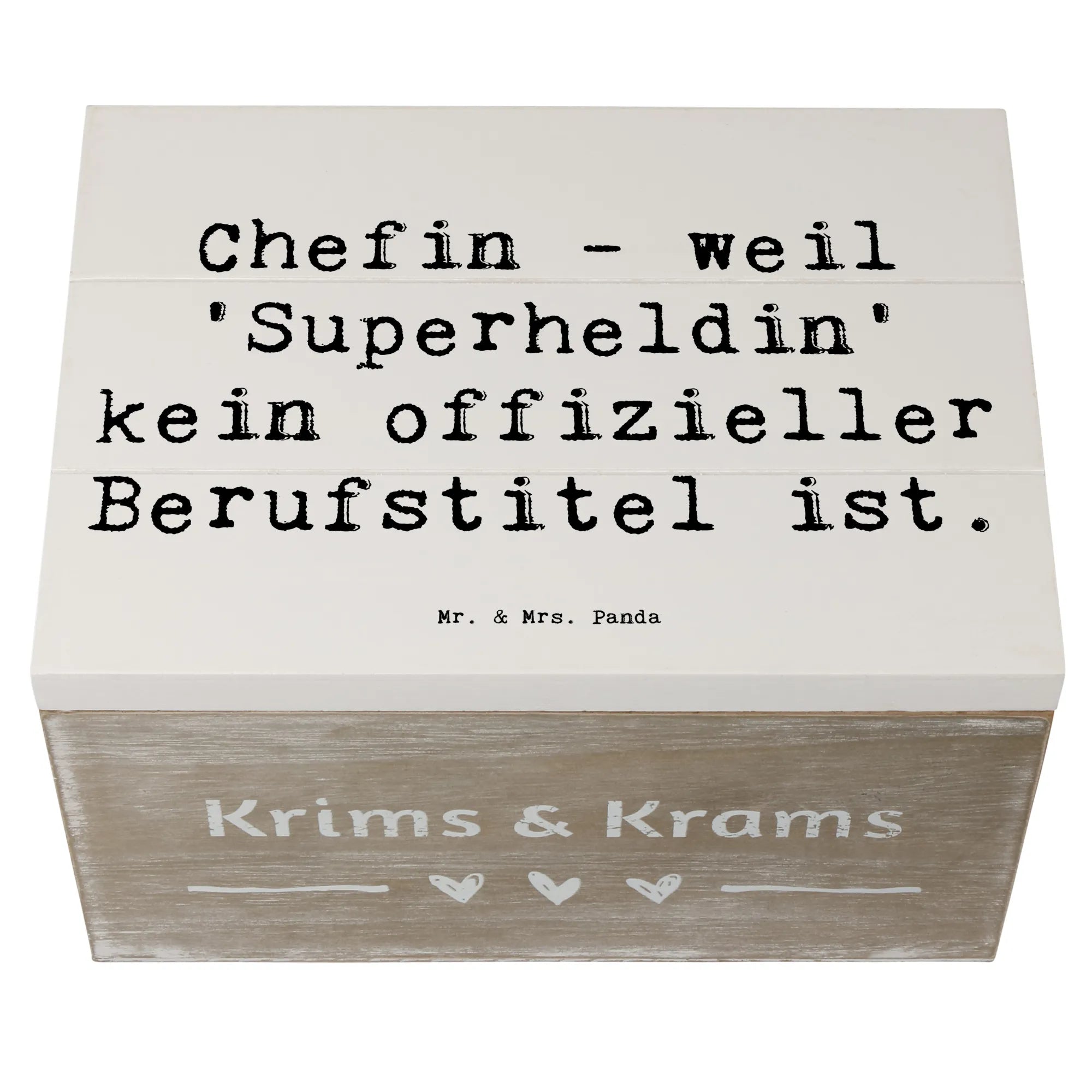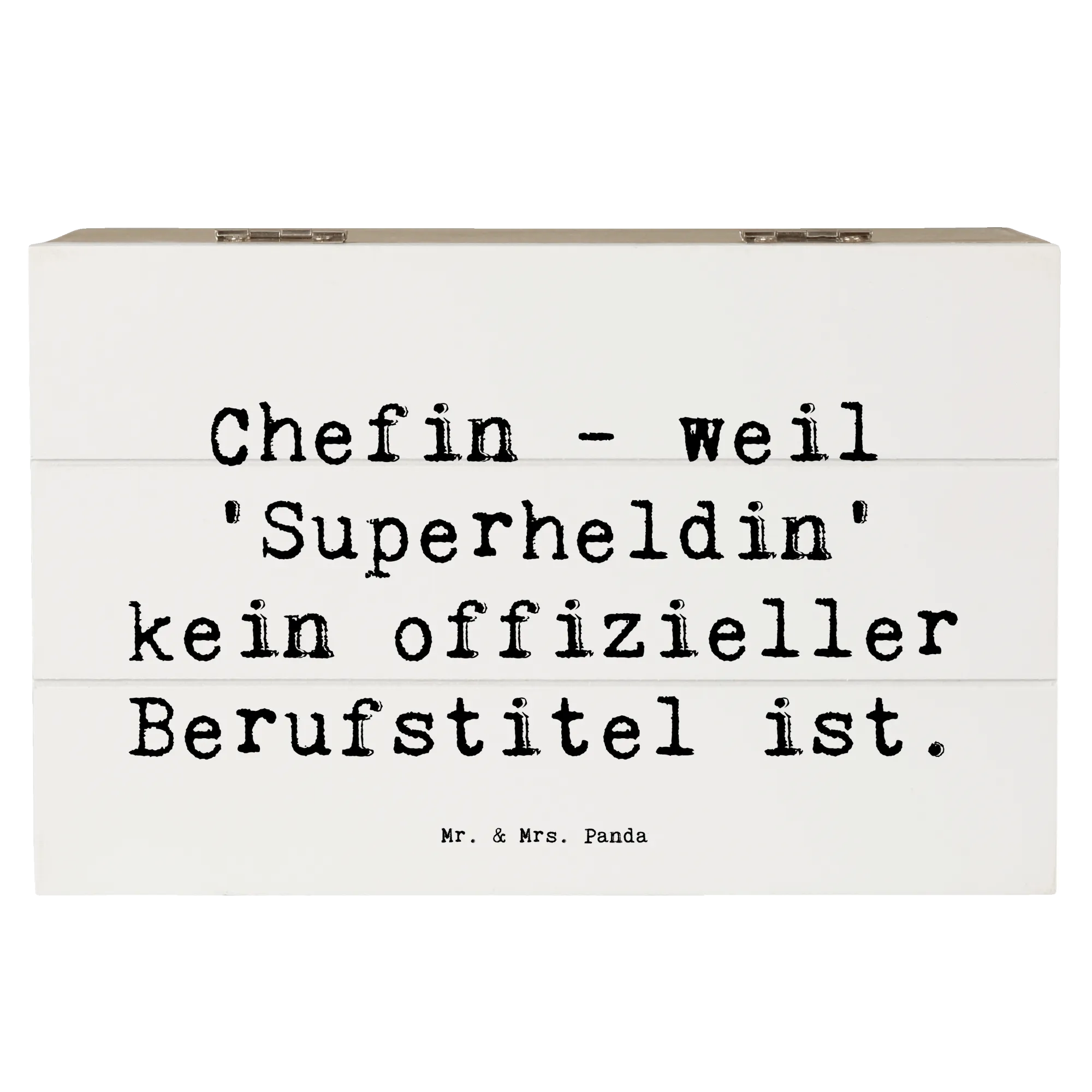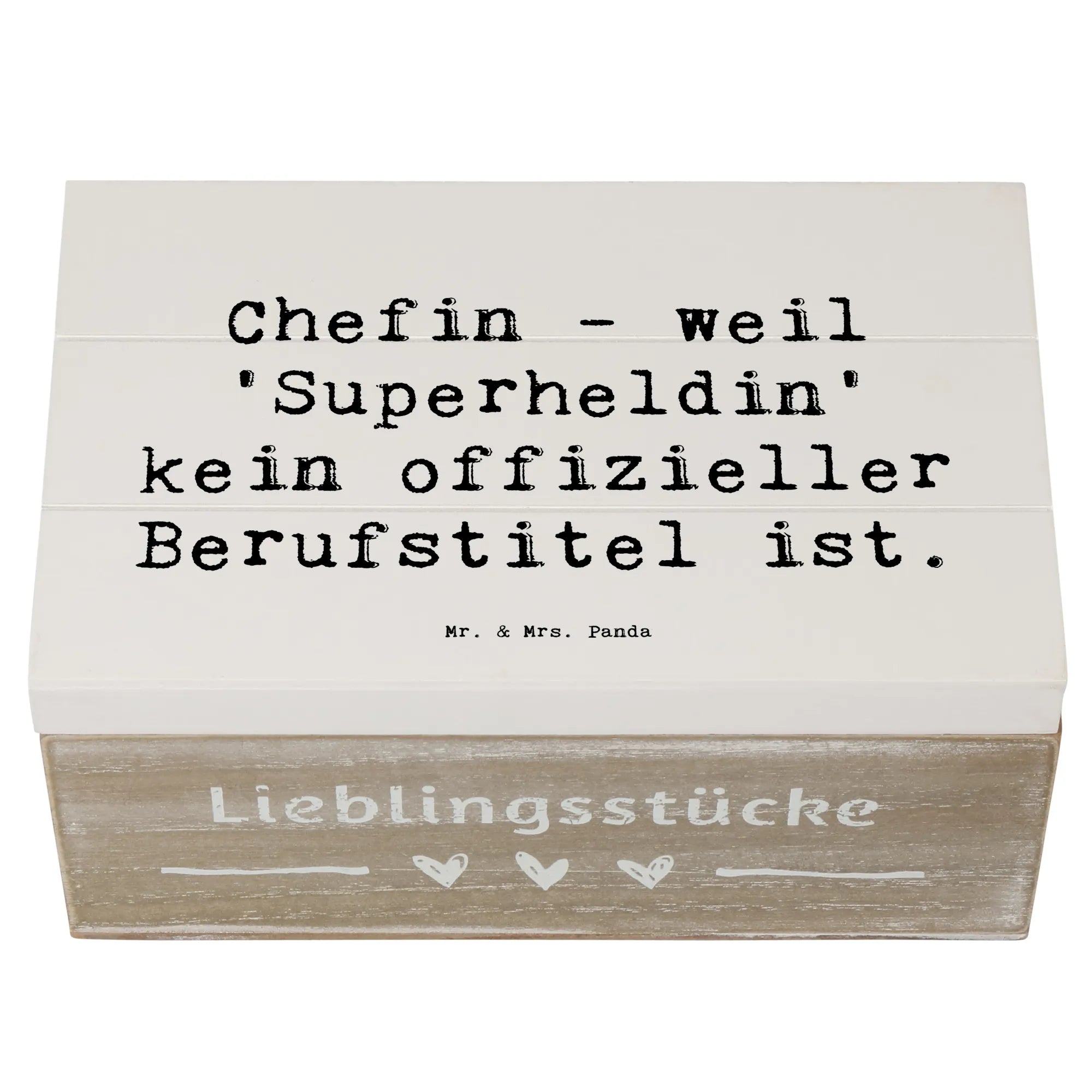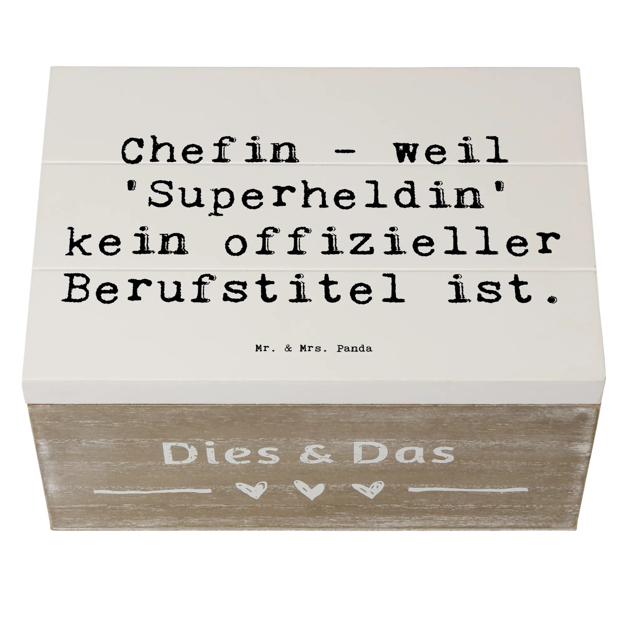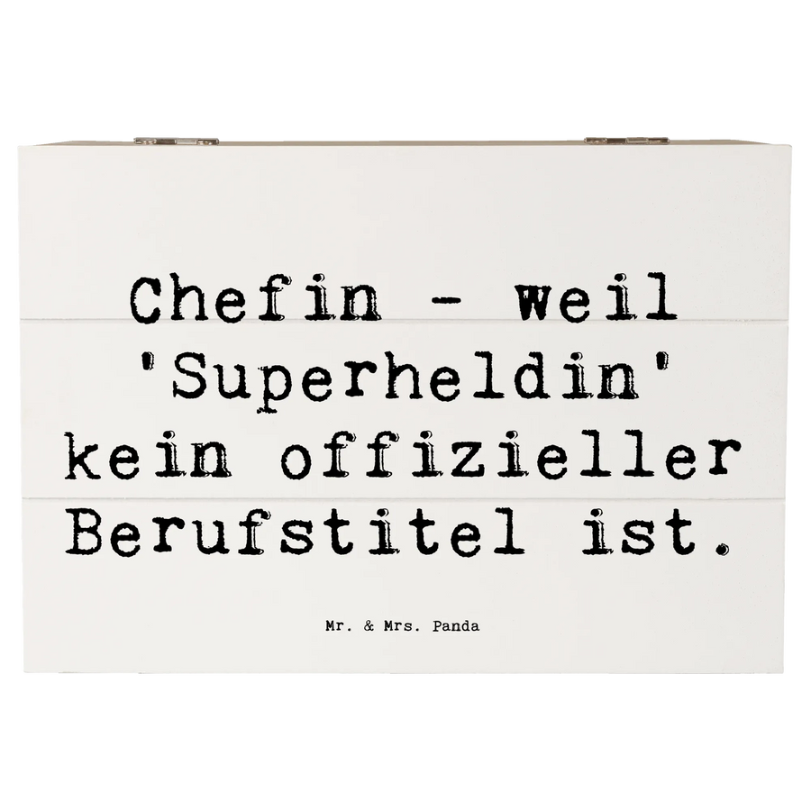 Die wunderschöne Holzkiste "Chefin - weil 'Superheldin' kein offizieller Berufstitel ist" von Mr. & Mrs. Panda ist das perfekte Geschenk für all die starken Frauen in unserem Leben. Sie ist nicht nur ein praktisches Aufbewahrungsort für all die kostbaren Erinnerungen, sondern auch ein schöner Blickfang in jeder Wohnung.