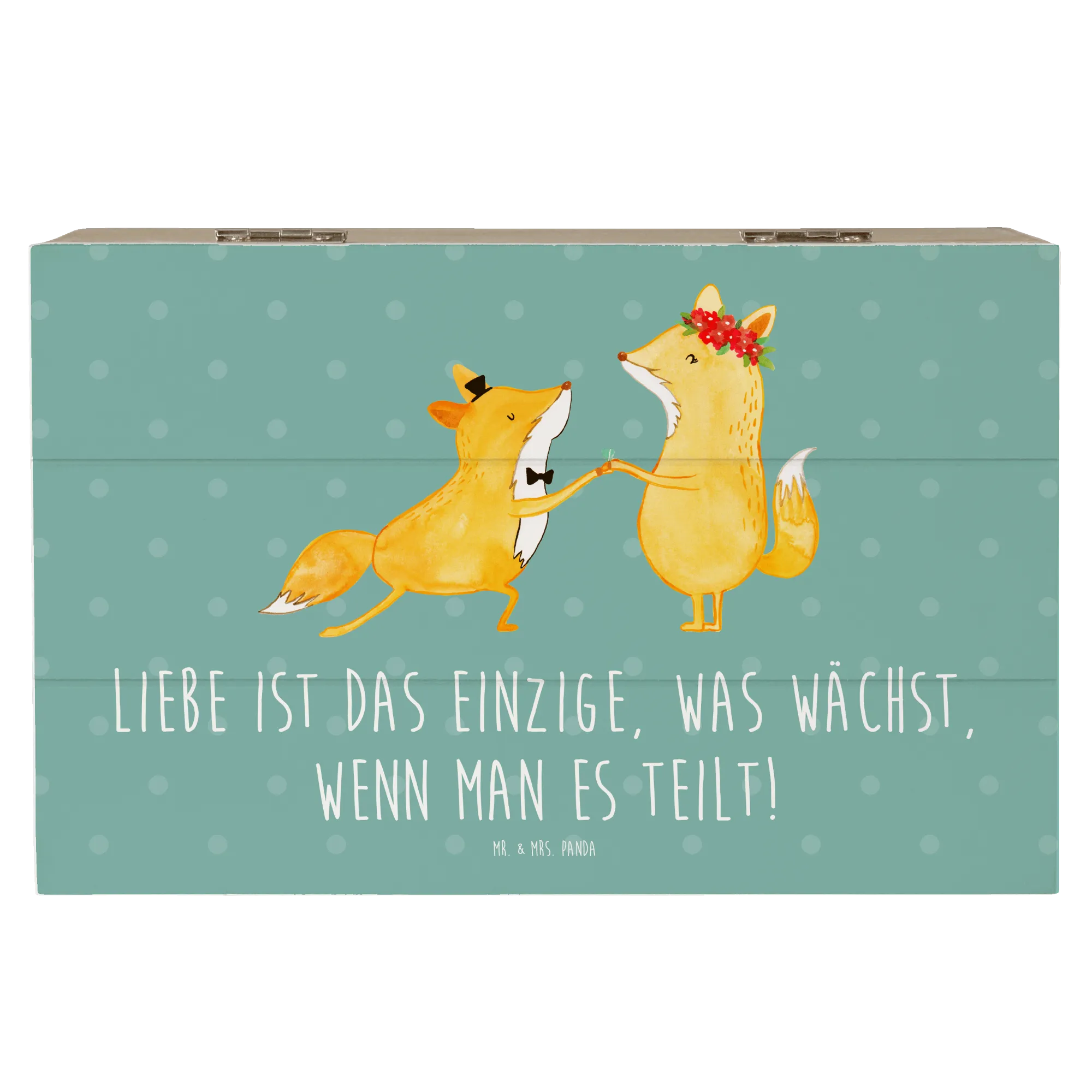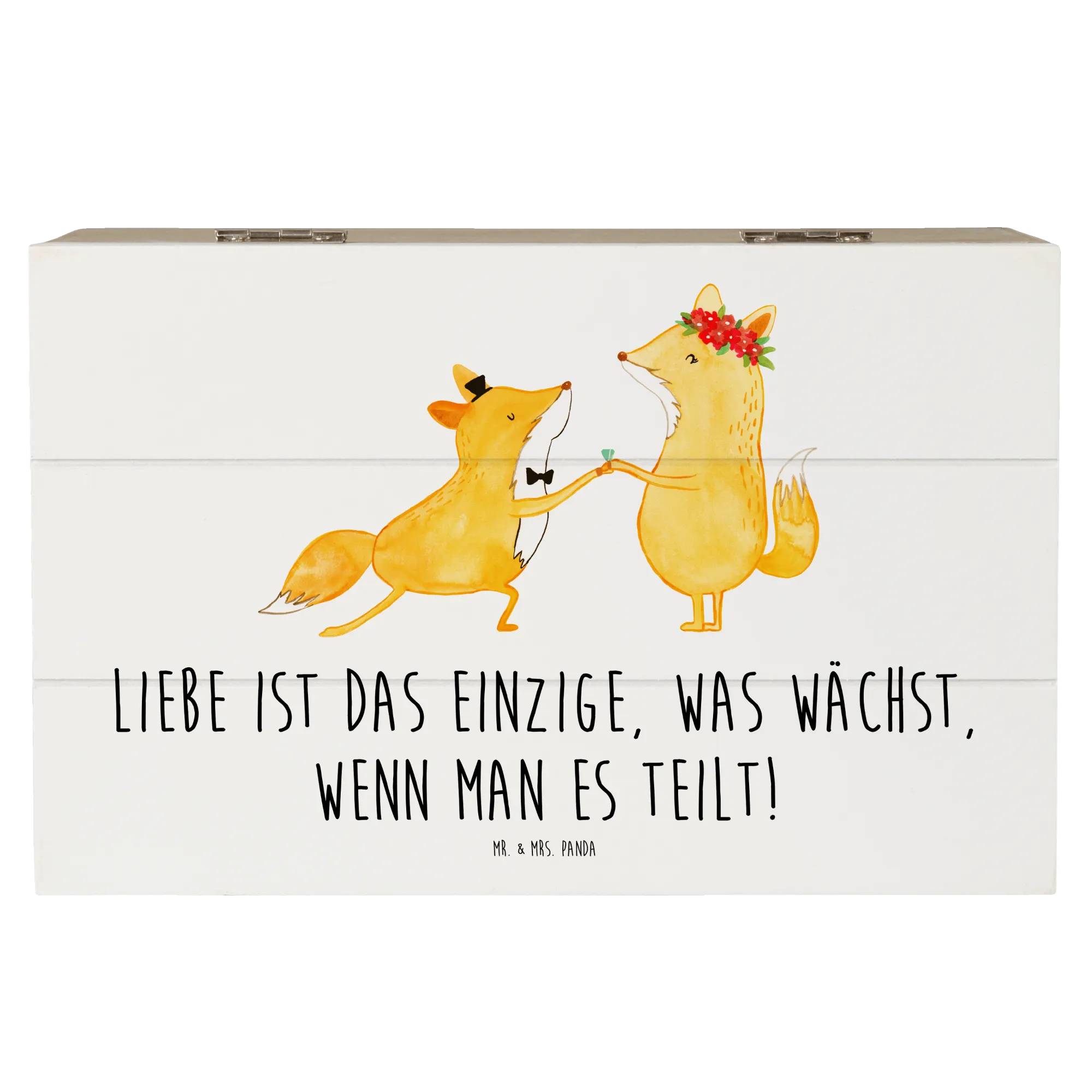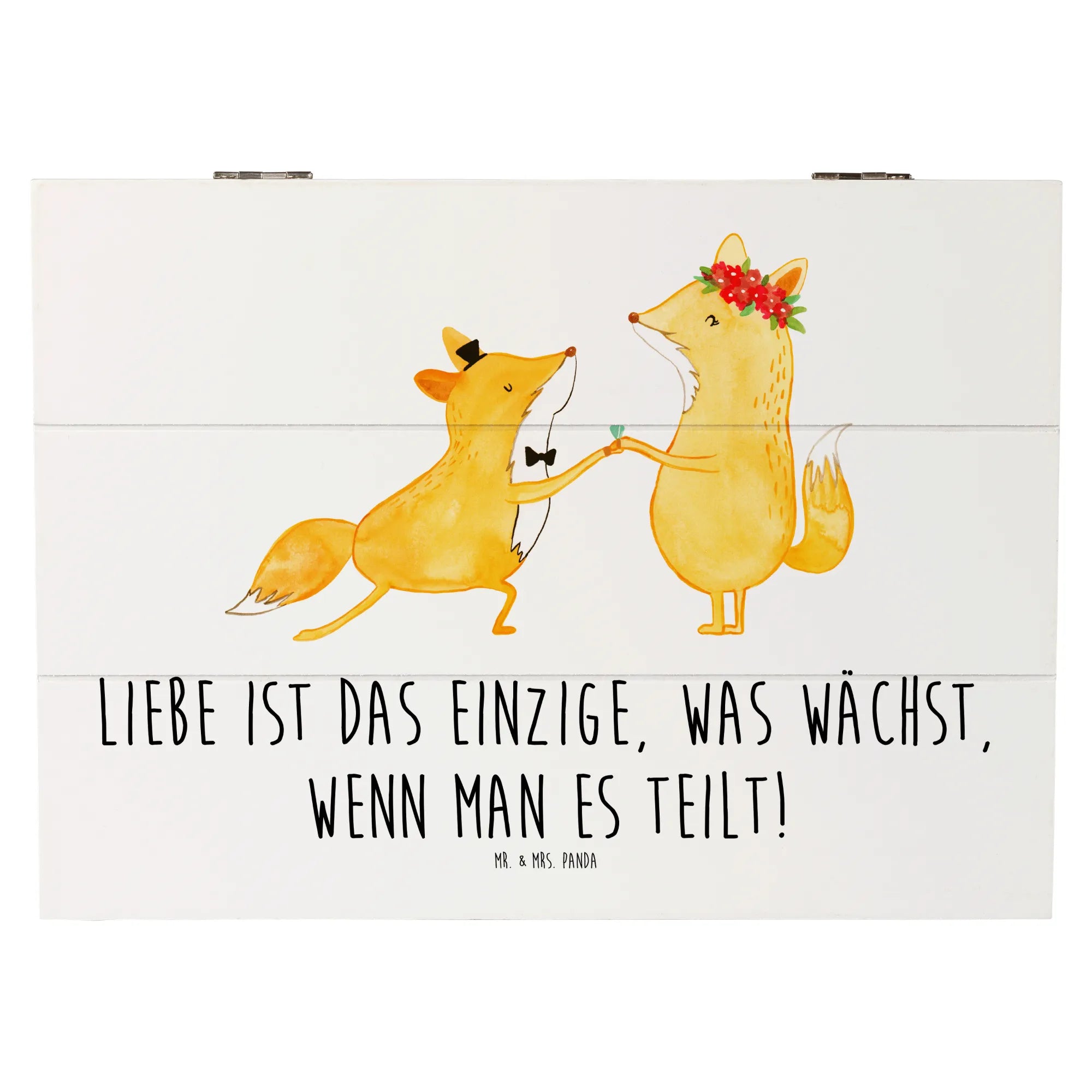 Diese Erinnerungskiste ist vielseitig einsetzbar und bietet den idealen Aufbewahrungsort für Hochzeitsgeschenke, Fotos oder andere wertvolle Schätze. Egal ob zur Hochzeit, zum Jahrestag oder einfach als liebevolle Geste – dieses Stück von Mr. & Mrs. Panda ist perfekt, um schöne Momente festzuhalten.