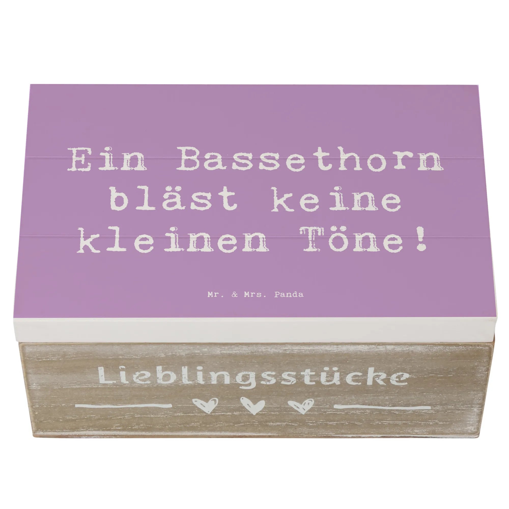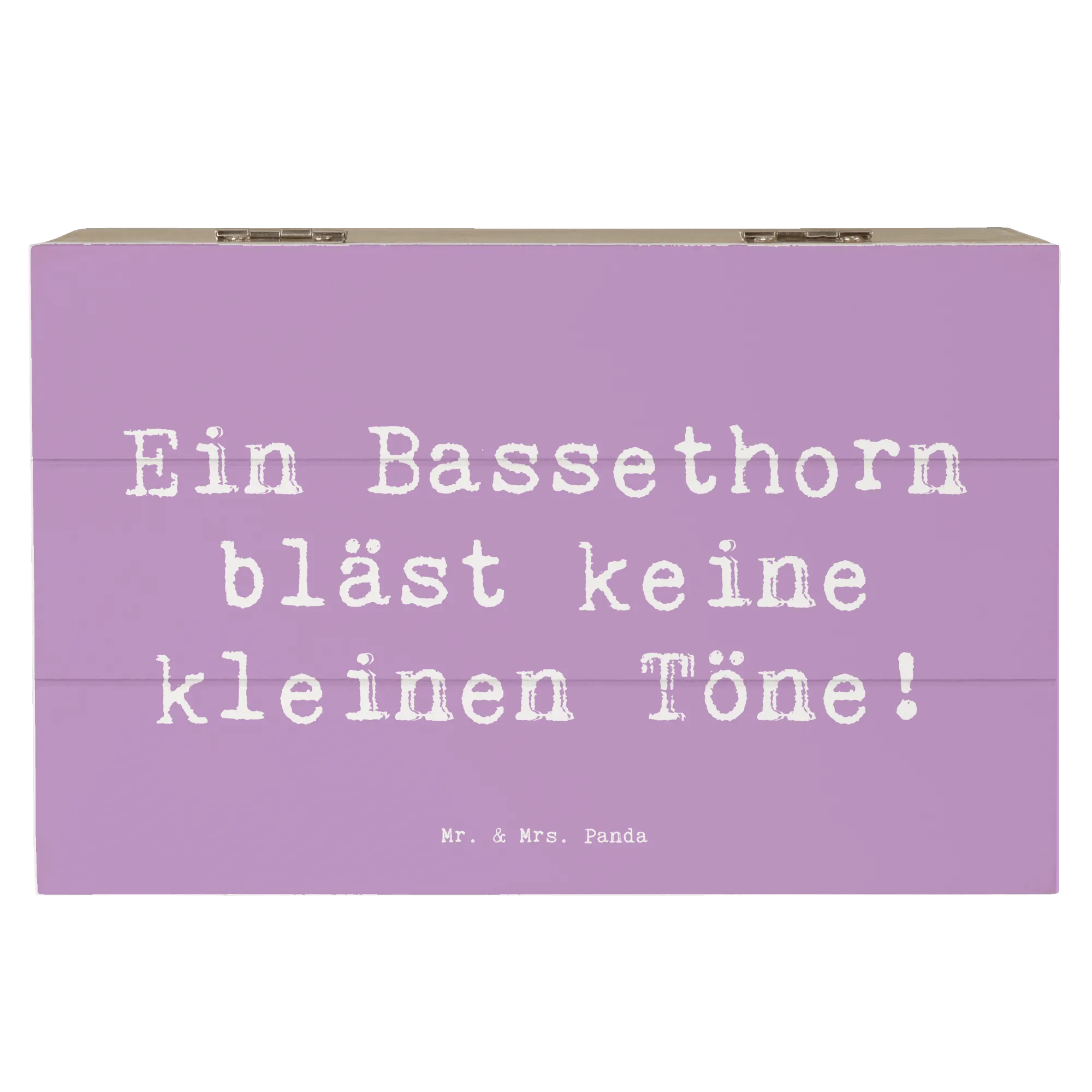 Egal, ob für Musiker oder Musikliebhaber, mit dem Spruch "Ein Bassethorn bläst keine kleinen Töne!" versprühst du Freude und Leidenschaft für Musik. Gefertigt aus robuster Holzfaser ist die Kiste stabil und umweltfreundlich.