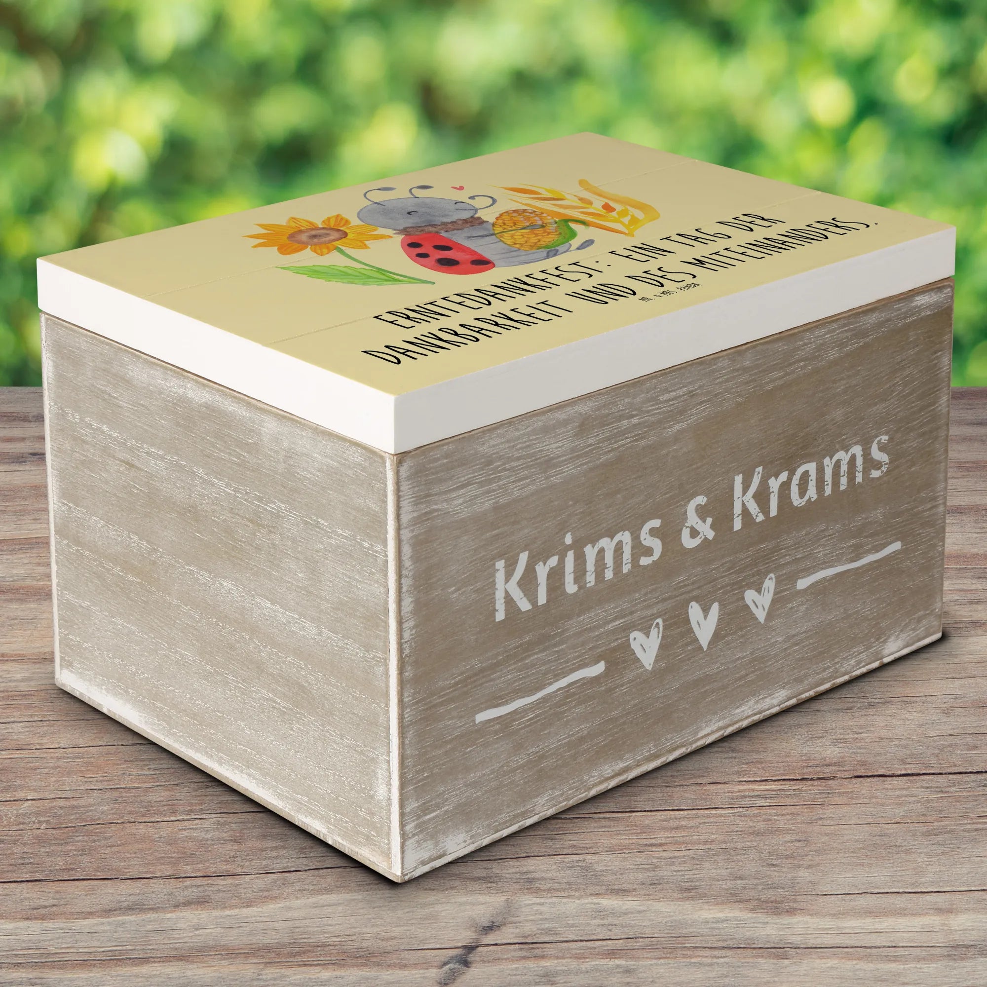 Die Holzkiste ist ein perfektes Beispiel dafür, dass die kleinen Dinge oft die größte Freude bringen. Verschenke Dankbarkeit, mit dieser zauberhaften Erinnerungskiste zum Erntedankfest und Feiertagen!