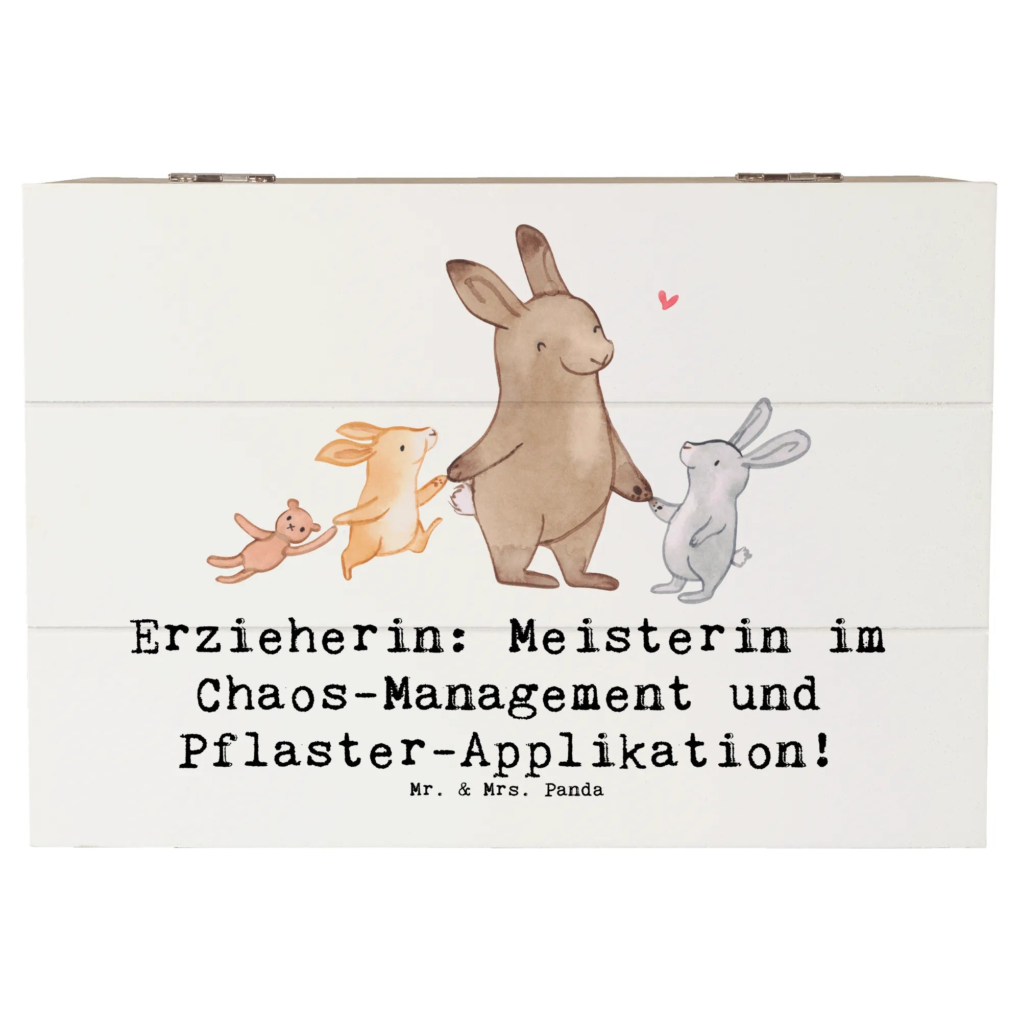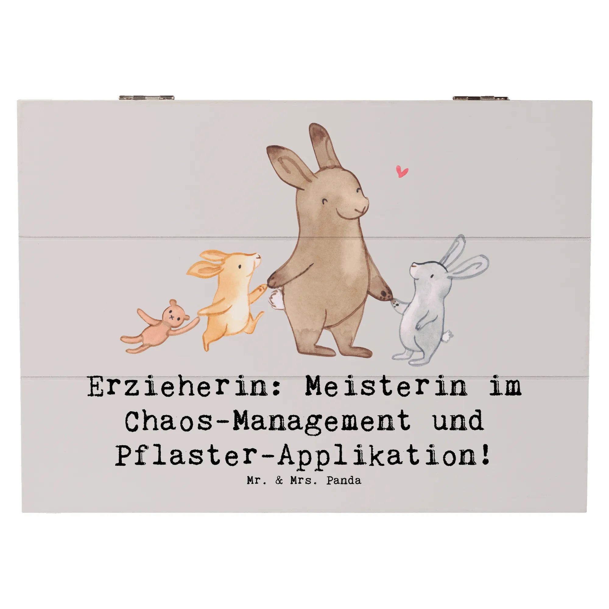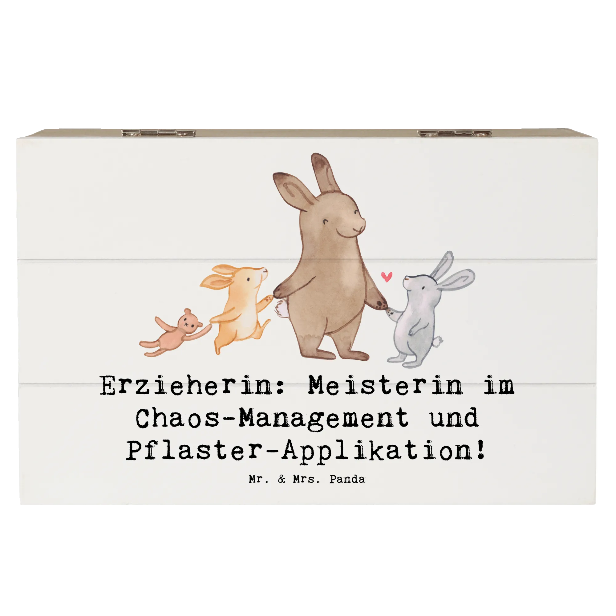 Die wunderschöne Holzkiste für Erzieherinnen von Mr. & Mrs. Panda ist das perfekte Geschenk für all jene, die mit Freude und Liebe in der Kita arbeiten. Diese stylische Kiste, bedruckt mit dem liebevollen Slogan "Erzieherin: Meisterin im Chaos-Management und Pflaster-Applikation!", bietet nicht nur einen tollen Blickfang, sondern ist auch äußerst praktisch.