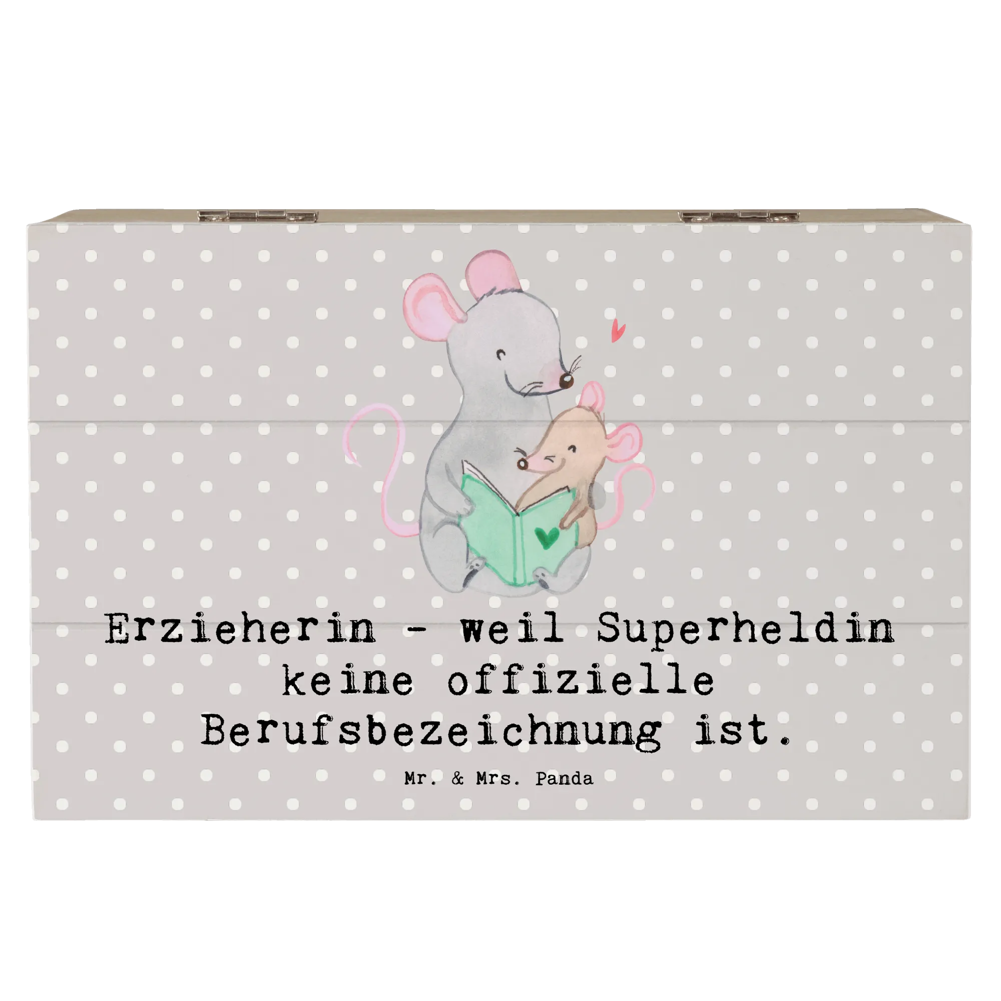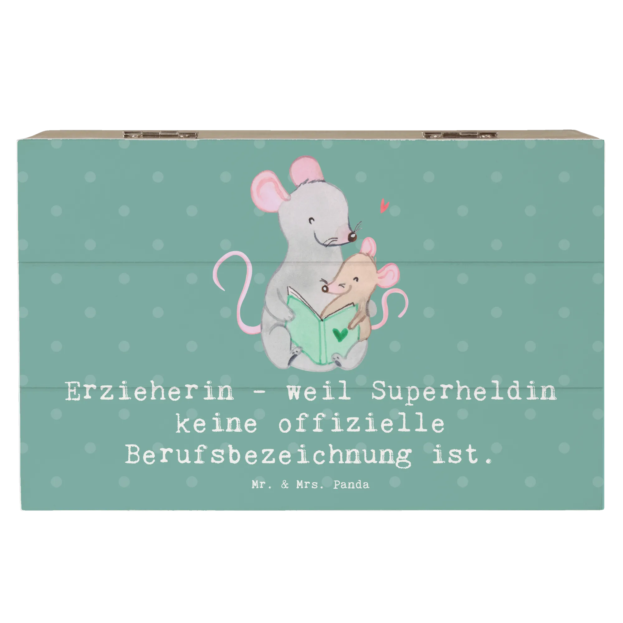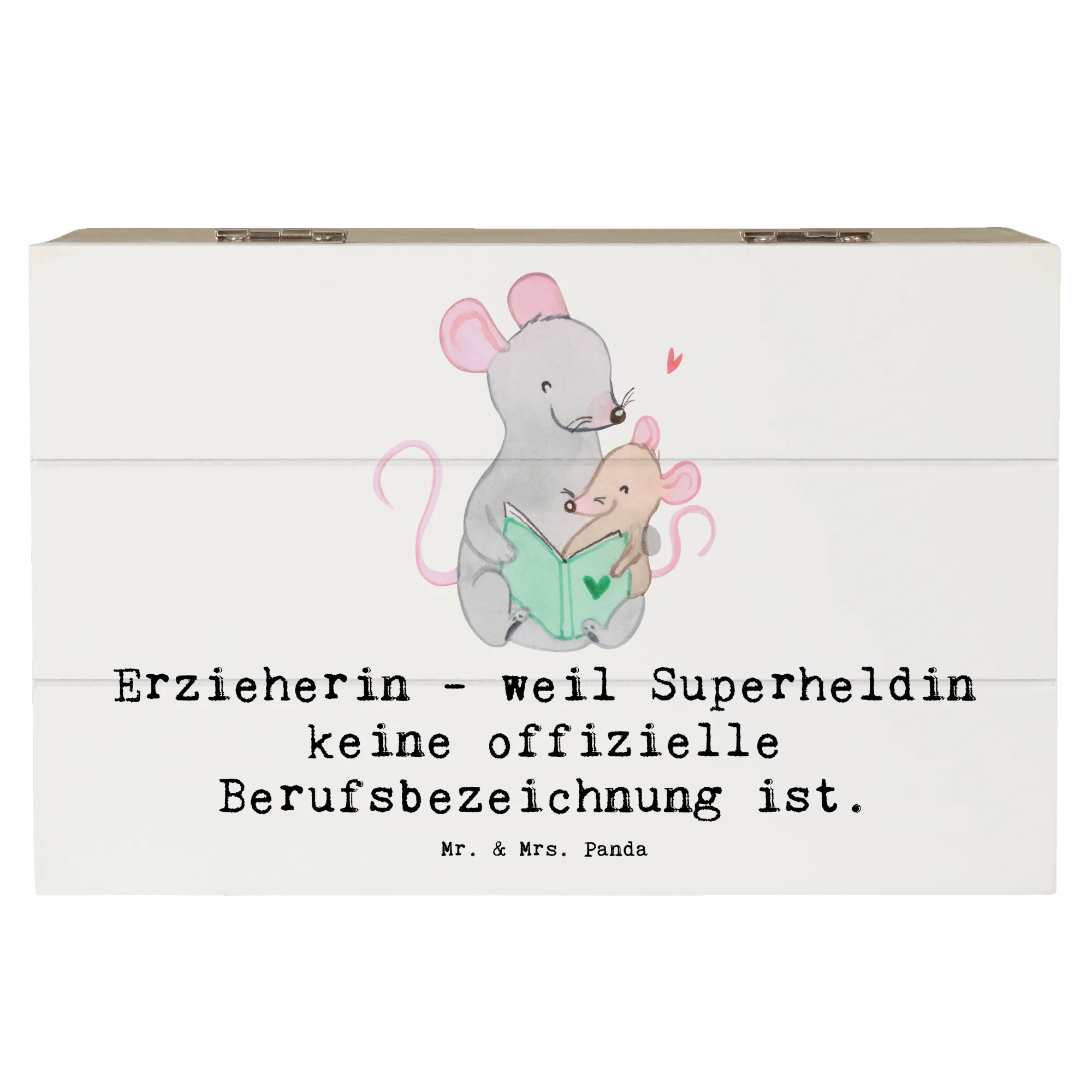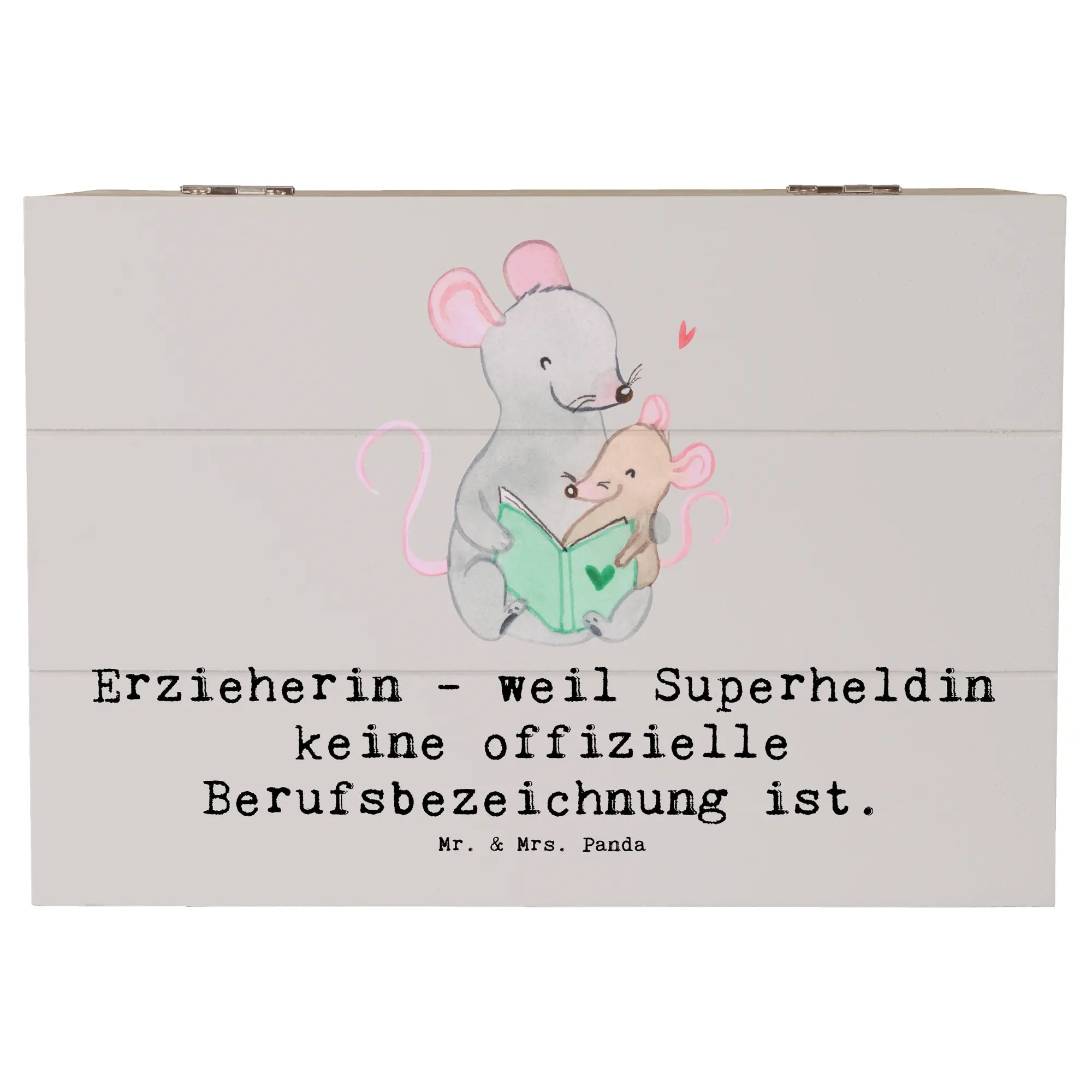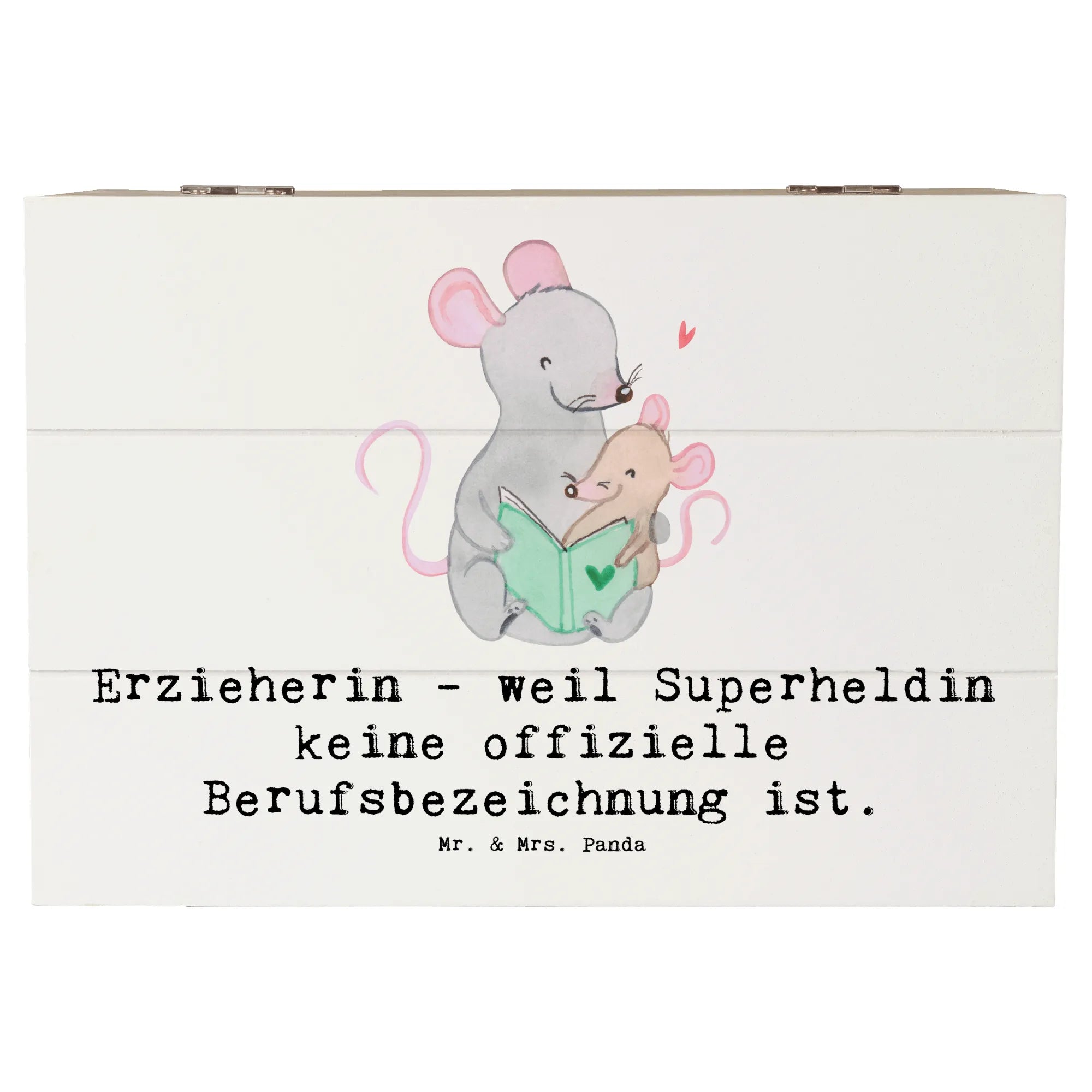 Die Holzkiste "Erzieherin - weil Superheldin keine offizielle Berufsbezeichnung ist" von Mr. & Mrs. Panda ist das perfekte Geschenk für alle kreativen Erzieherinnen. Diese zauberhafte Kiste ist mehr als nur ein Aufbewahrungsort – sie beherbergt die schönsten Erinnerungen und Schätze, die Du im Laufe deines Lebens gesammelt hast!